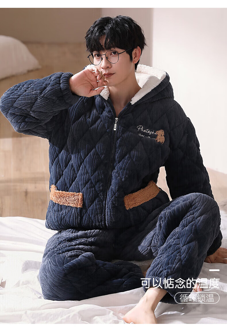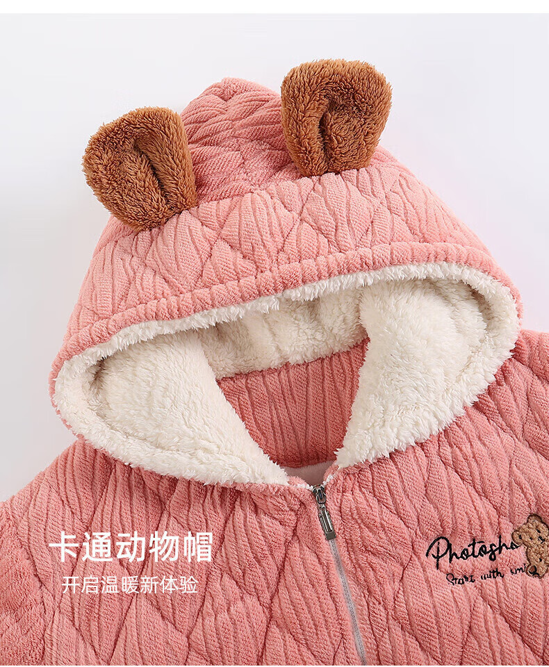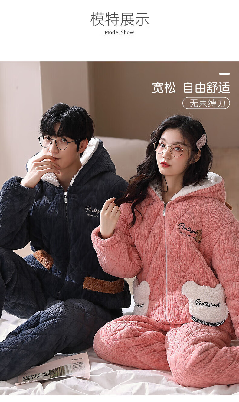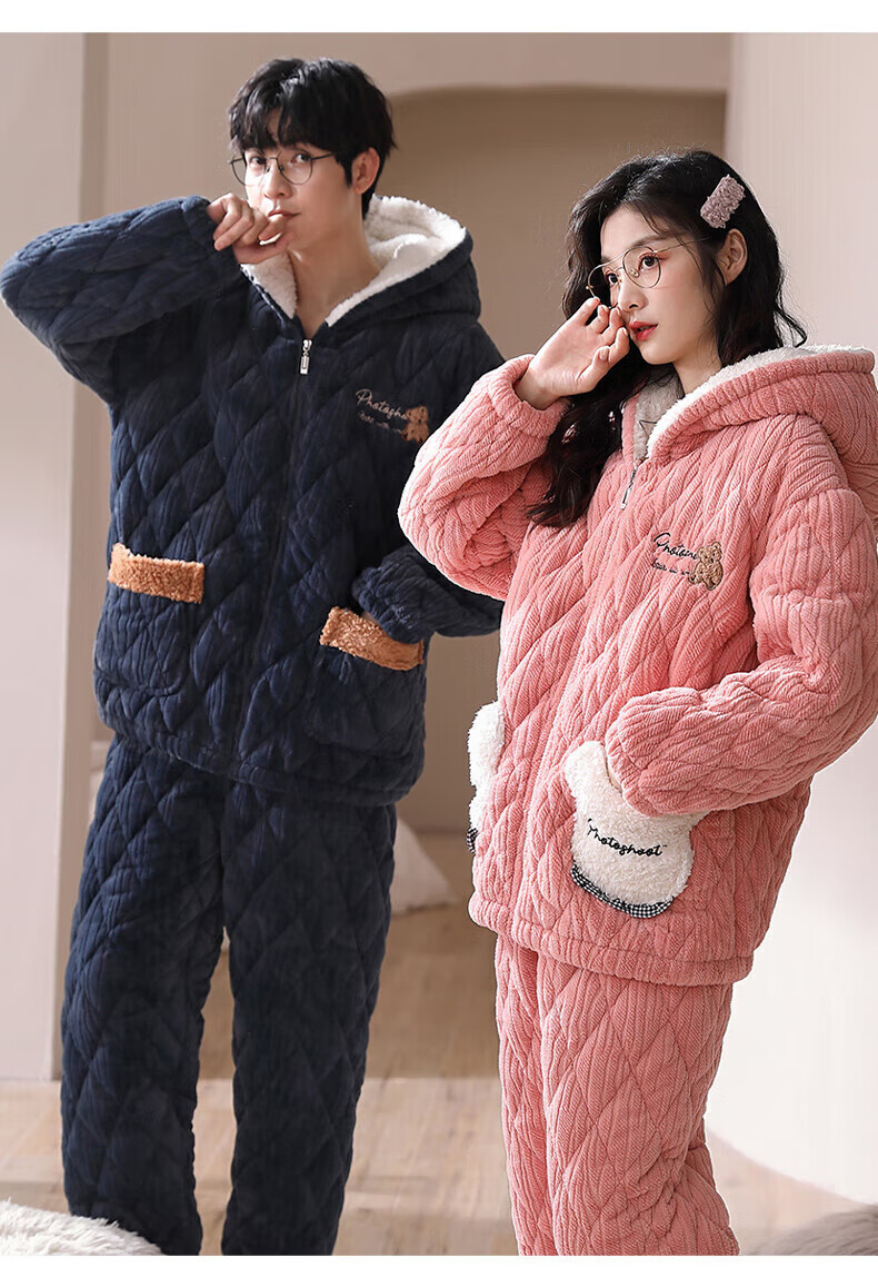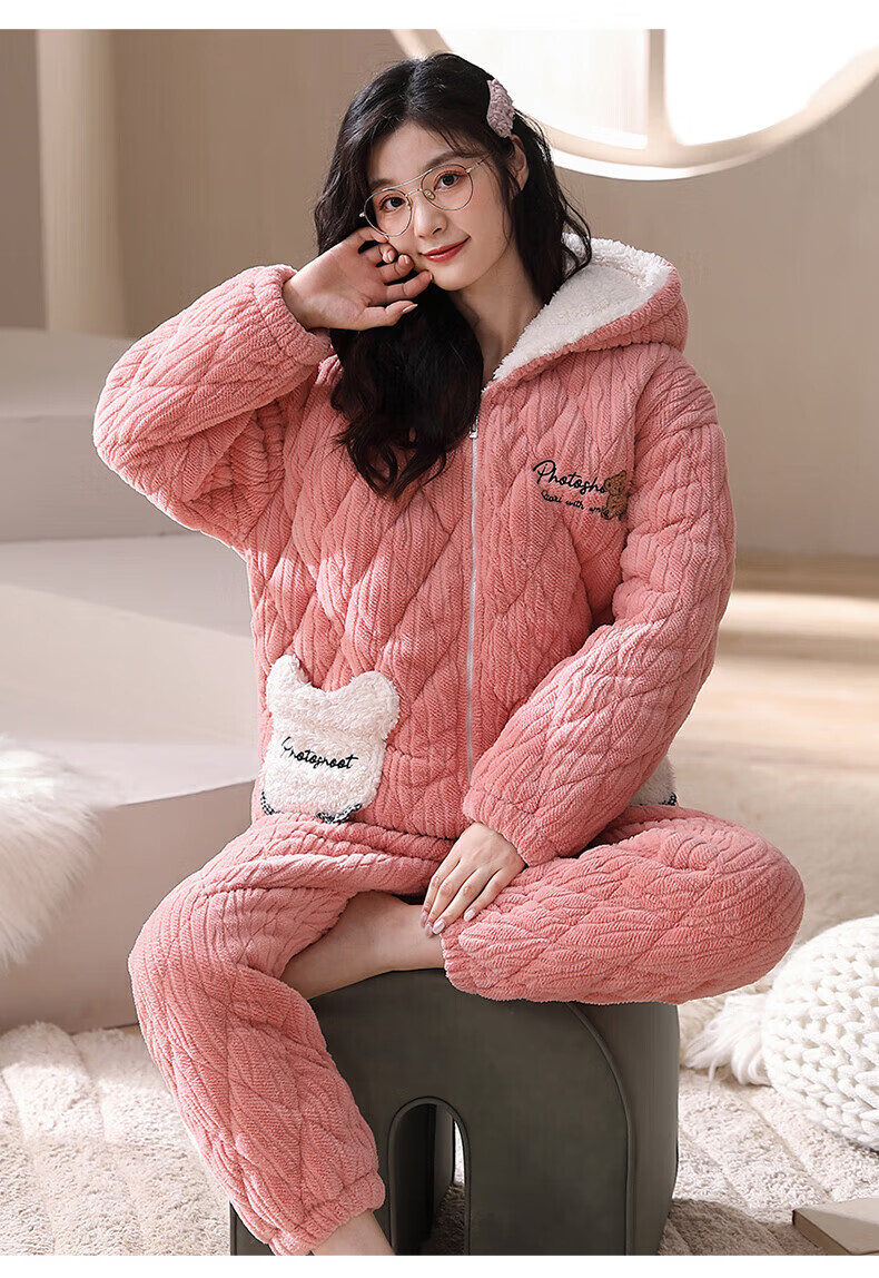 芬腾【清仓】情侣珊瑚绒夹棉睡衣女士冬季三层加厚男抗静电家居服套装 FJ25950375粉色【单女款】 XL 建议:女124-142,男146-165斤