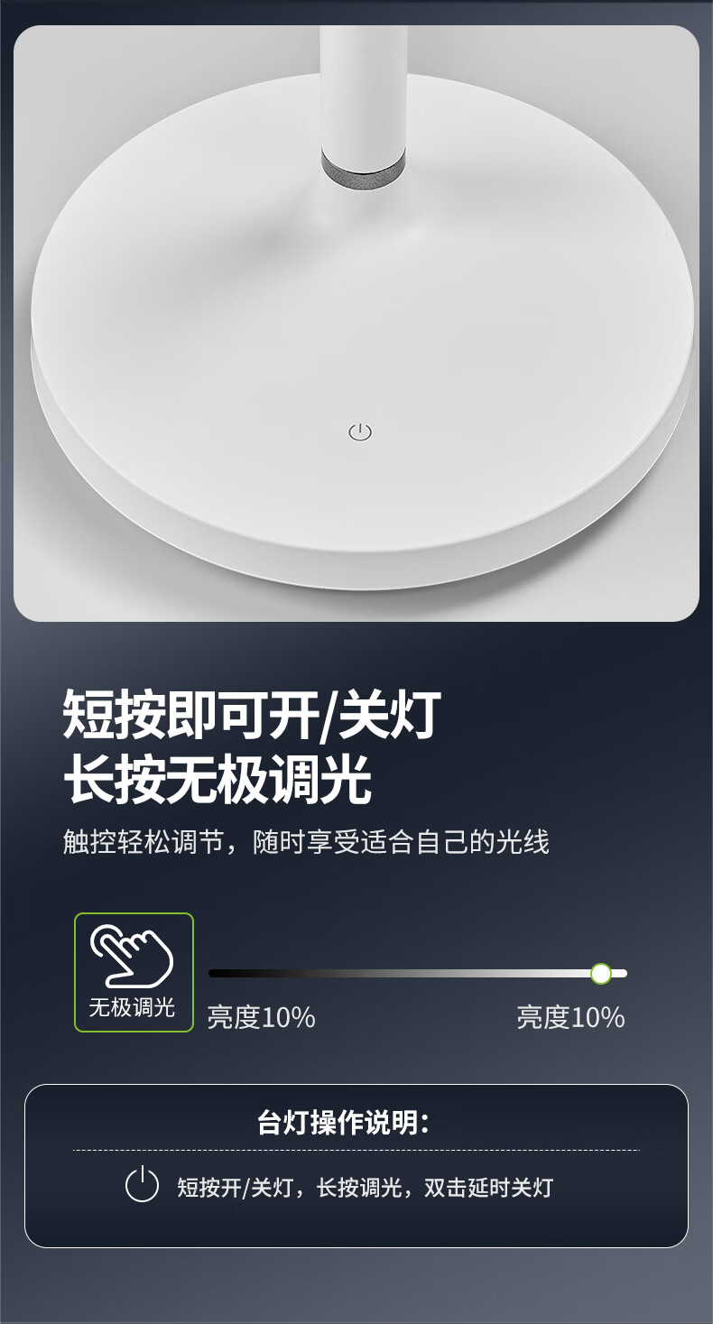 三雄极光全光谱台灯学习护眼近视防控儿童触控调光卧室宿舍书桌读写台灯 【国AA级全光谱护眼12W 】智研