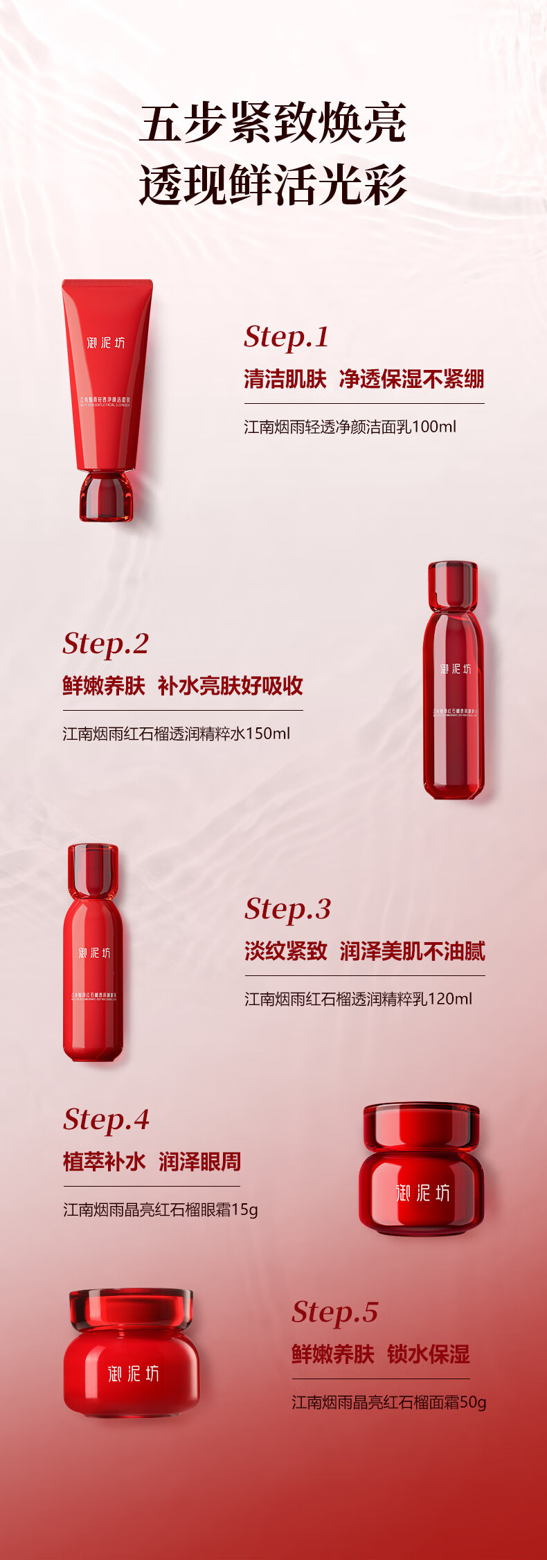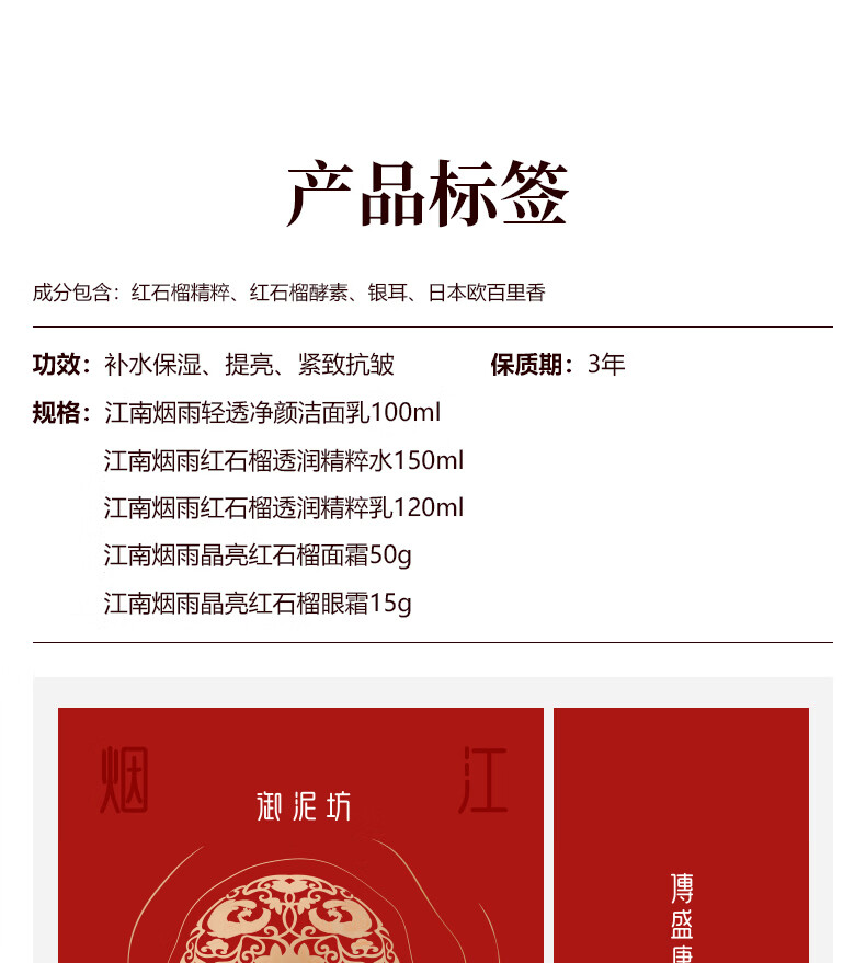 御泥坊江南烟雨红石榴护肤套装 补水保湿紧致抗皱护肤品 情人节礼物 三件套(洁面+水+乳)