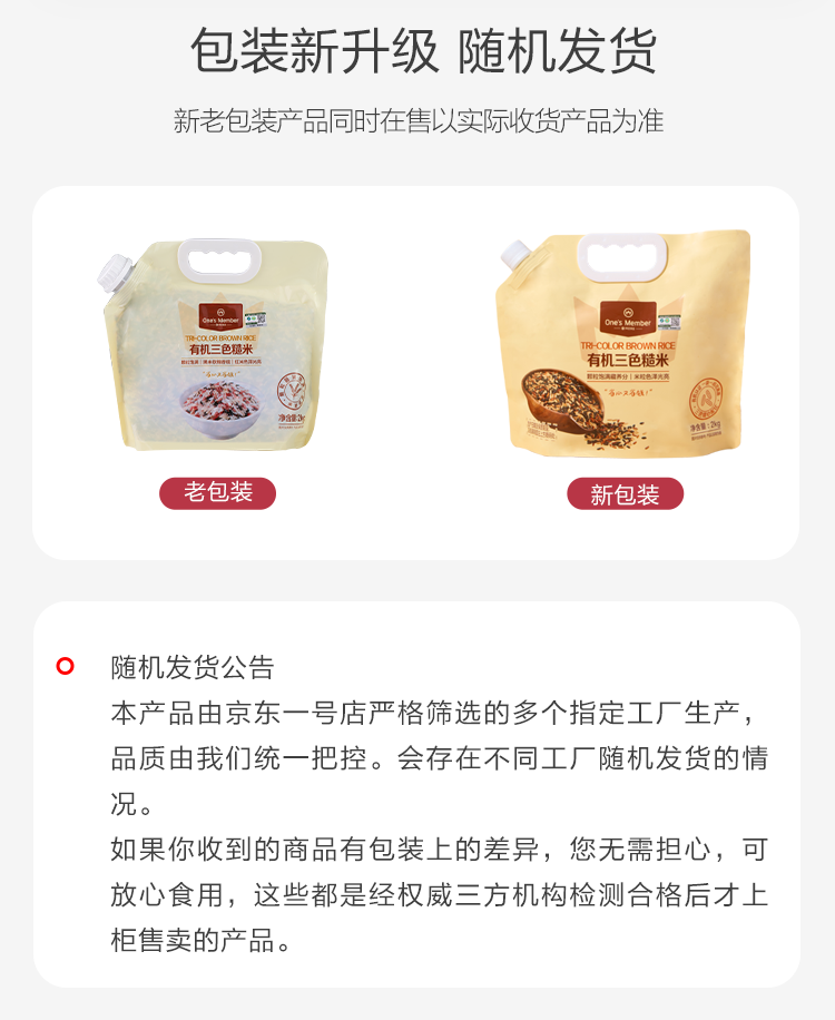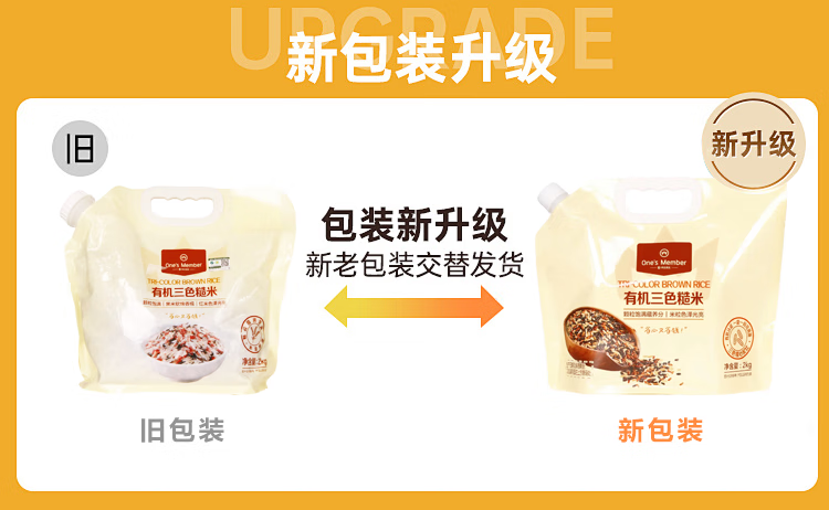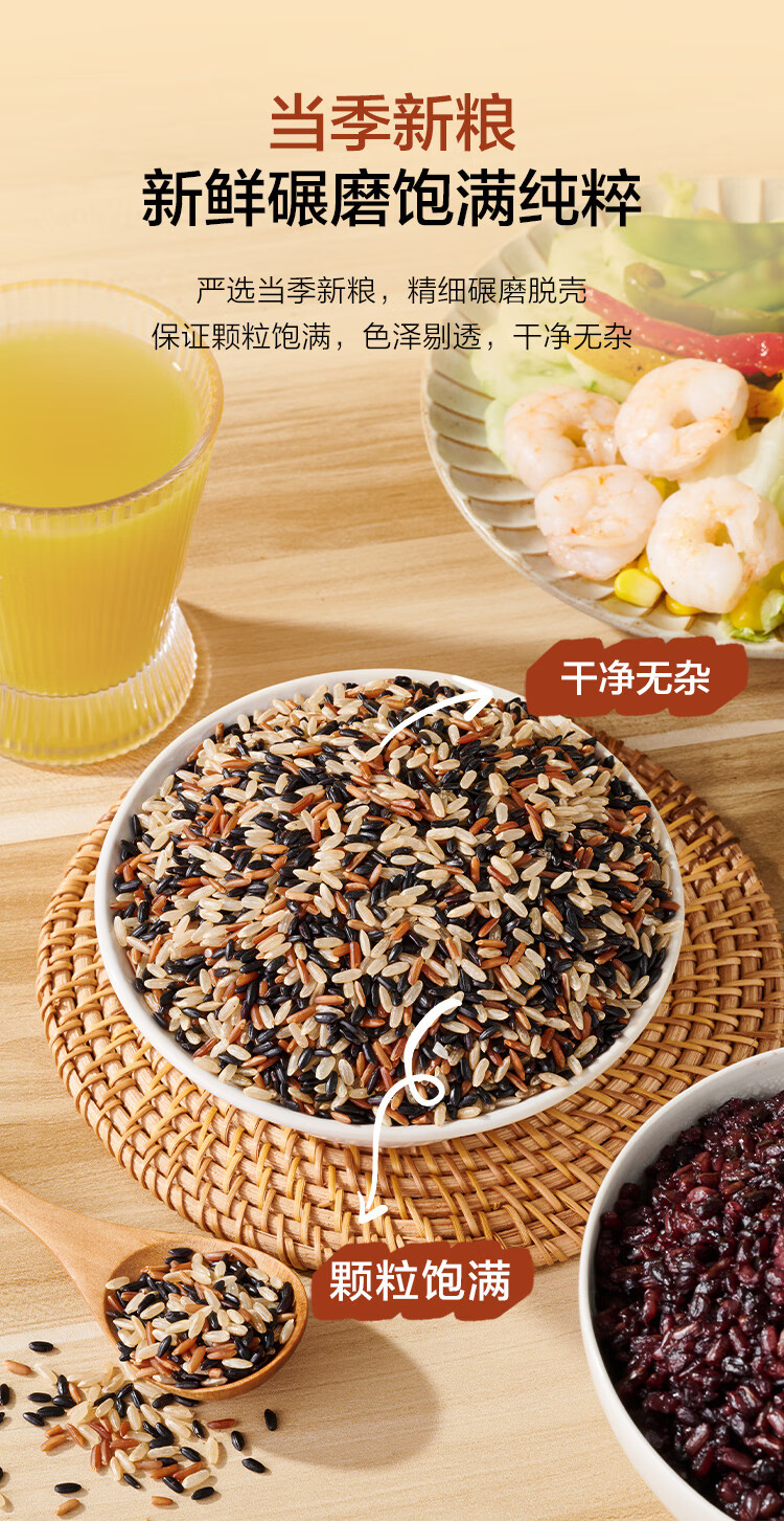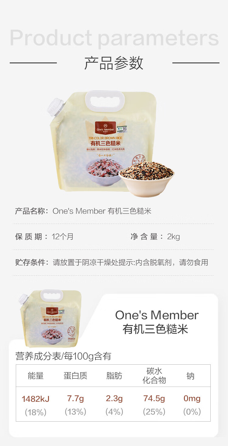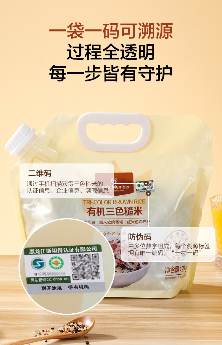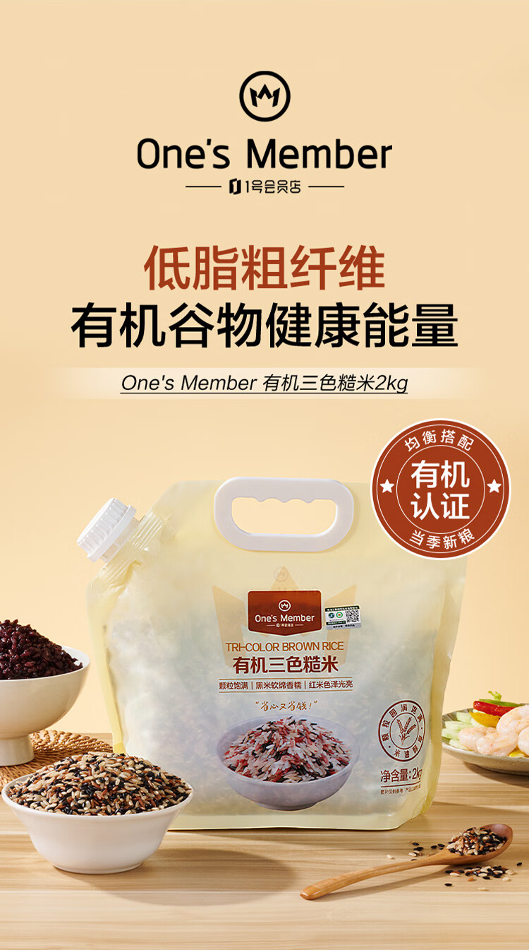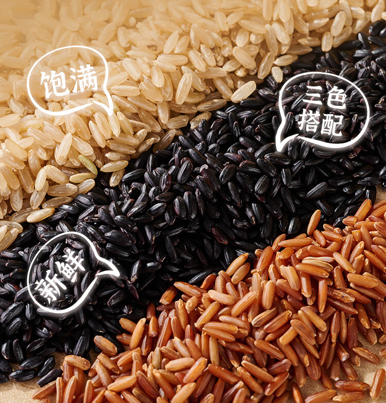 1号会员店 有机三色糙米2kg 杂粮黑米红米糙米大米伴侣 健身
