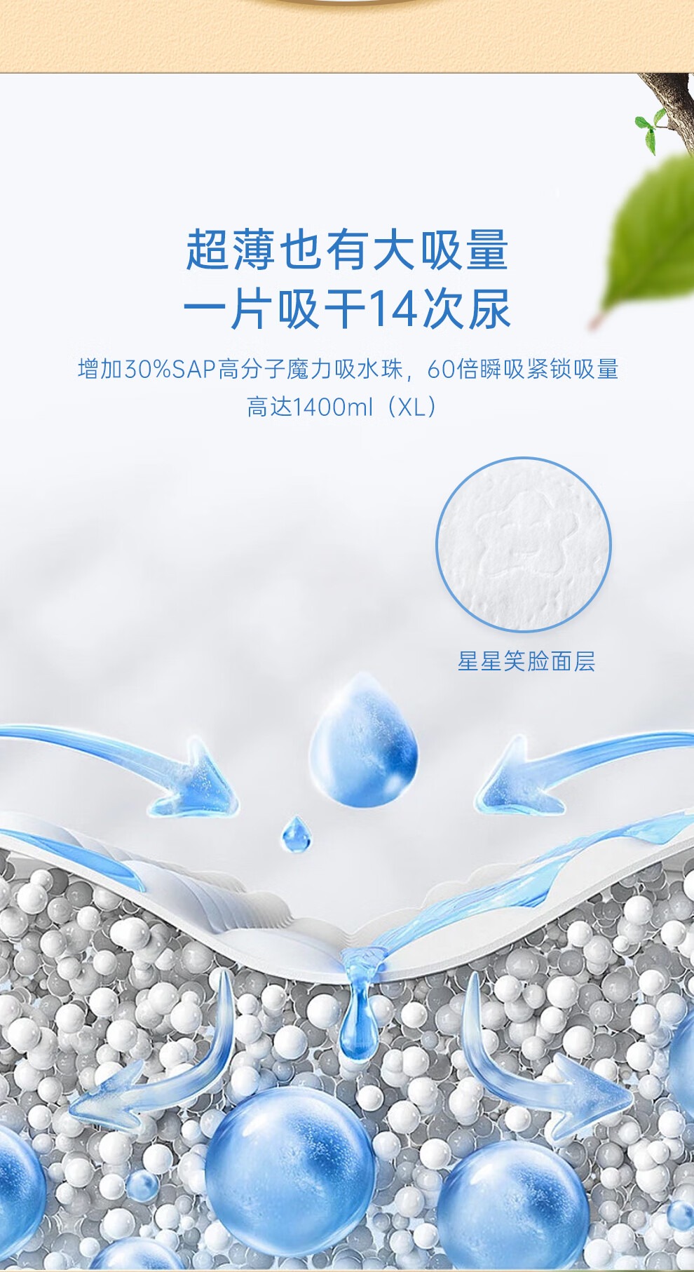 露安适(Lelch)日夜柔护婴儿纸尿裤S码5片(夜用)