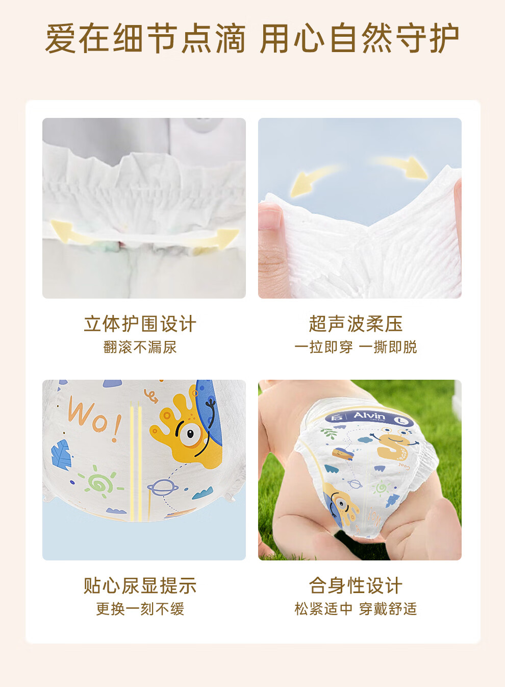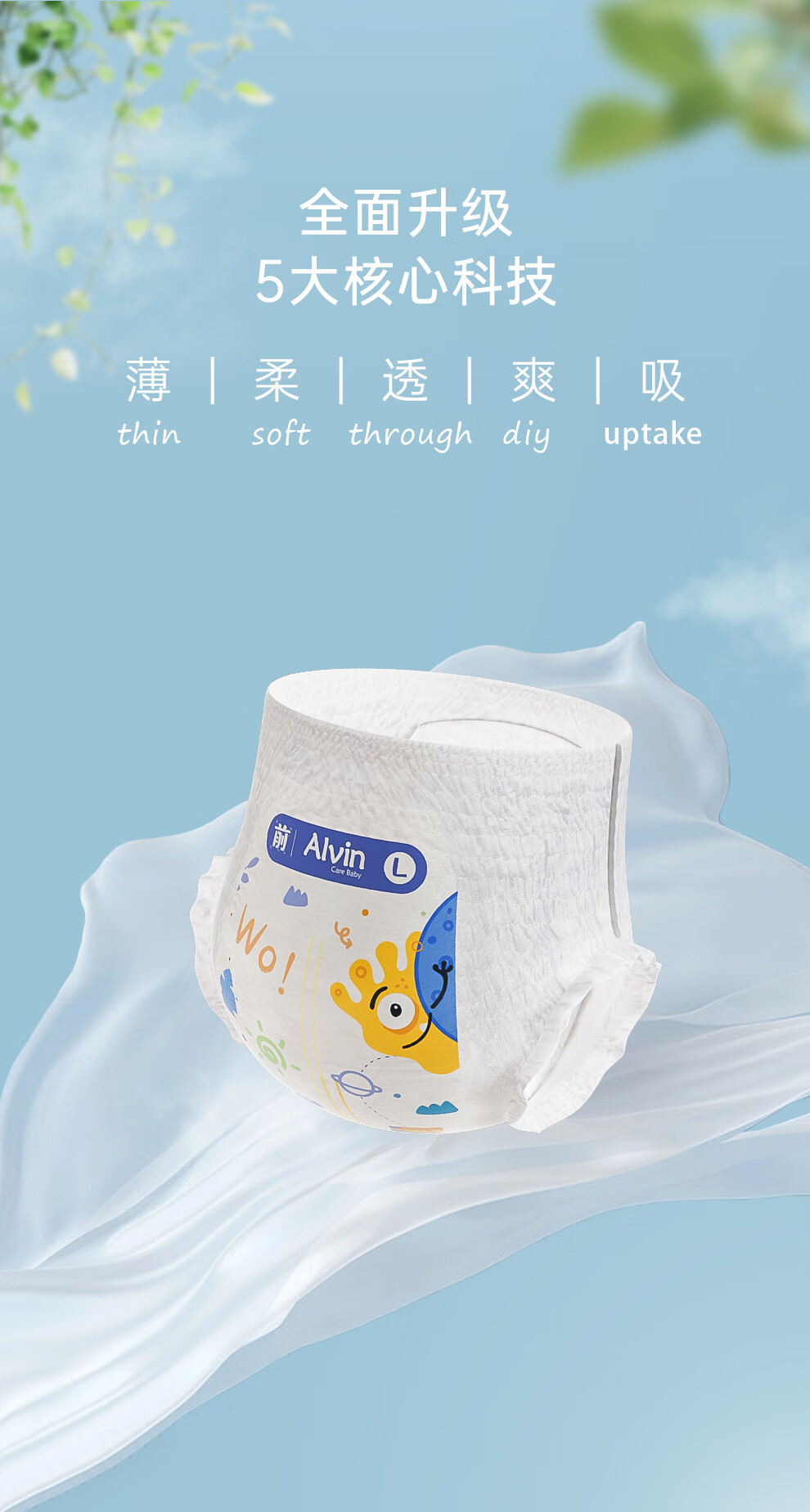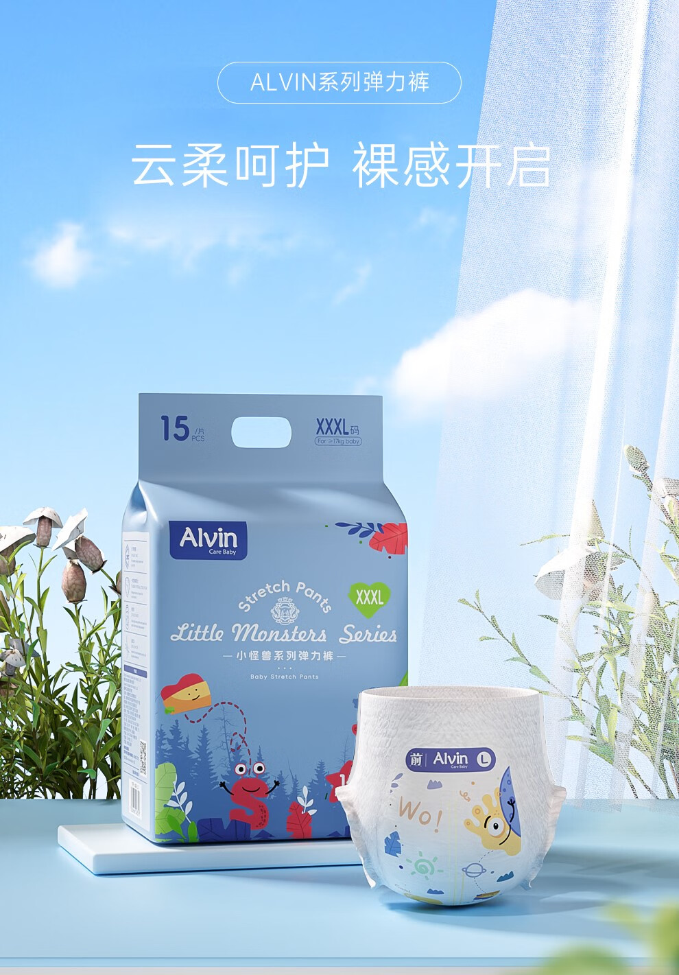 艾薇儿Alvin小怪兽透气裸感拉拉裤XXXL码30片超薄瞬吸尿不湿夜用安睡