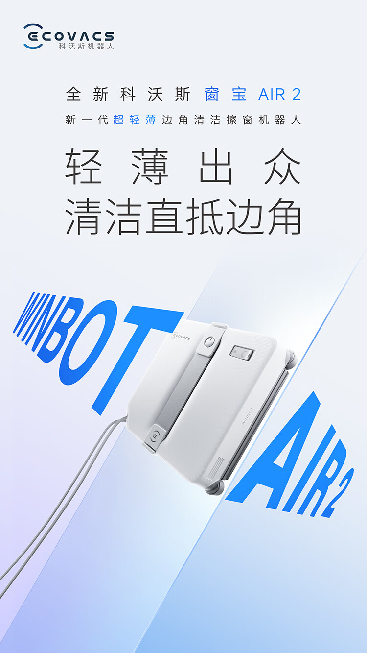 科沃斯(ECOVACS)超薄擦窗机器人AIR2窗宝双向喷水恒湿擦窗高层户外擦玻璃科沃斯擦玻璃机器人擦窗户神器适用多场景