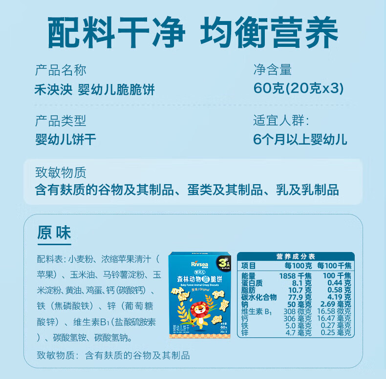 禾泱泱婴幼儿森林动物脆脆饼原味60g宝宝磨牙饼干零食锻炼抓握6月+