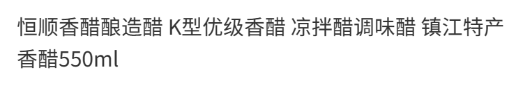 食芳溢镇江黑醋恒顺香醋酿造醋 K型优级香醋 凉拌醋调味醋 镇江特产香醋 恒顺K型香醋550ml*1瓶