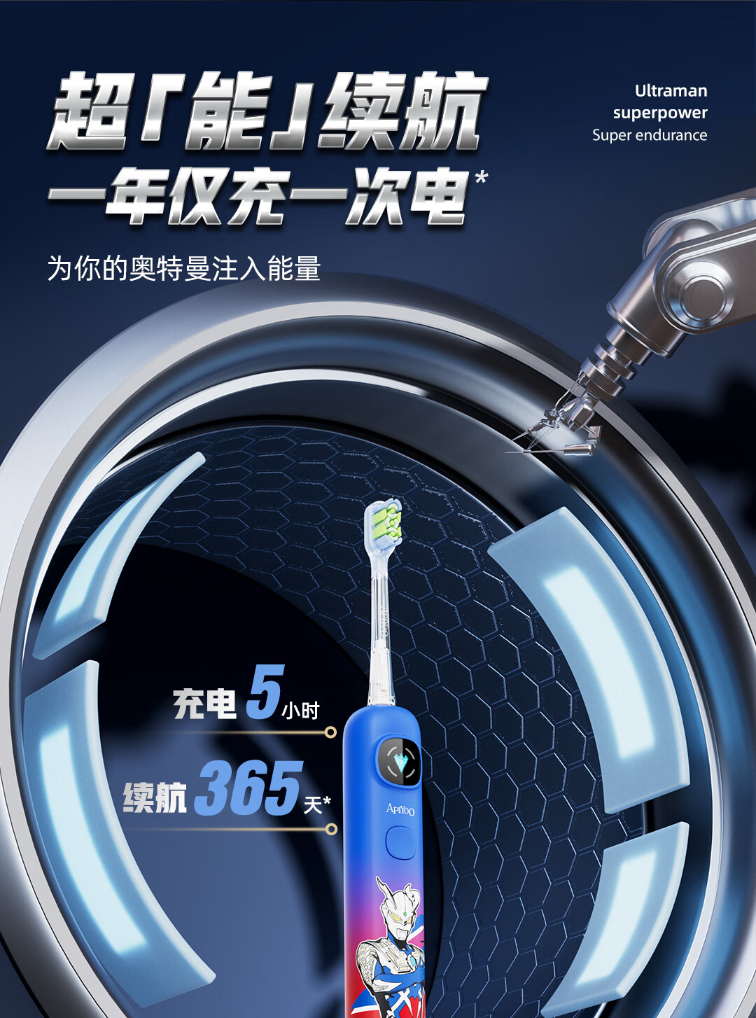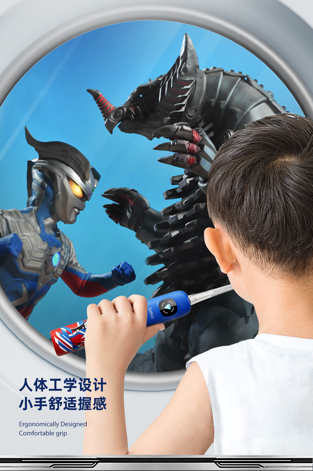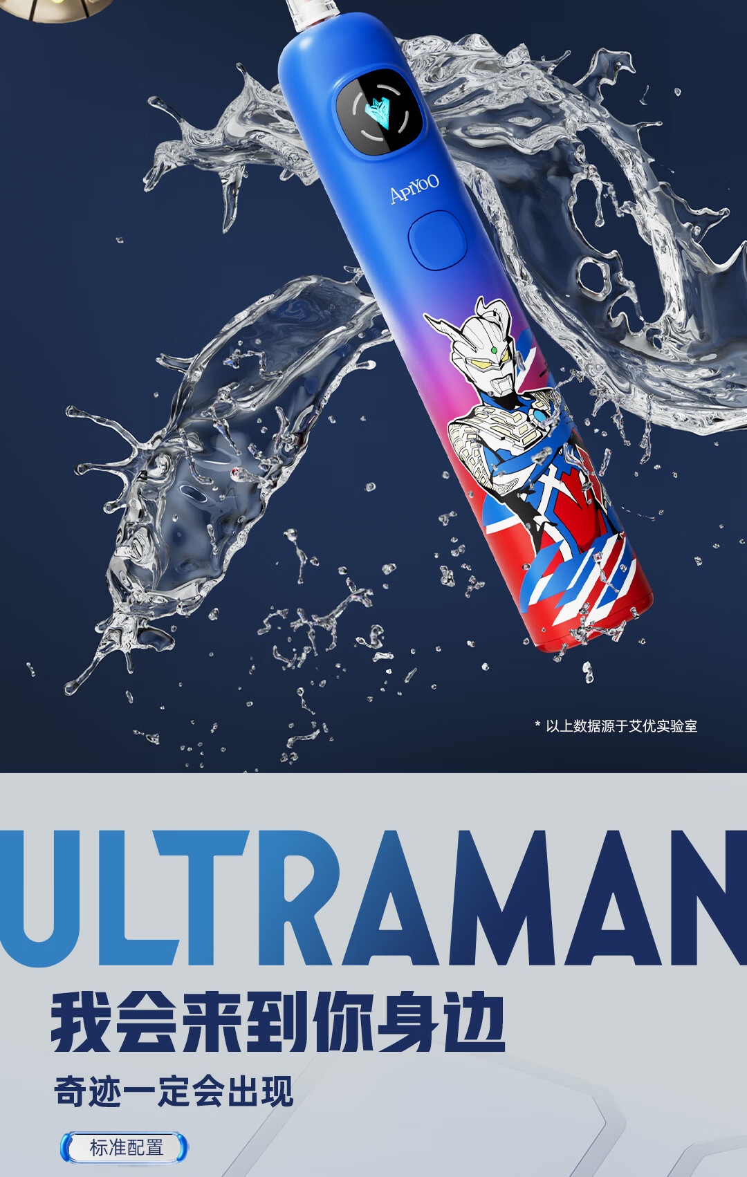 ApiYoo艾优A9pro-F奥特曼儿童电动牙刷蓝色消毒套装 语音漏刷提醒3-15岁男孩儿童节日礼物青少年12岁以上