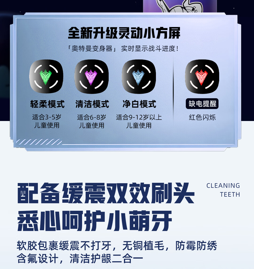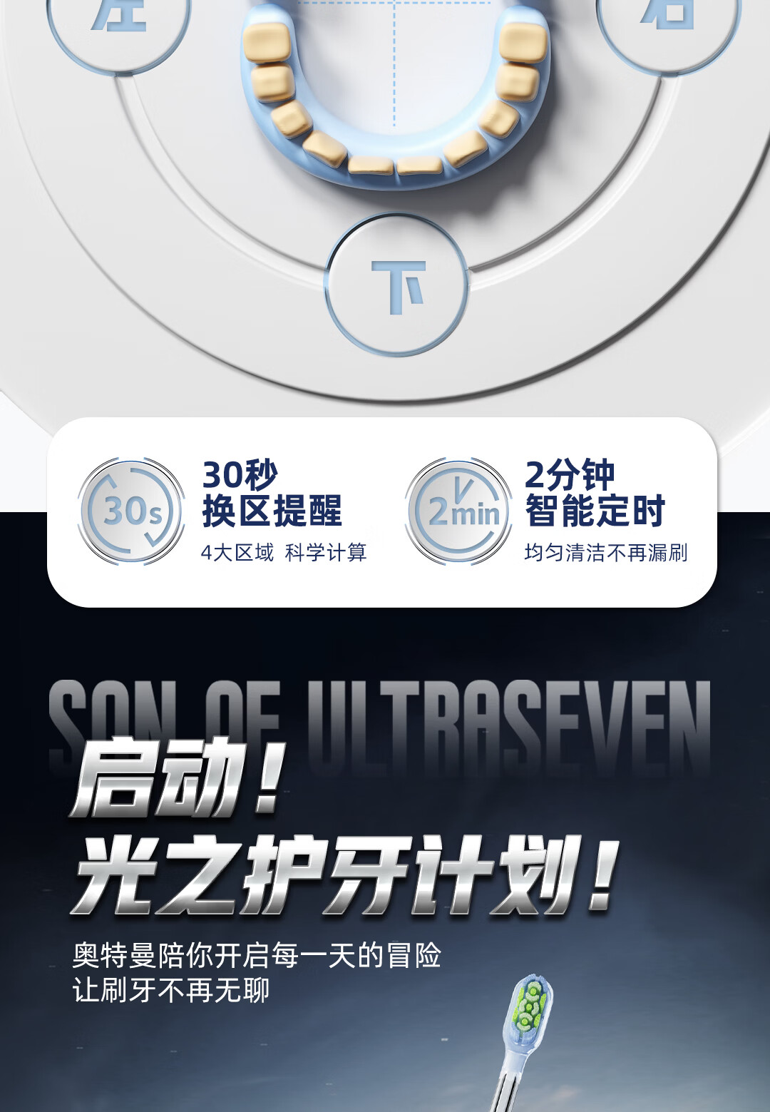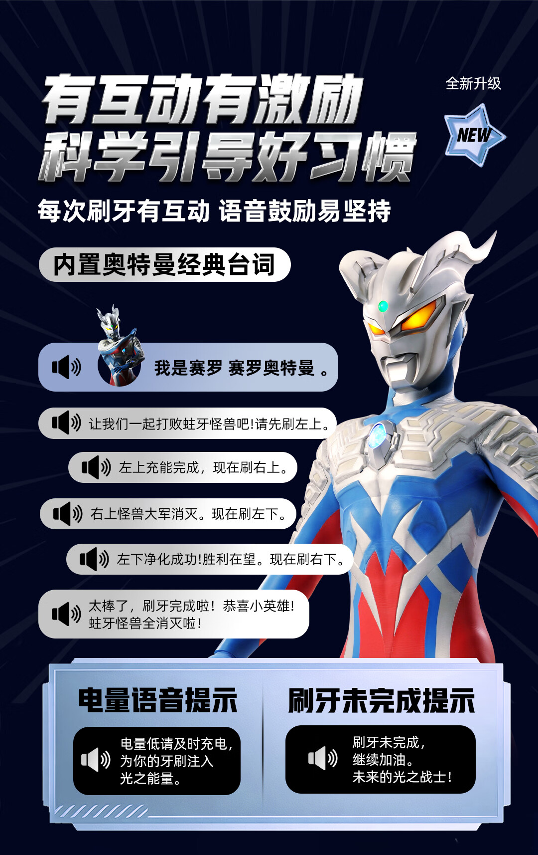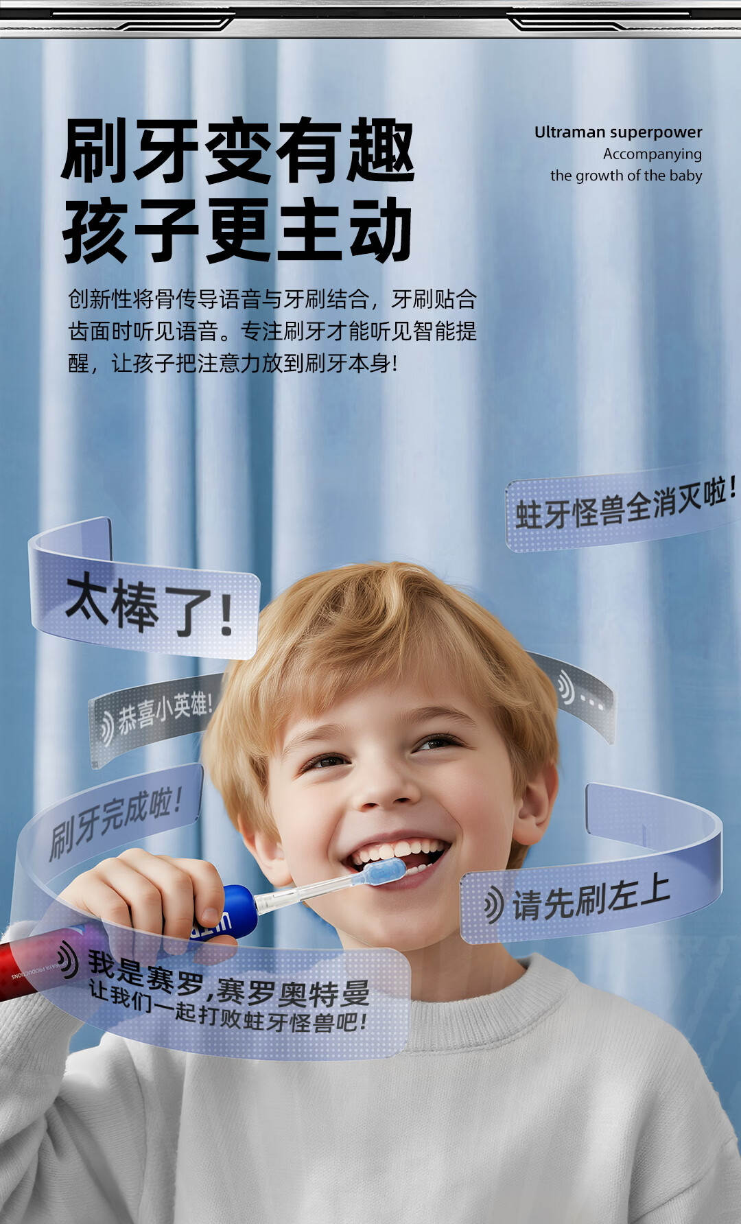 ApiYoo艾优A9pro-F奥特曼儿童电动牙刷蓝色消毒套装 语音漏刷提醒3-15岁男孩儿童节日礼物青少年12岁以上