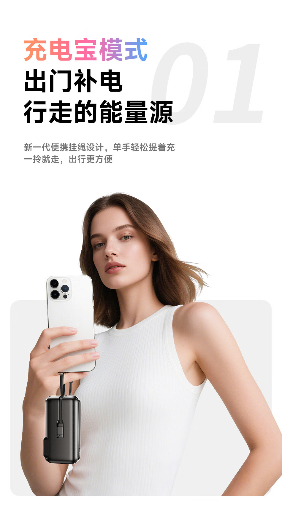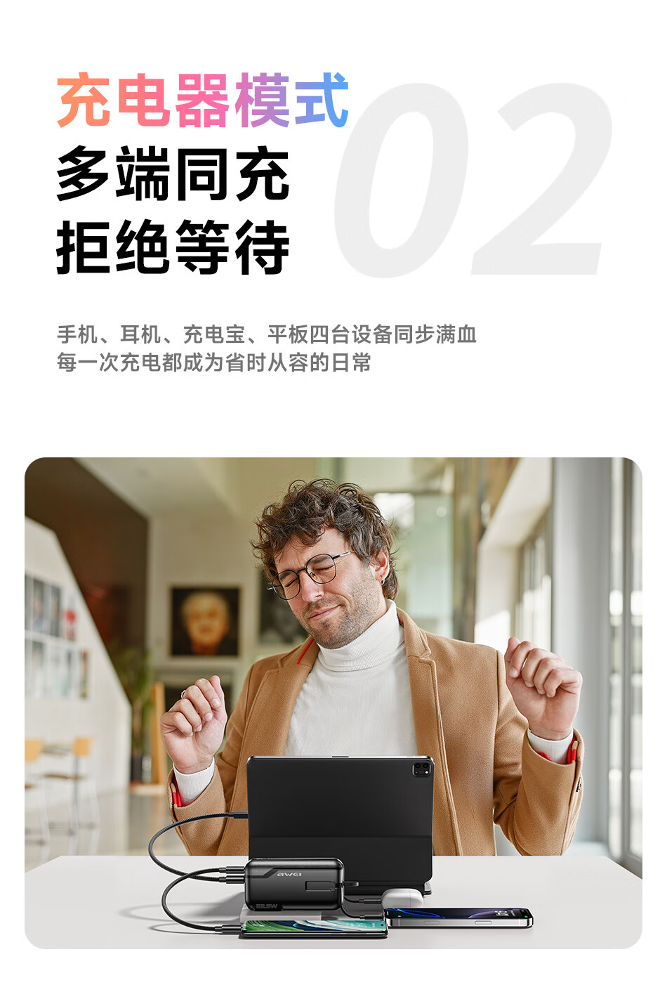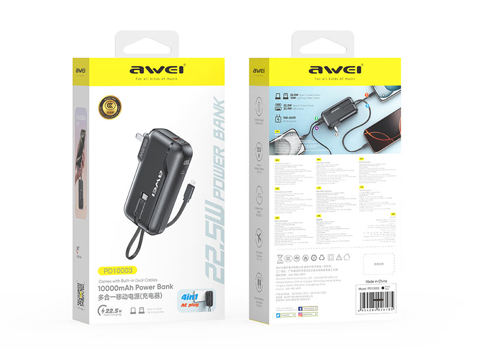 用维(AWEI)充电宝三合一10000毫安自带折叠插头充电器自带双线快充小巧移动电源适用苹果【3C认证可上飞机】 三合一【黑色-22.5W闪充】C+L双线丨折叠插头 10000mAh