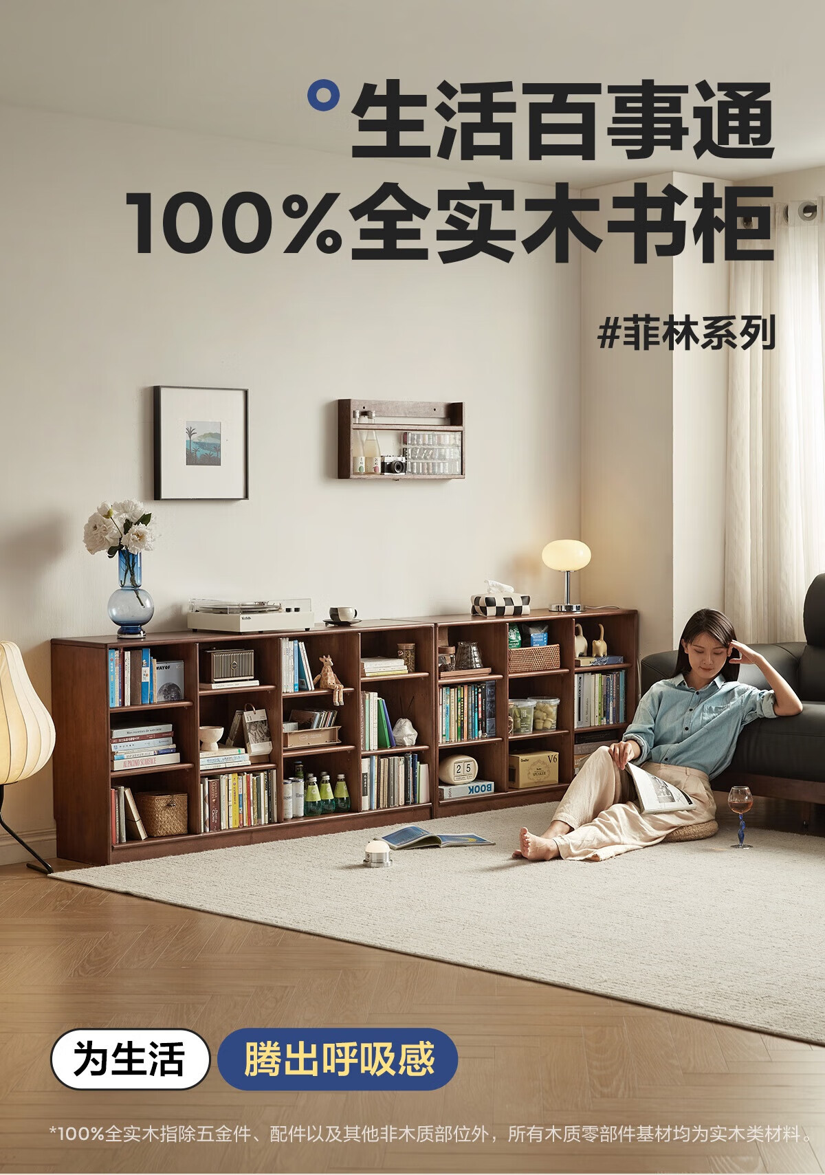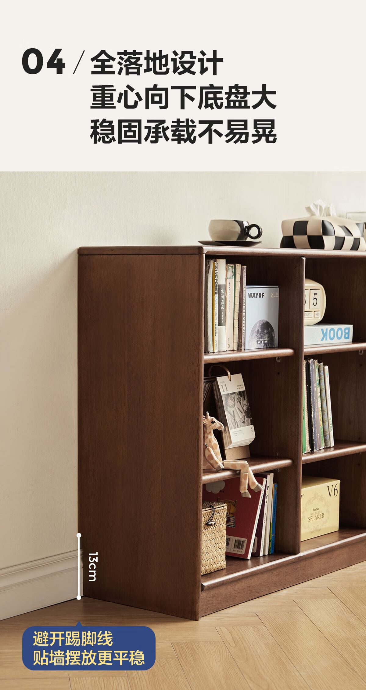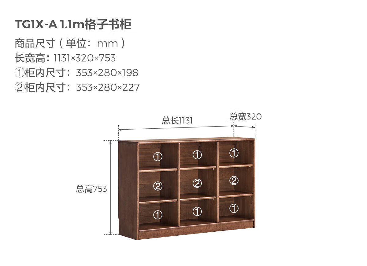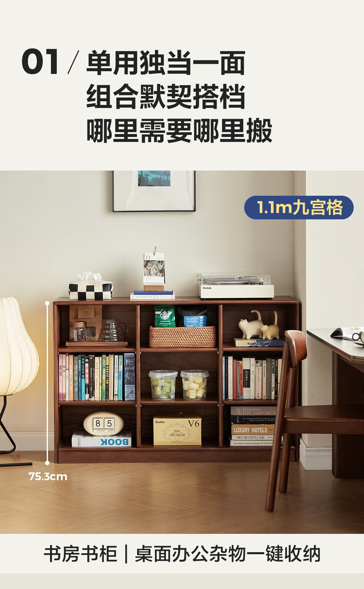 林氏家居中古风全实木书柜客厅展示柜家用胡桃色立柜木业菲林系列TG1X 【1.1m|全实木】格子书柜