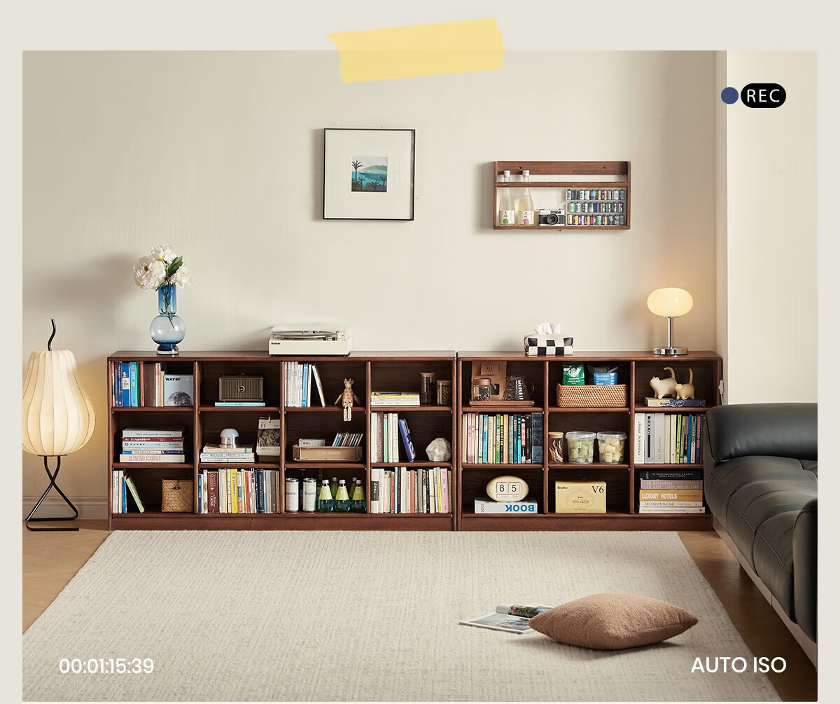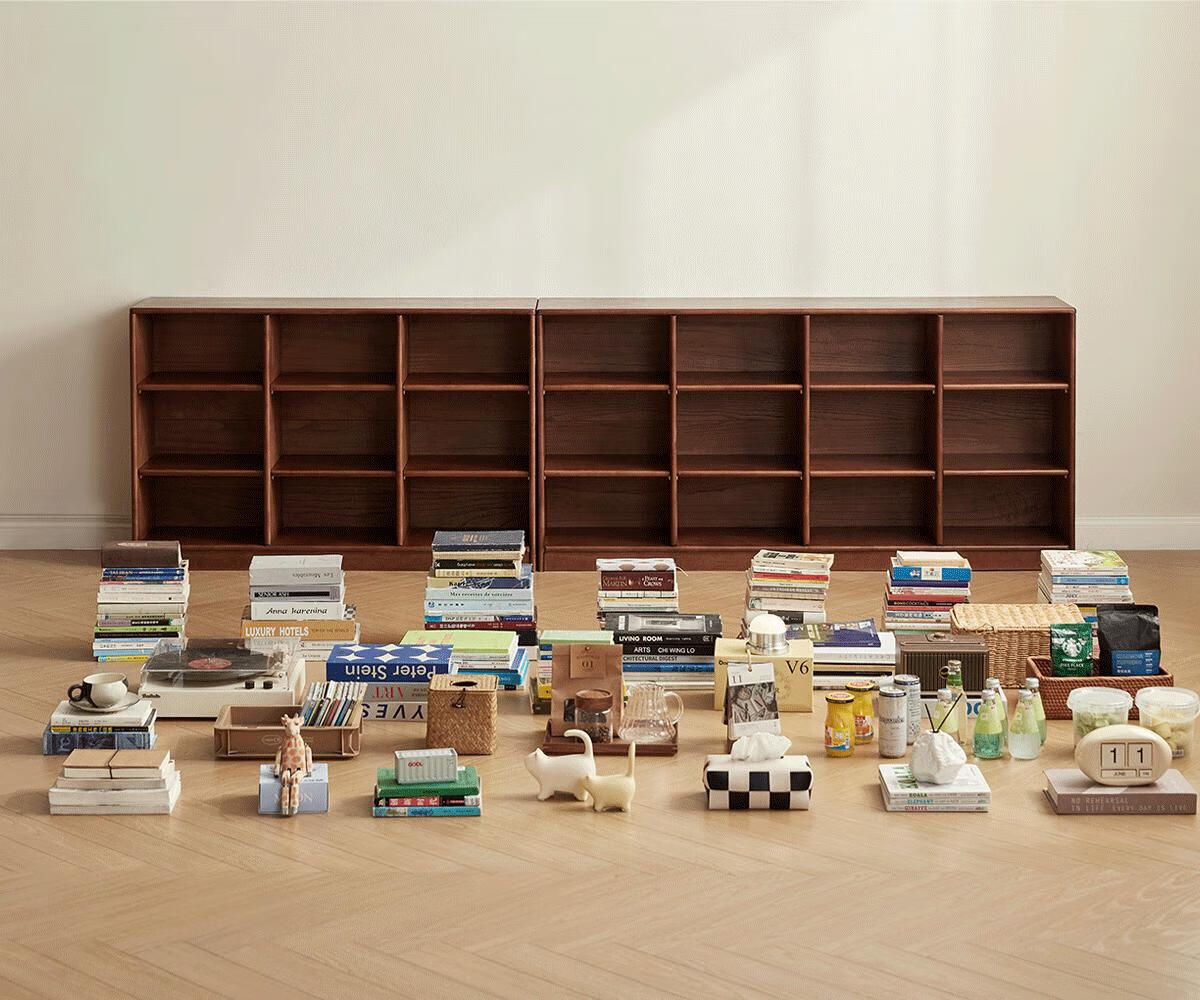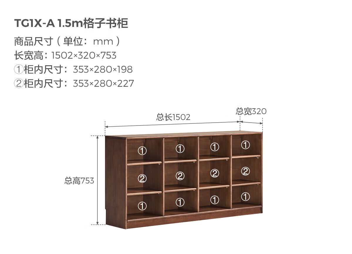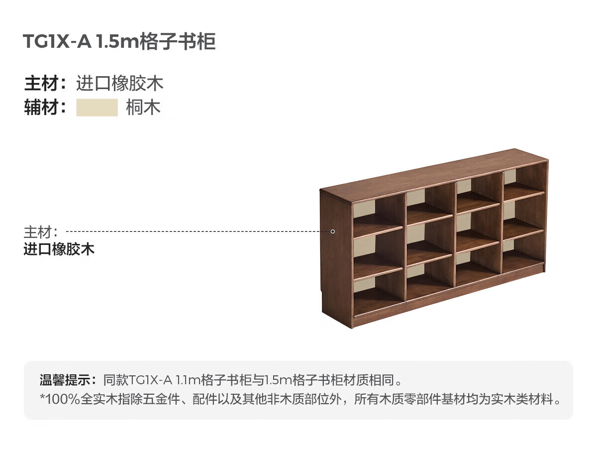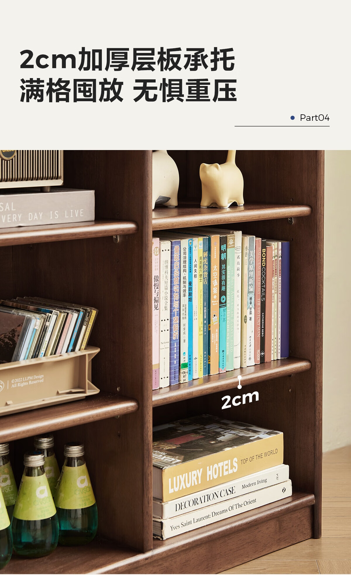 林氏家居中古风全实木书柜客厅展示柜家用胡桃色立柜木业菲林系列TG1X 【1.1m|全实木】格子书柜