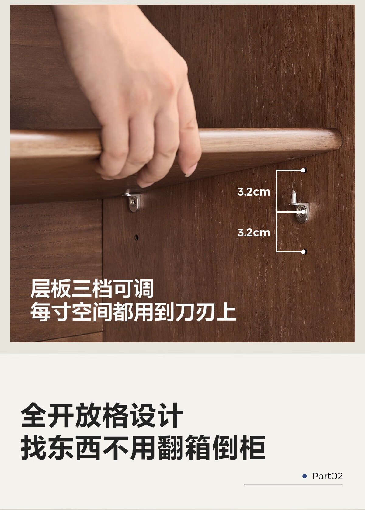 林氏家居全实木衣柜卧室家用推拉门原木风两门衣柜衣橱收纳柜小满系列PK4D 【全实木|1.2m胡桃色】衣柜带抽屉款