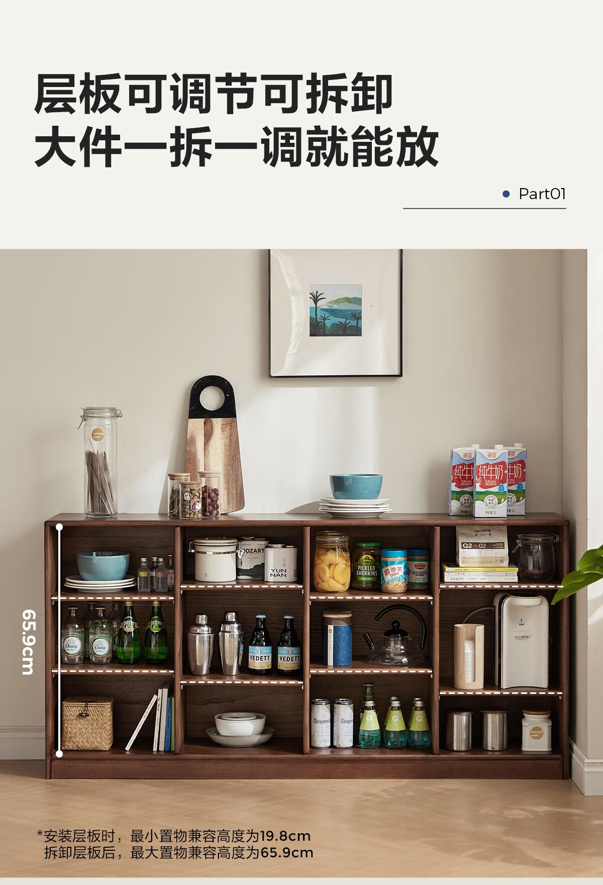 林氏家居北欧风白蜡木实木餐边柜靠墙一体储物柜置物客厅木业续木系列YE1T 【小麦色】1.8m整柜 1.8m