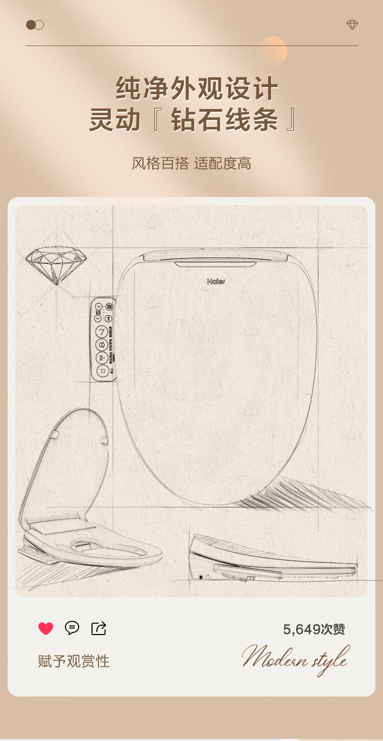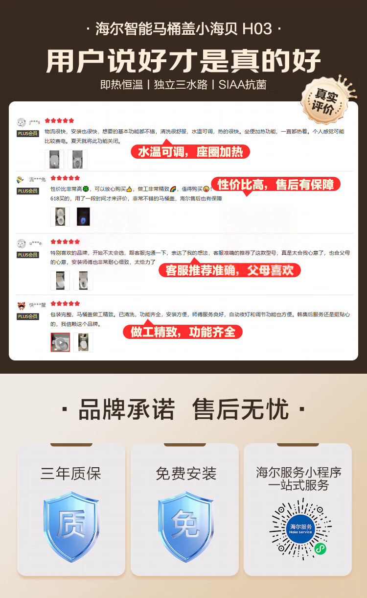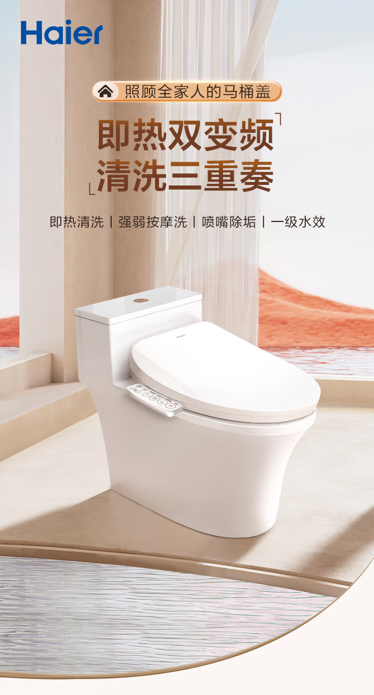海尔(Haier)智能马桶盖 活水即热 座圈加热 多重清洗 抗菌座圈 光感夜灯 【1级水效活水即热】小海贝 【免费上门安装】