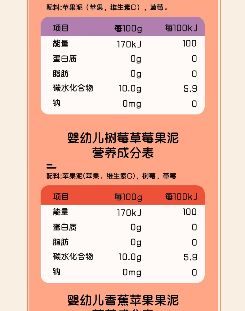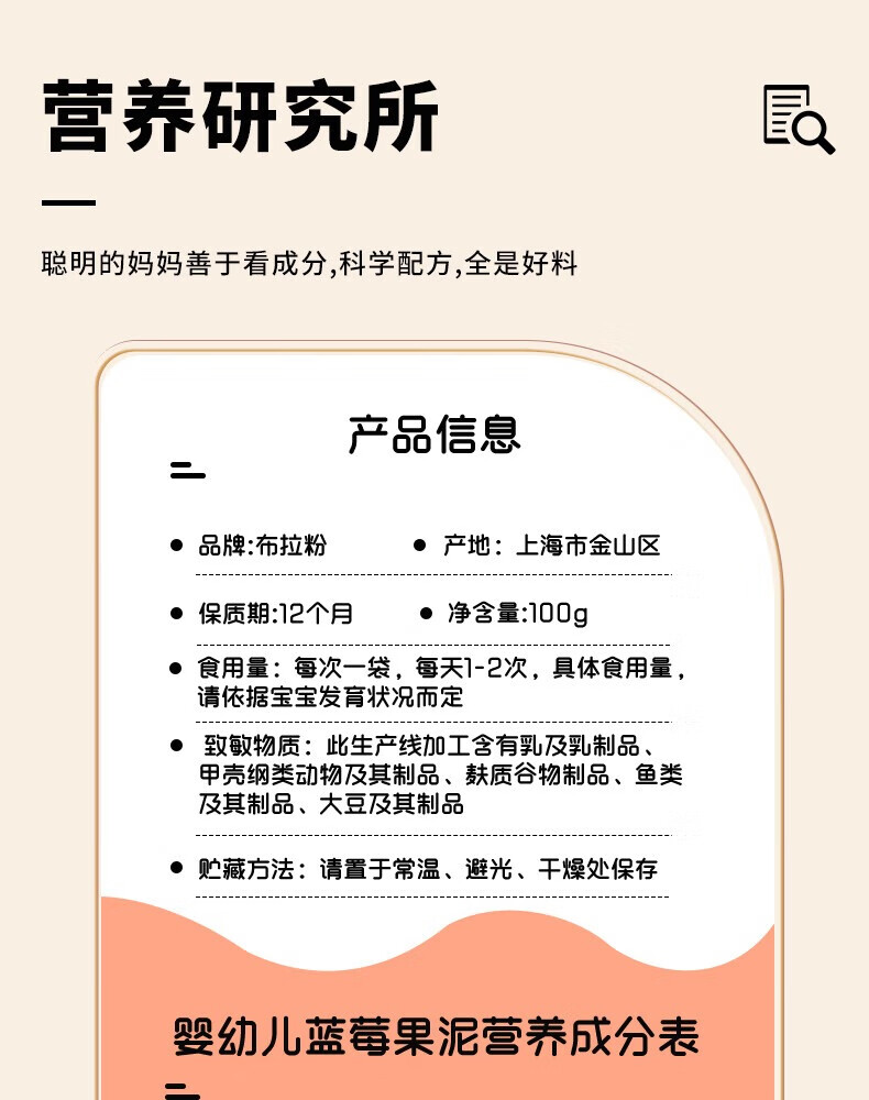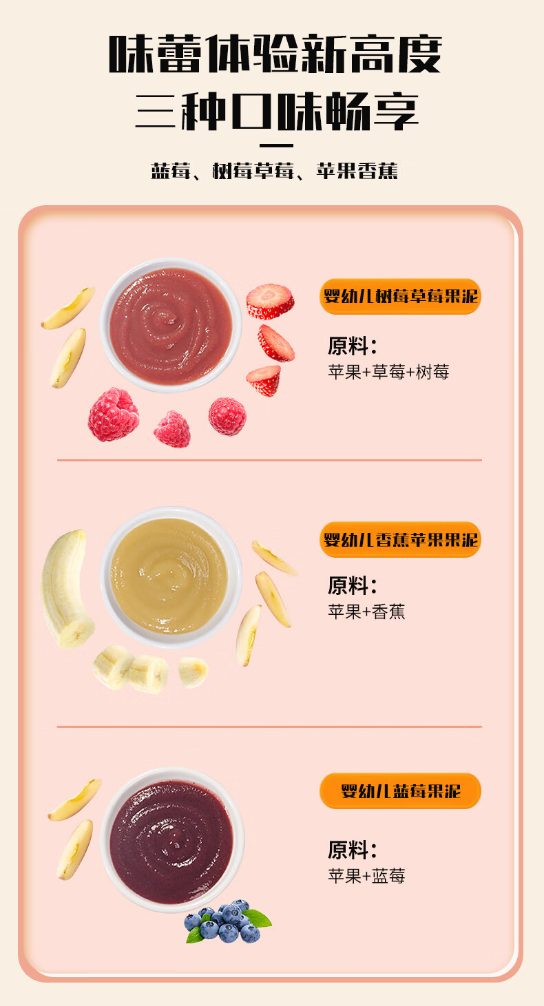 布拉粉小兔团团婴幼儿果泥树莓苹果香蕉多口味宝宝辅食儿童零食 婴幼儿蓝莓果泥 100g*5袋