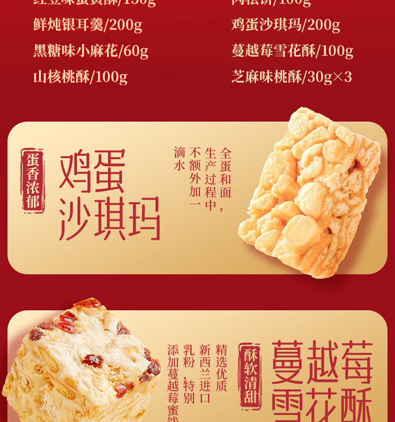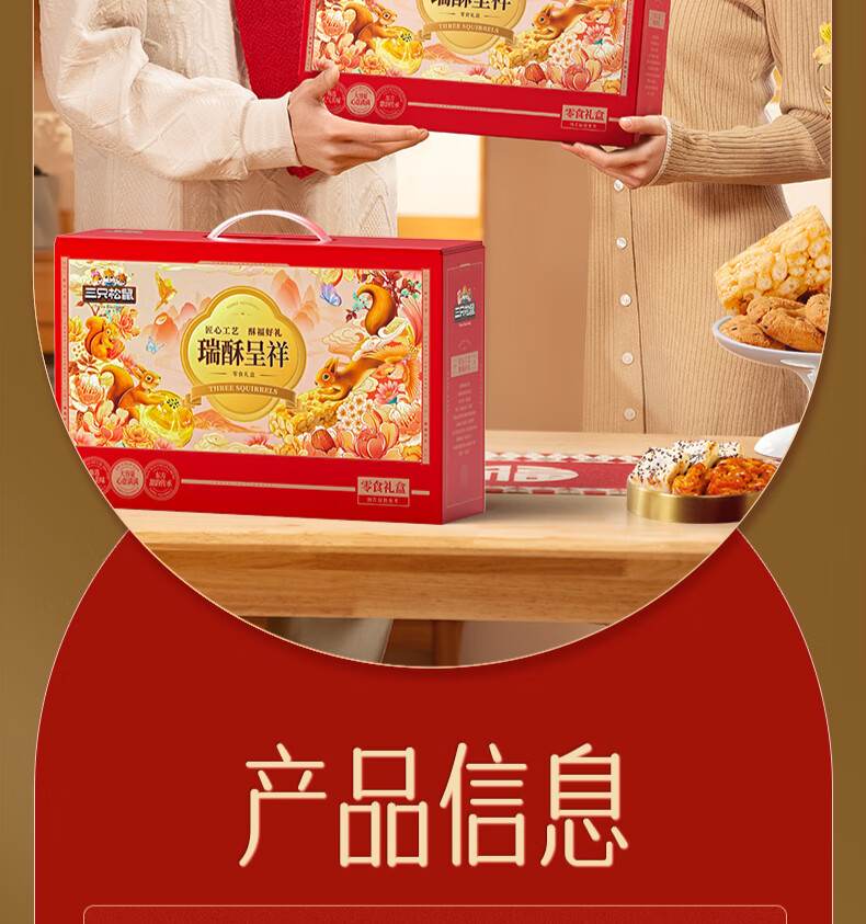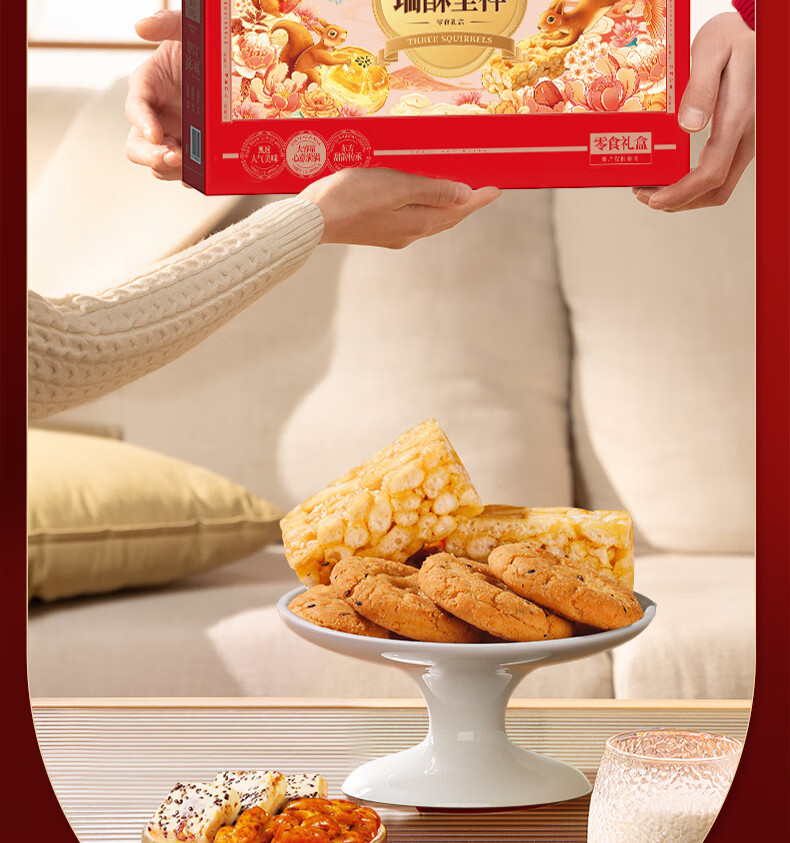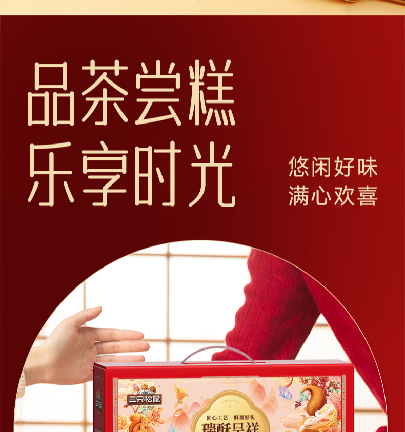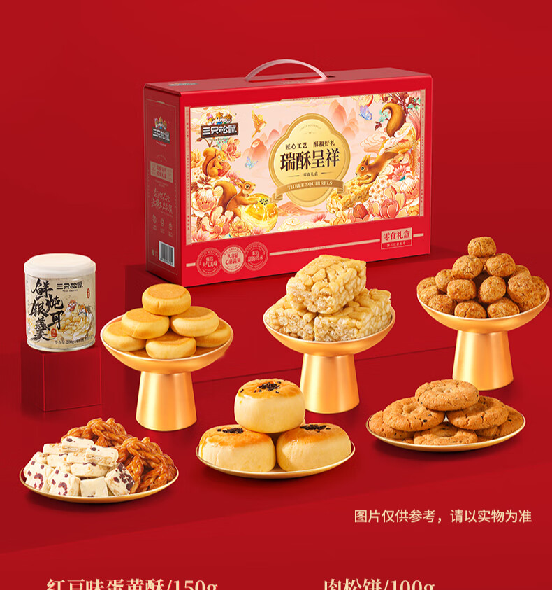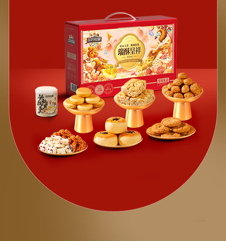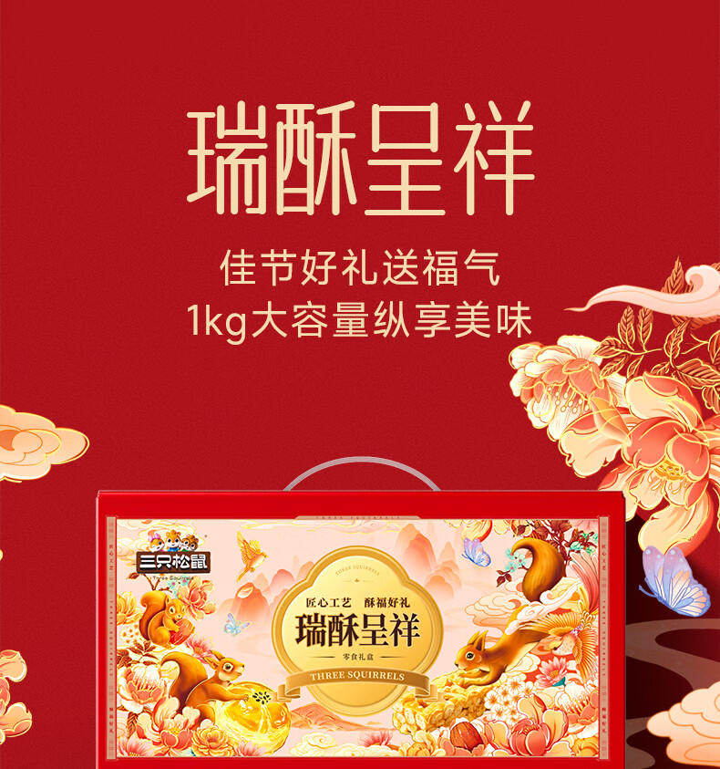 三只松鼠混合中式糕点礼盒1kg 雪花酥蛋黄酥肉松饼沙琪玛礼盒年货团购送礼