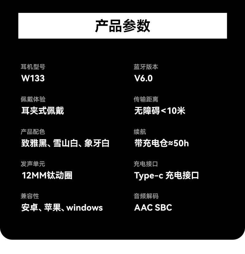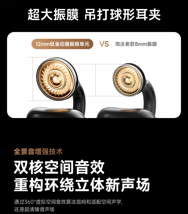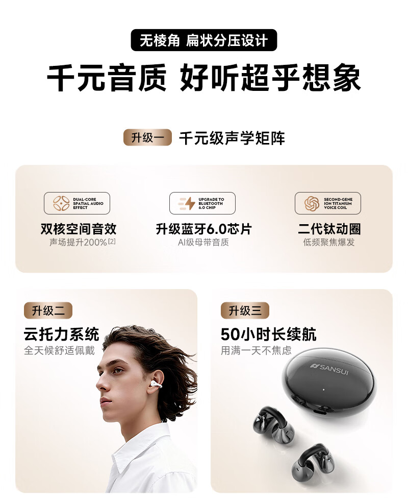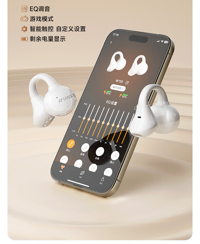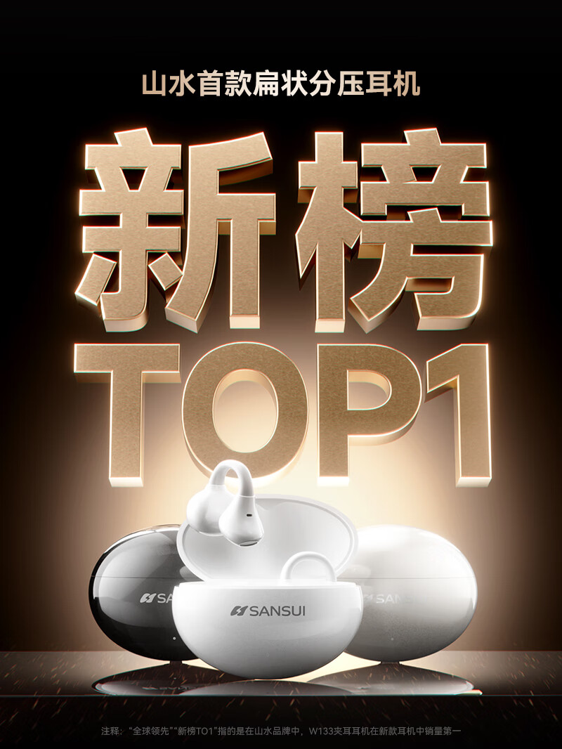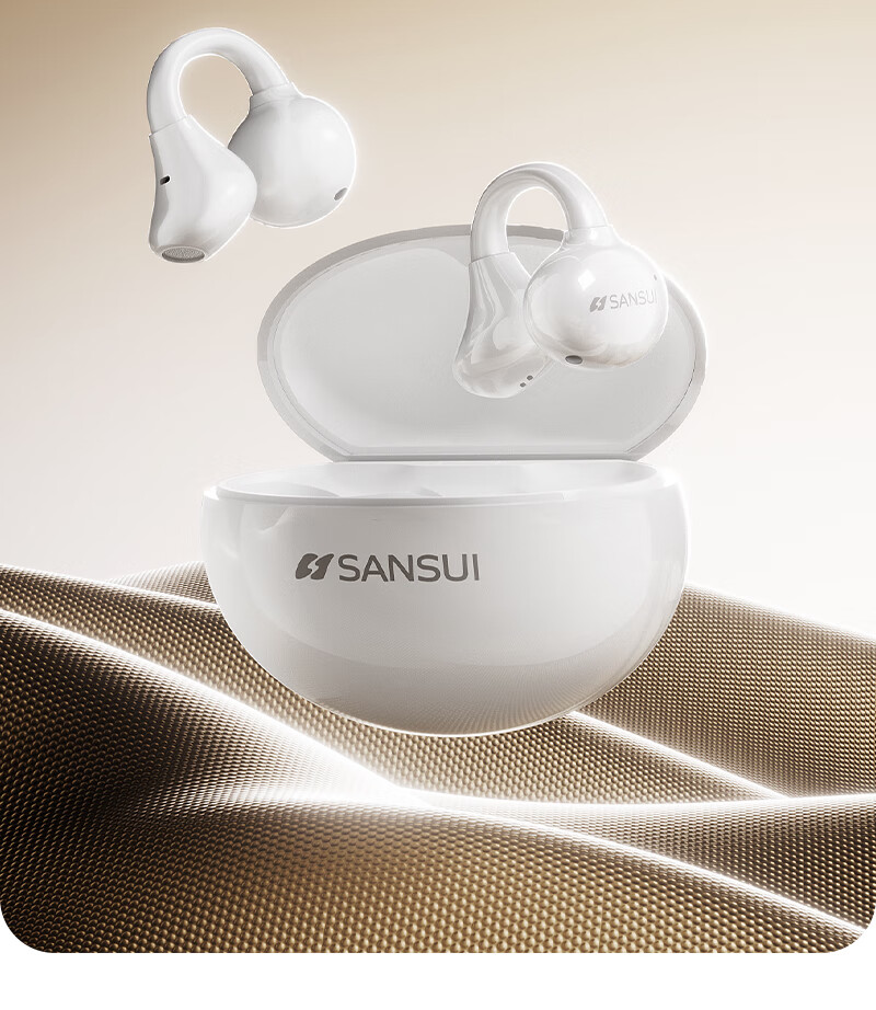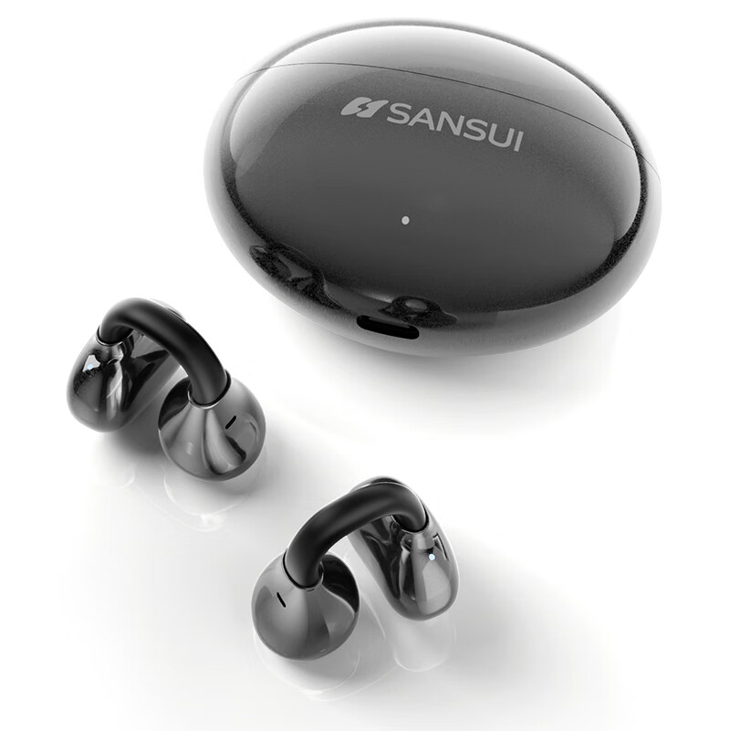 山水(SANSUI)【国家补贴丨2026新款】W133蓝牙耳机耳夹式骨传导概念开放式无线不入耳运动跑步游戏降噪 雅黑