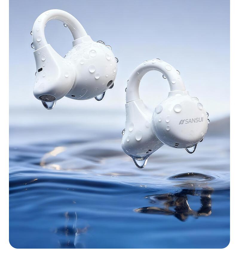 山水(SANSUI)【久戴也舒适】W90蓝牙耳机不入耳开放式骨传导概念无线耳夹式夹耳运动适用于华为小米苹果白