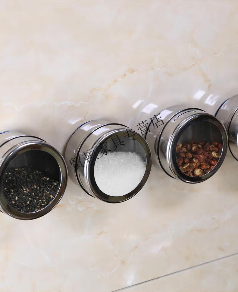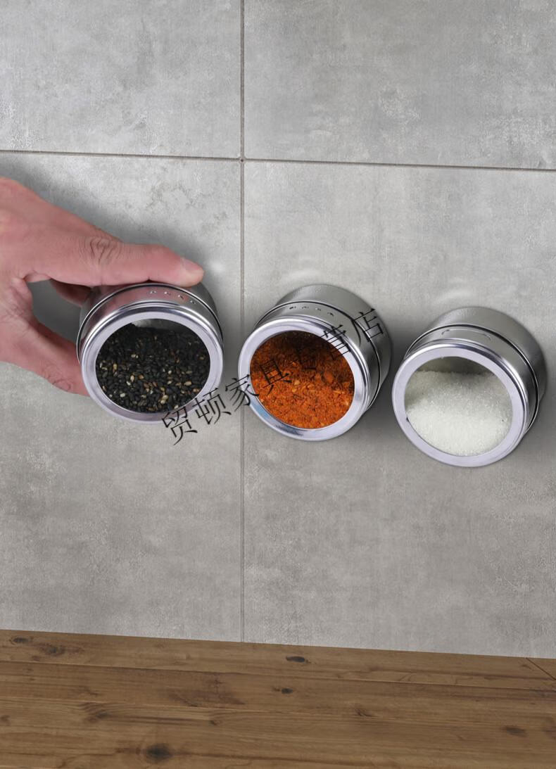 磁吸调料盒 磁吸挂墙冰箱贴德国创意调料盒壁挂磁铁调味盒罐子304不锈钢网红2022新款 【304不锈钢】8罐+贴片+标签