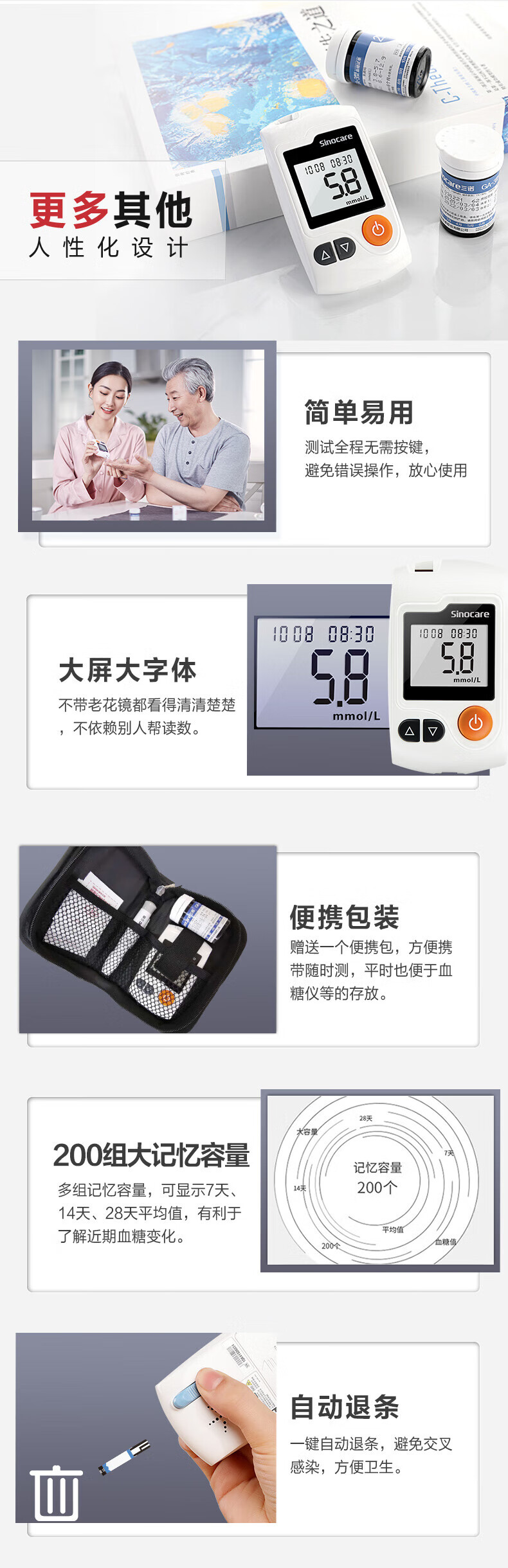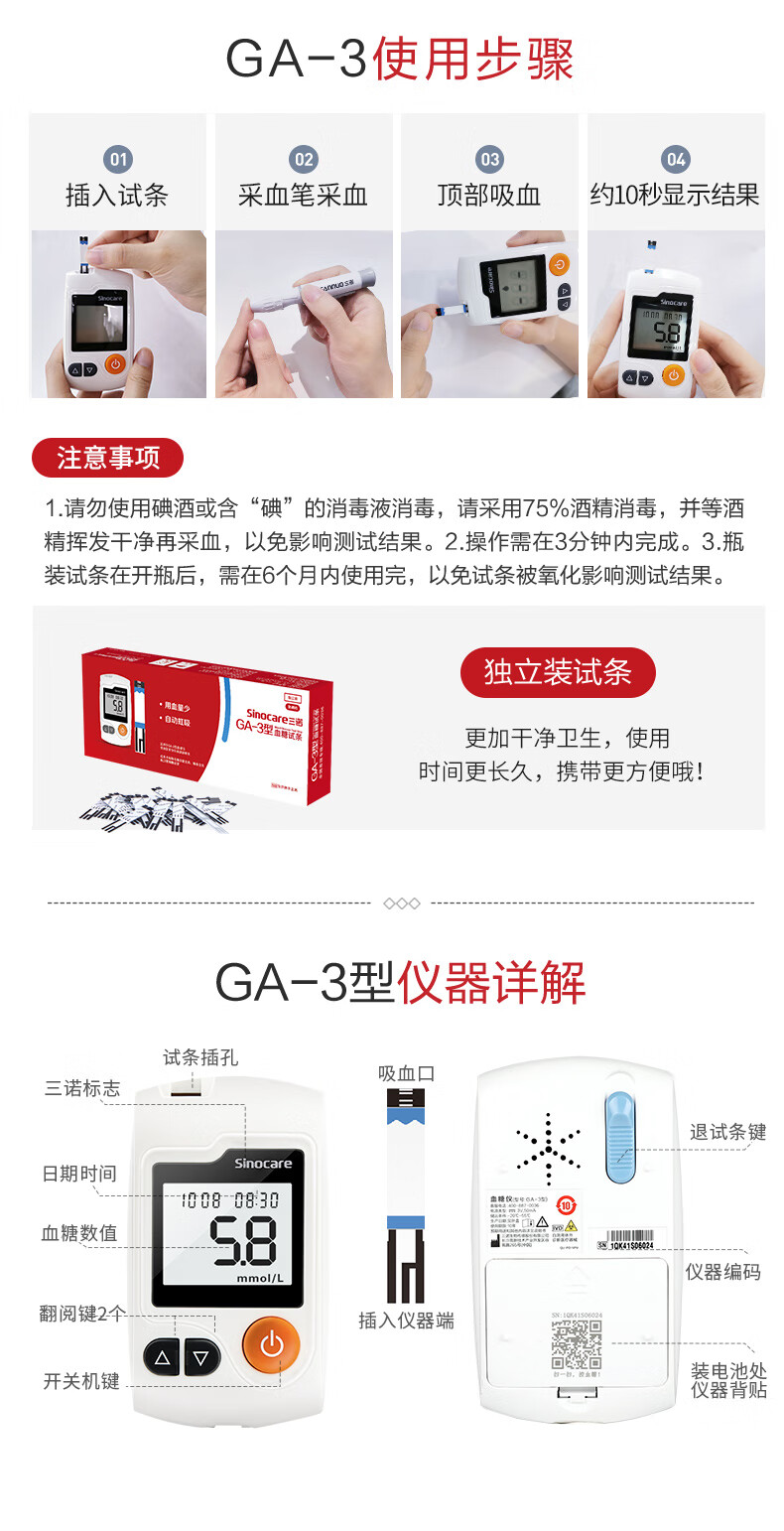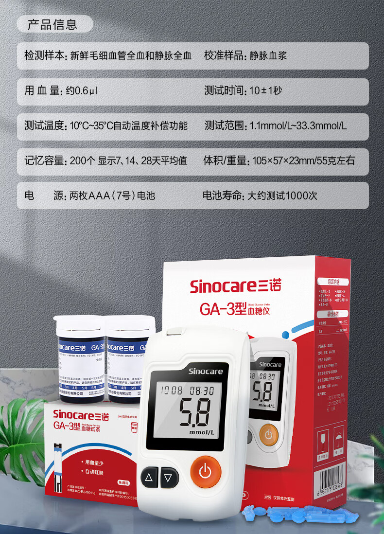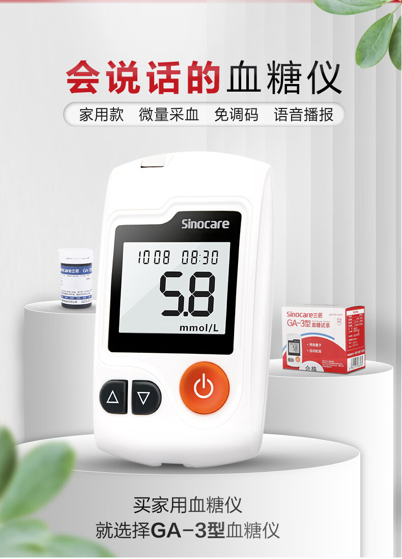 三诺血糖仪GA-3型测血糖仪试纸器家用免调码语音播报老人量血糖机器 套装血糖仪+50片试纸+50采血针+