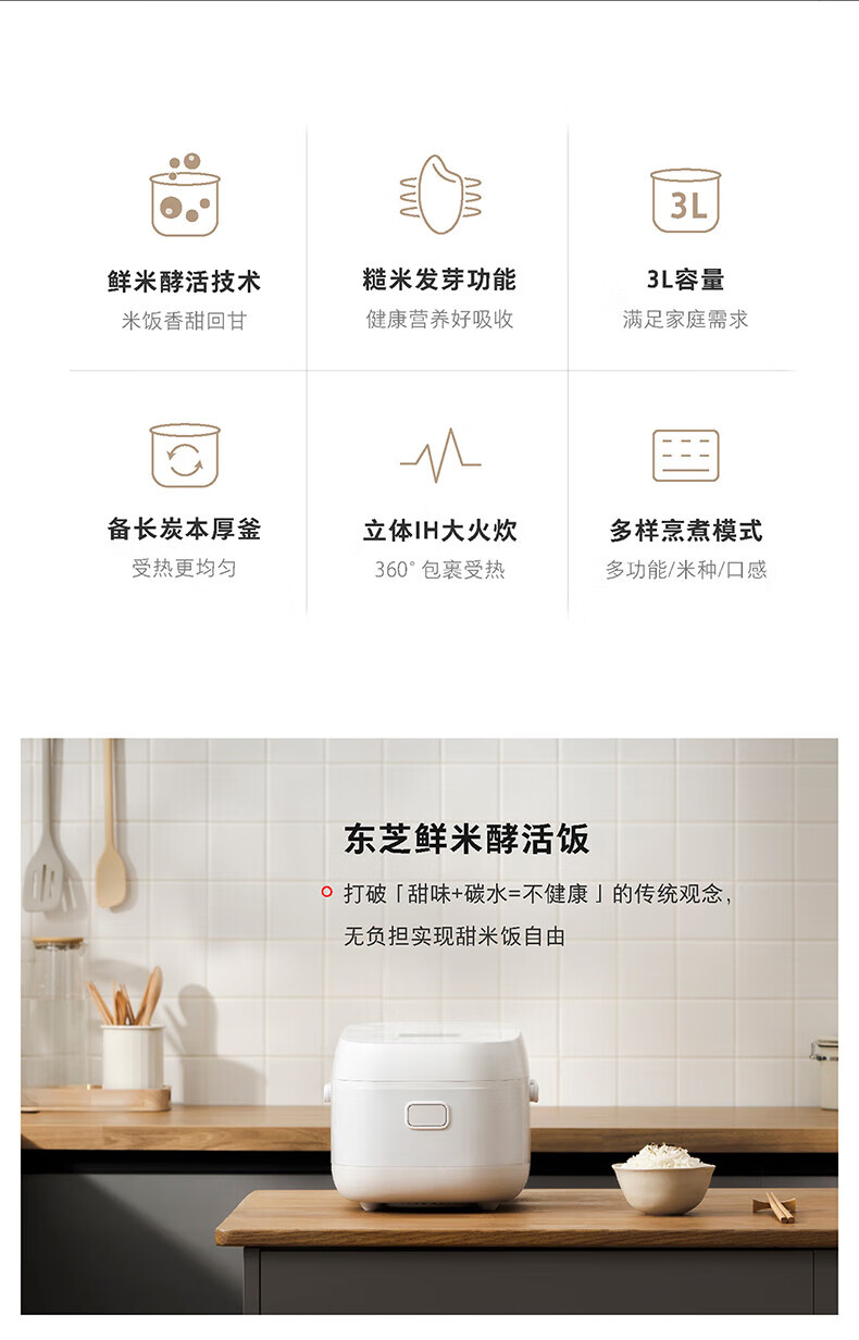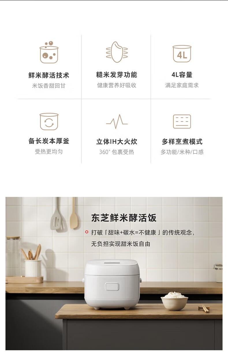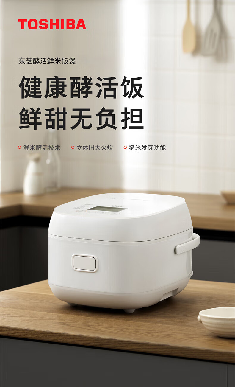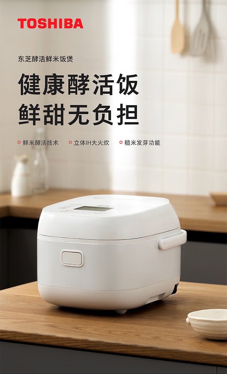 东芝(TOSHIBA)发芽米鲜饭煲 饭甜甜电饭煲 IH立体包裹式加热 家用电饭锅 多功能蒸煮锅加厚内胆杂粮粥粗粮米 【鲜米酵活】饭甜甜黑色 4L