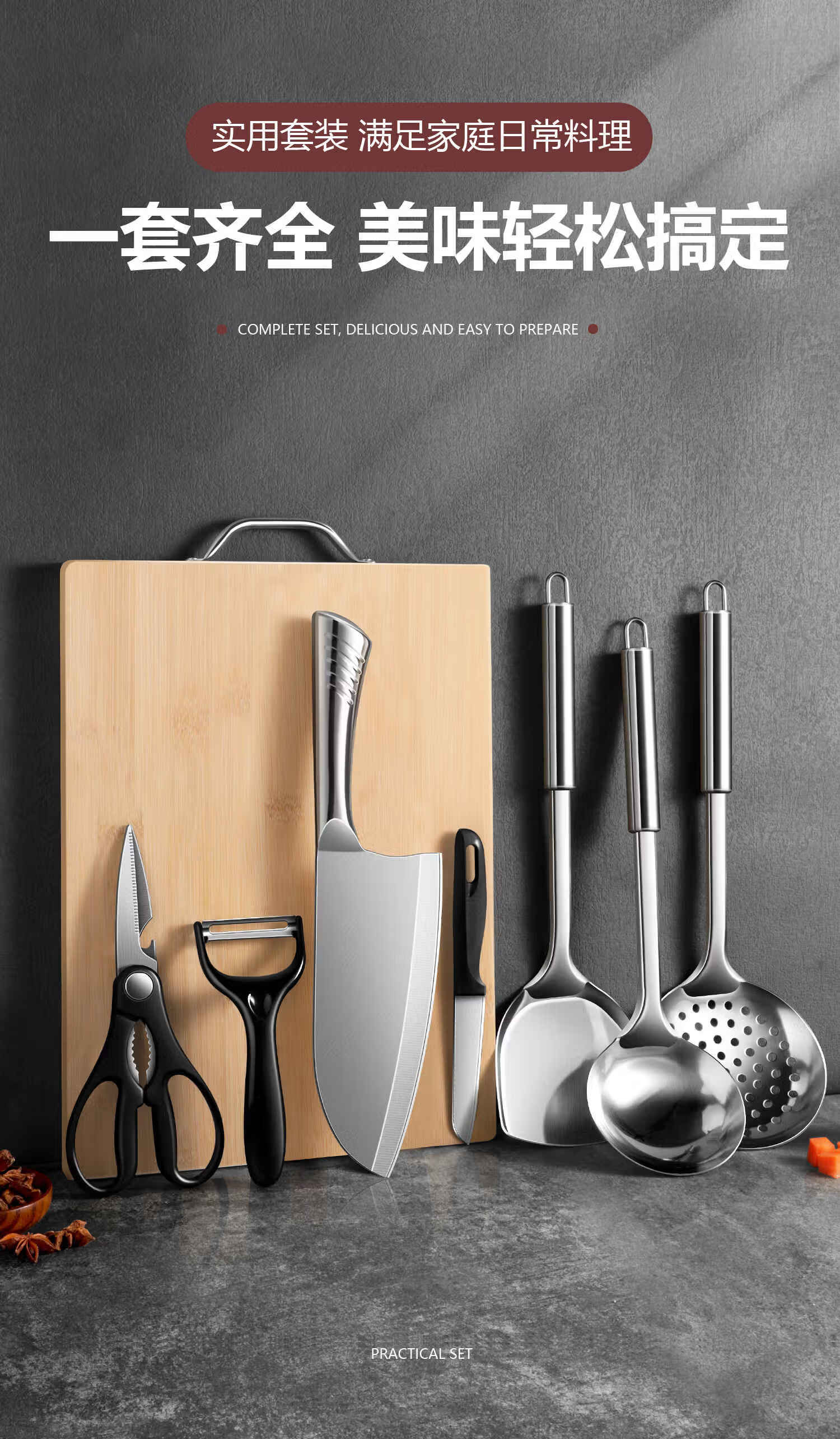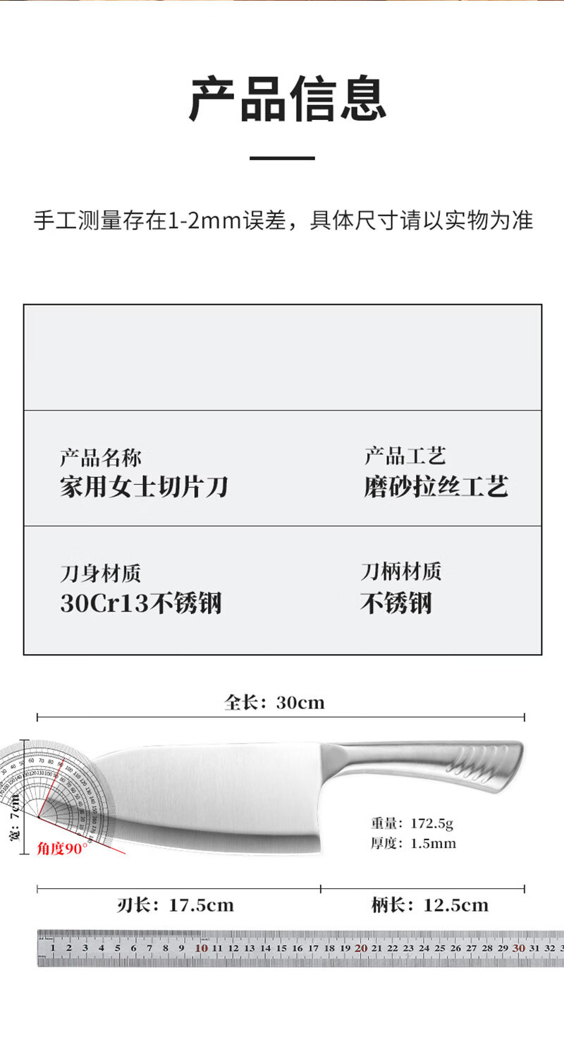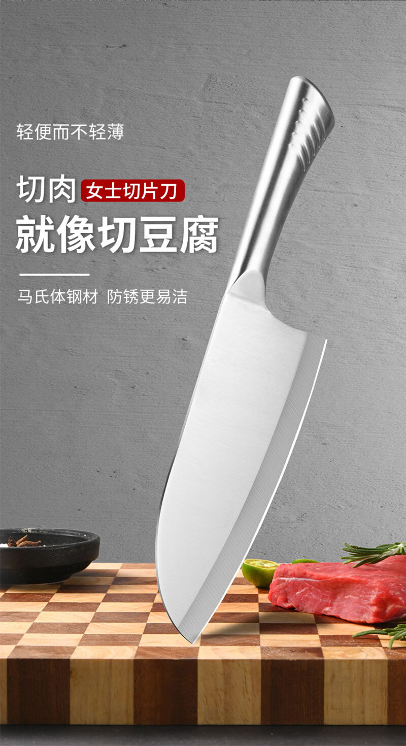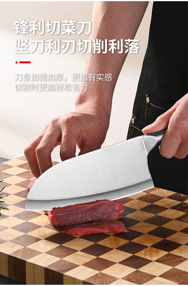 菜刀家用切片刀切肉刀厨师专用不锈钢刀具女士小菜刀砧板组合套装 【2件套】切片刀+水果刀