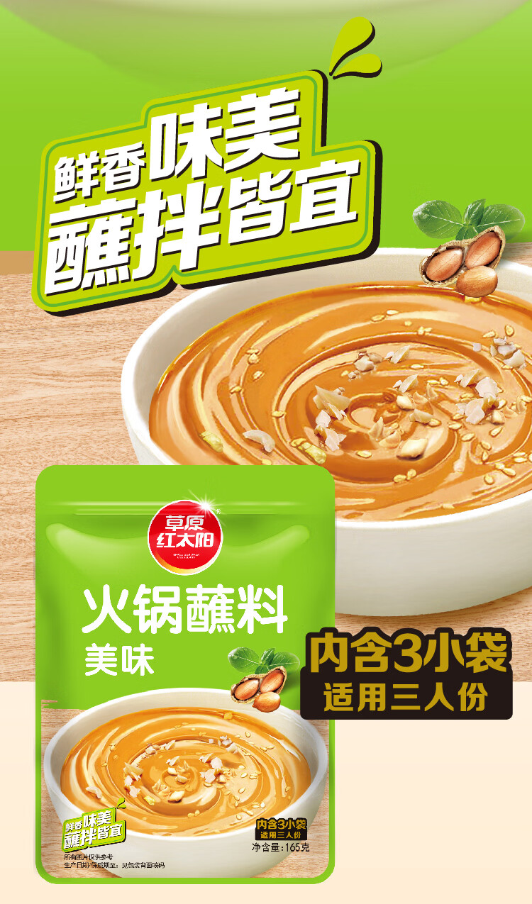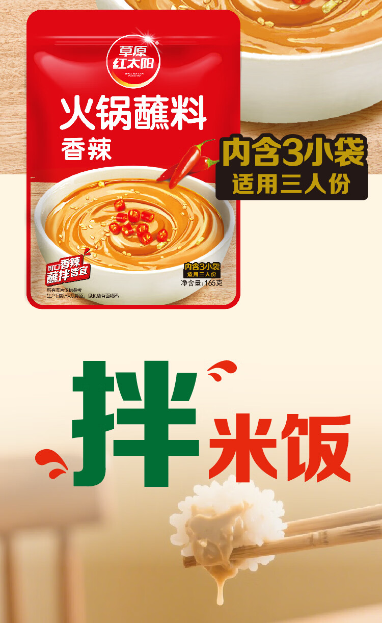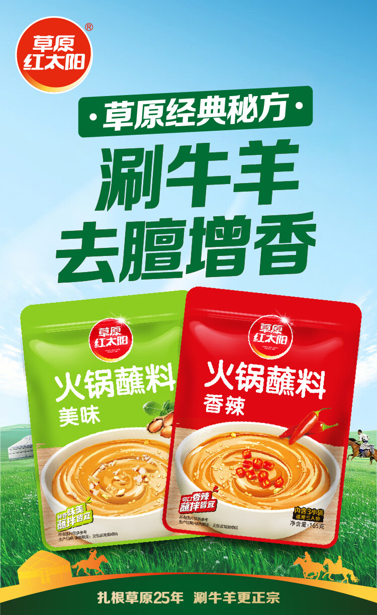 草原红太阳火锅蘸料涮肉烤肉酱烧烤料原味香辣小包装组合蘸料美味165g*10袋 【囤货装】火锅蘸料165g原味5袋+165g香辣5袋