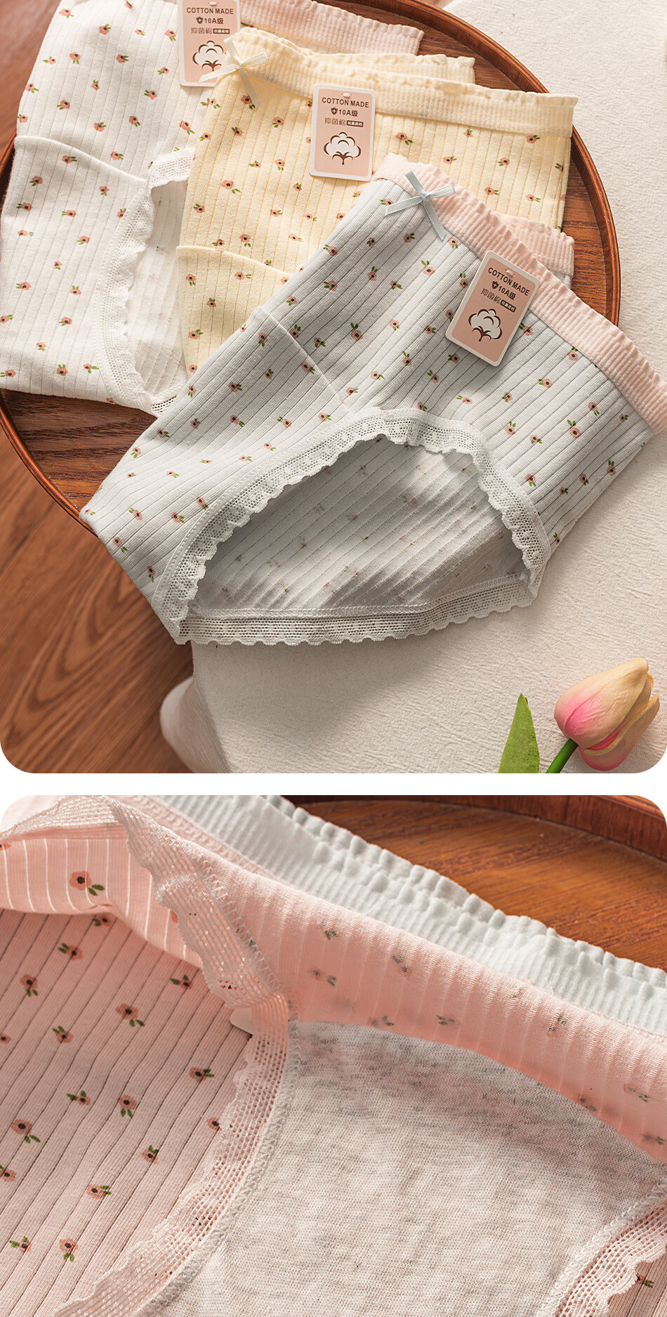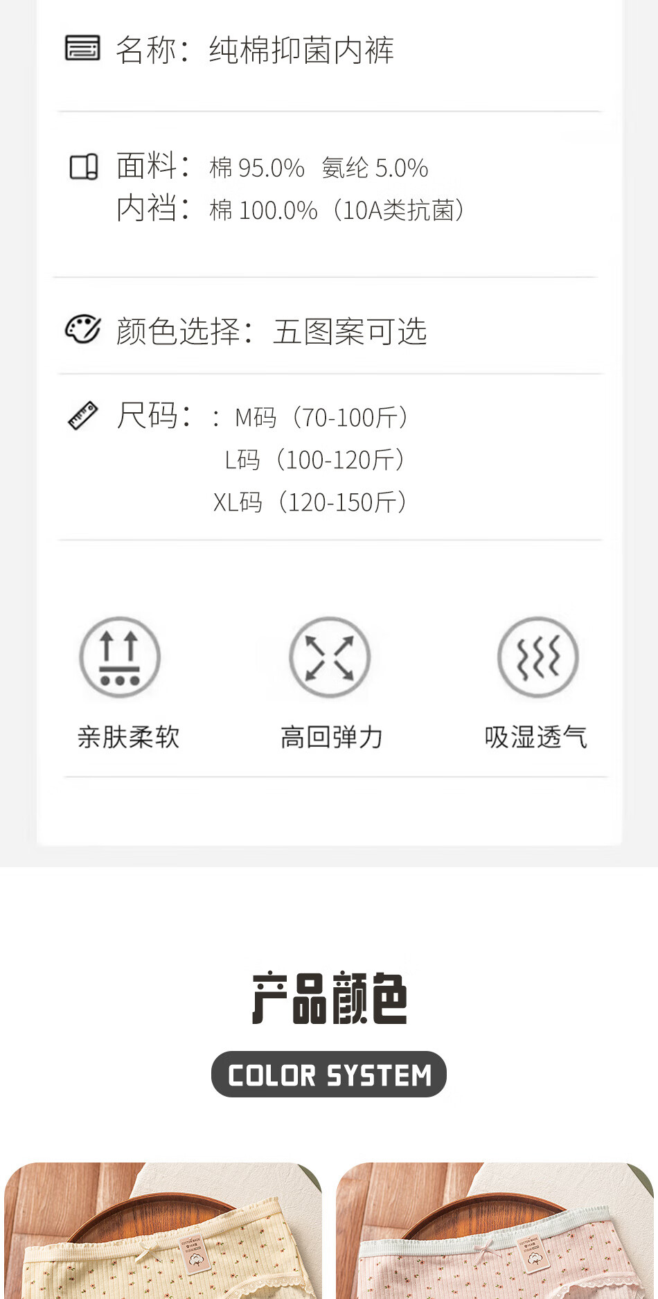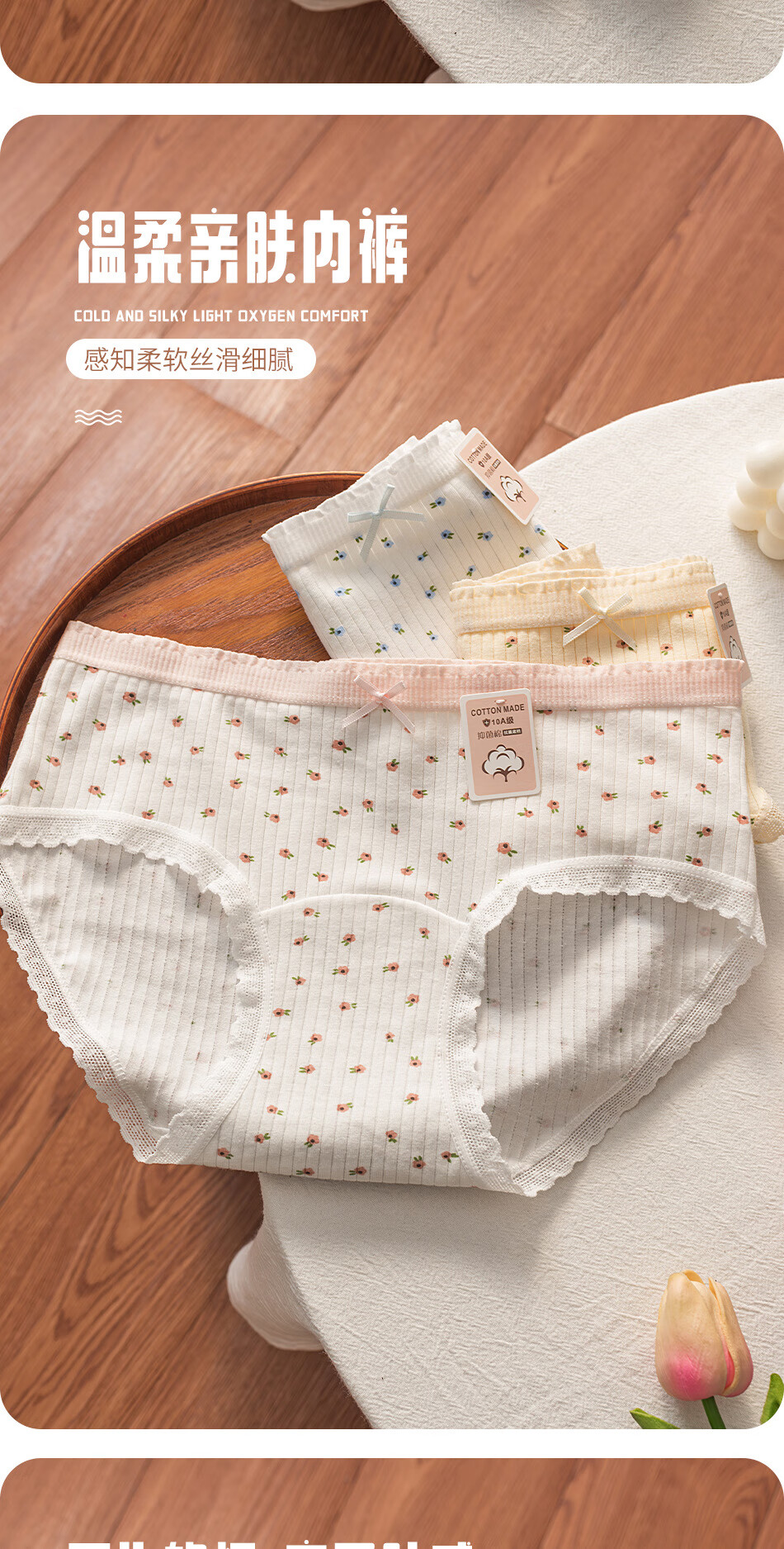 雅鹿女士纯棉内裤透气舒适弹力包臀少女内裤10A抗菌加长裆小碎花棉质 黄色+粉色+蓝色+白粉色 4条 M 【建议70-95斤】