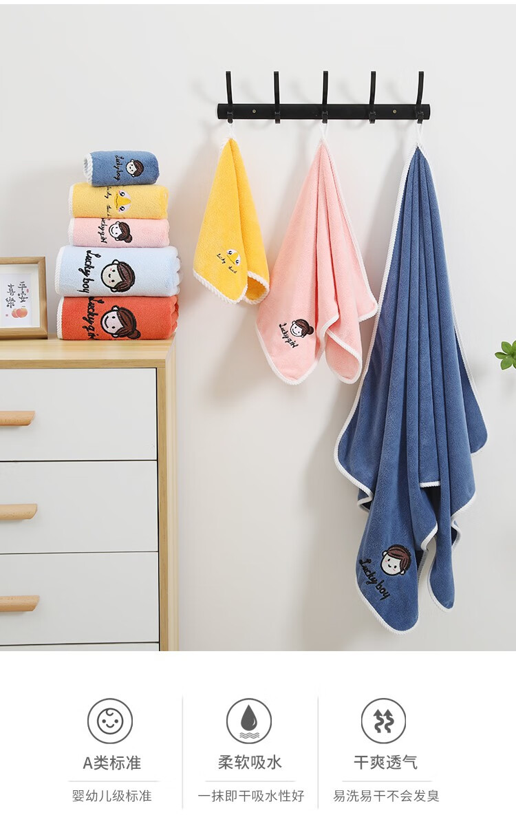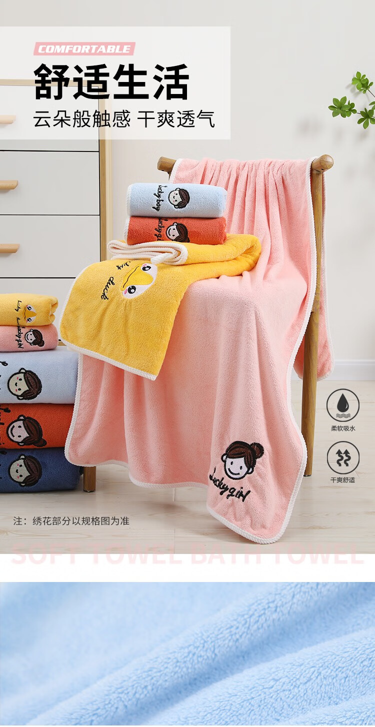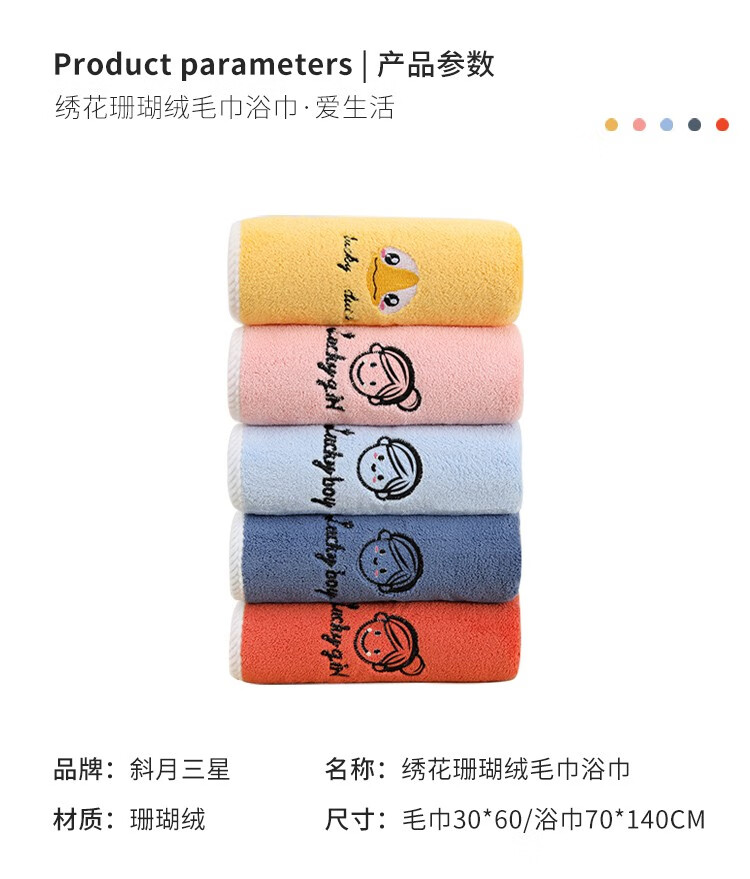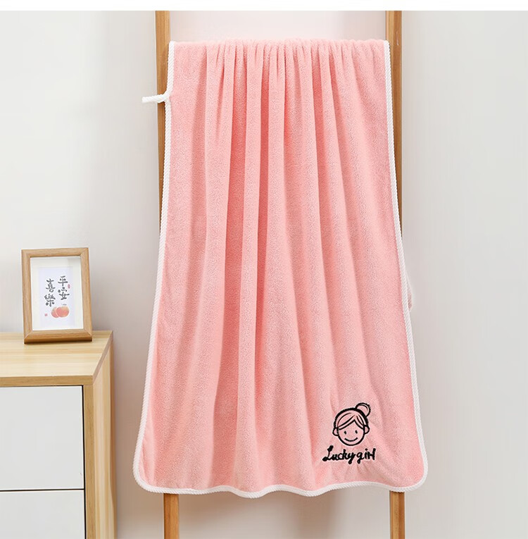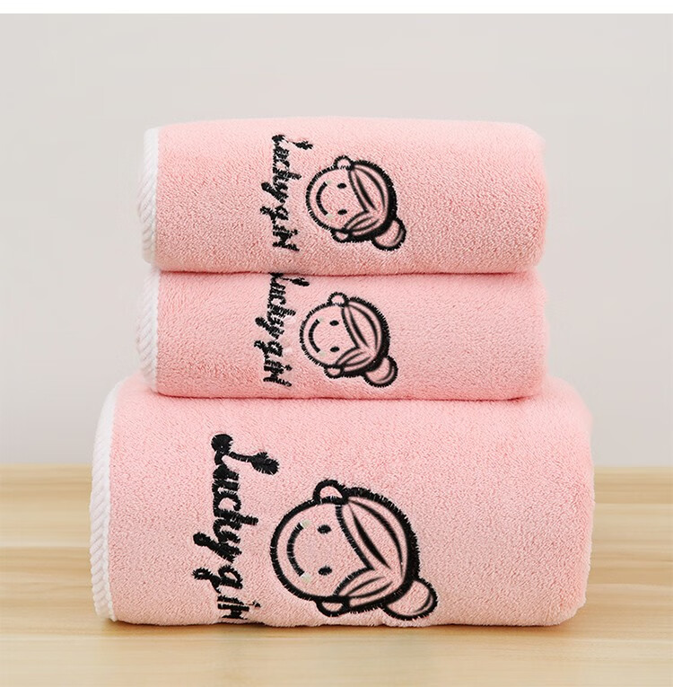 斜月三星珊瑚绒毛巾浴巾三件套A类密封包装柔软吸水套装 字母妹妹粉色【2毛巾+1浴巾】