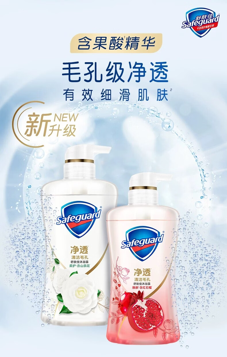 舒肤佳沐浴露红石榴山茶花清洁香含果酸净透持久留香男女士通用实惠570g 红石榴570g+山茶花570g*2瓶