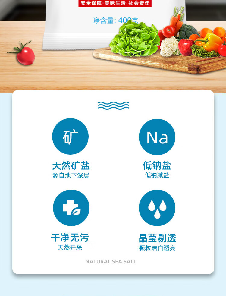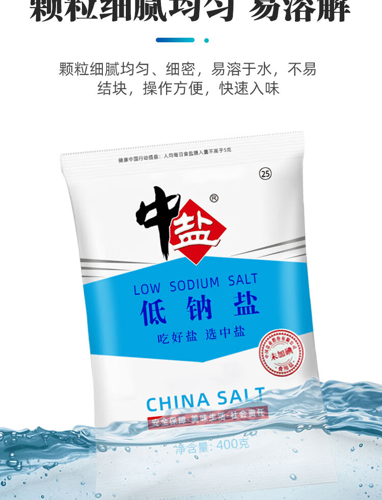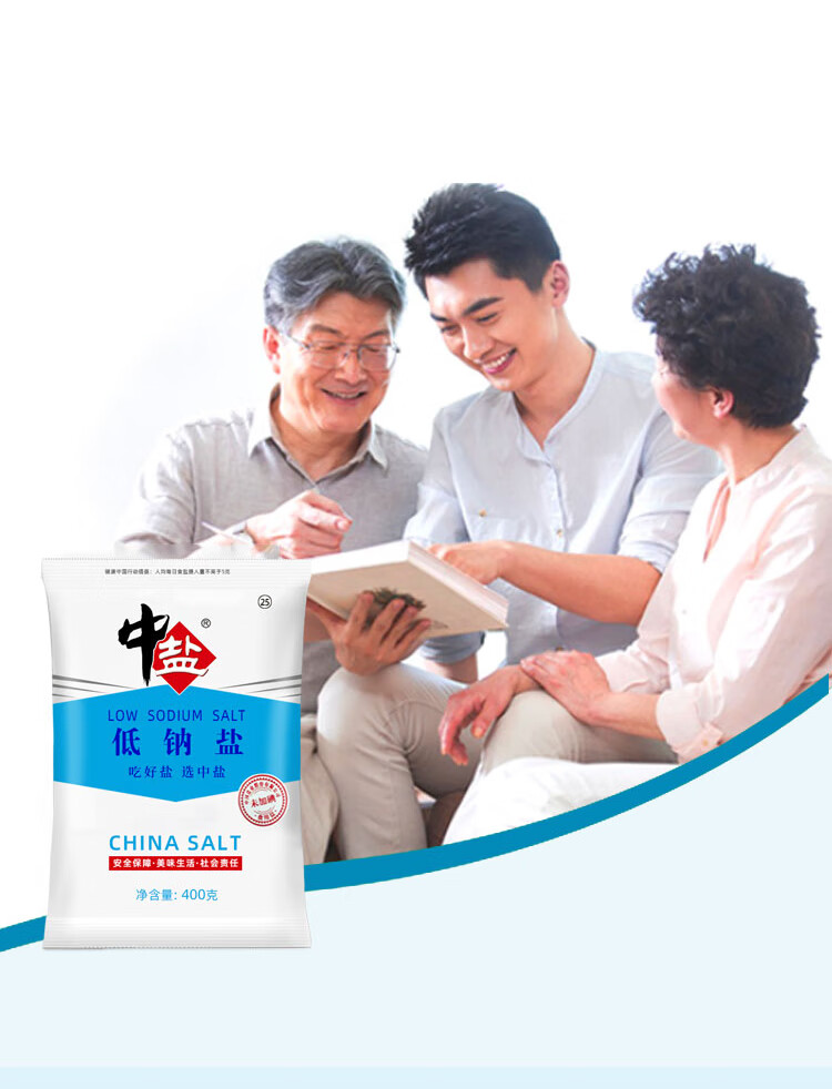 中盐 低钠盐400g【未加碘 】食用盐 低钠更健康 新老包装交替发货