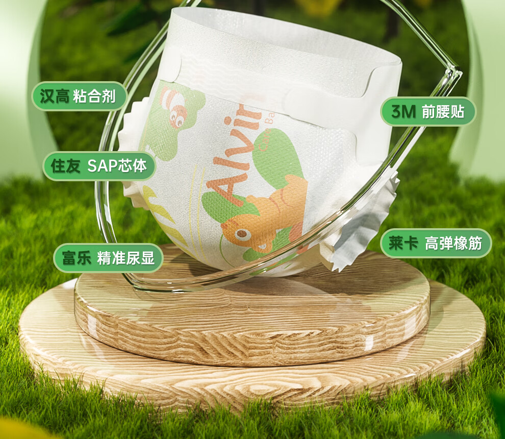 艾薇儿Alvin奇幻森林桑蚕丝纸尿裤M码58片轻薄透气干爽夜用安睡尿不湿