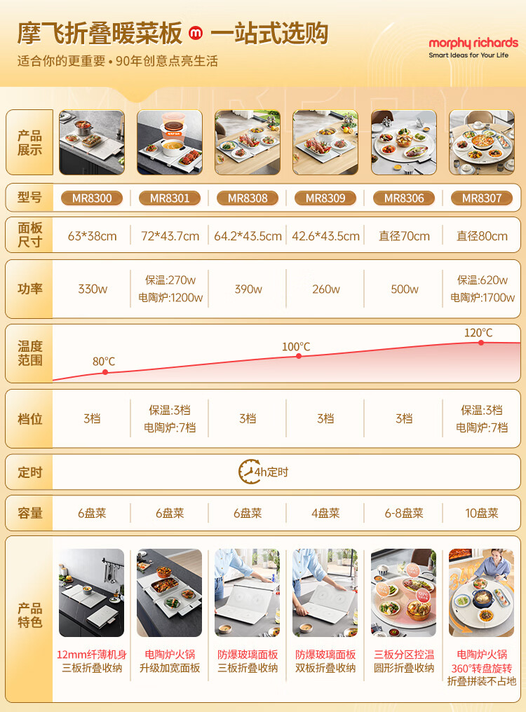 摩飞电器(Morphyrichards)三折叠暖菜板 饭菜保温板热菜板 加热桌垫菜板 多功能饭菜加热板 定时饭菜保温烹饪机神器MR8300