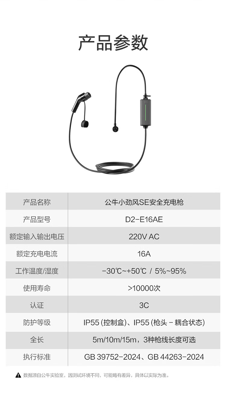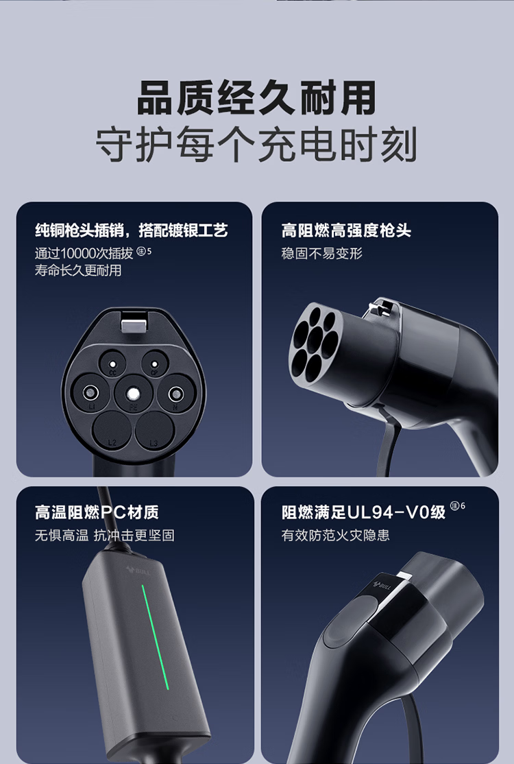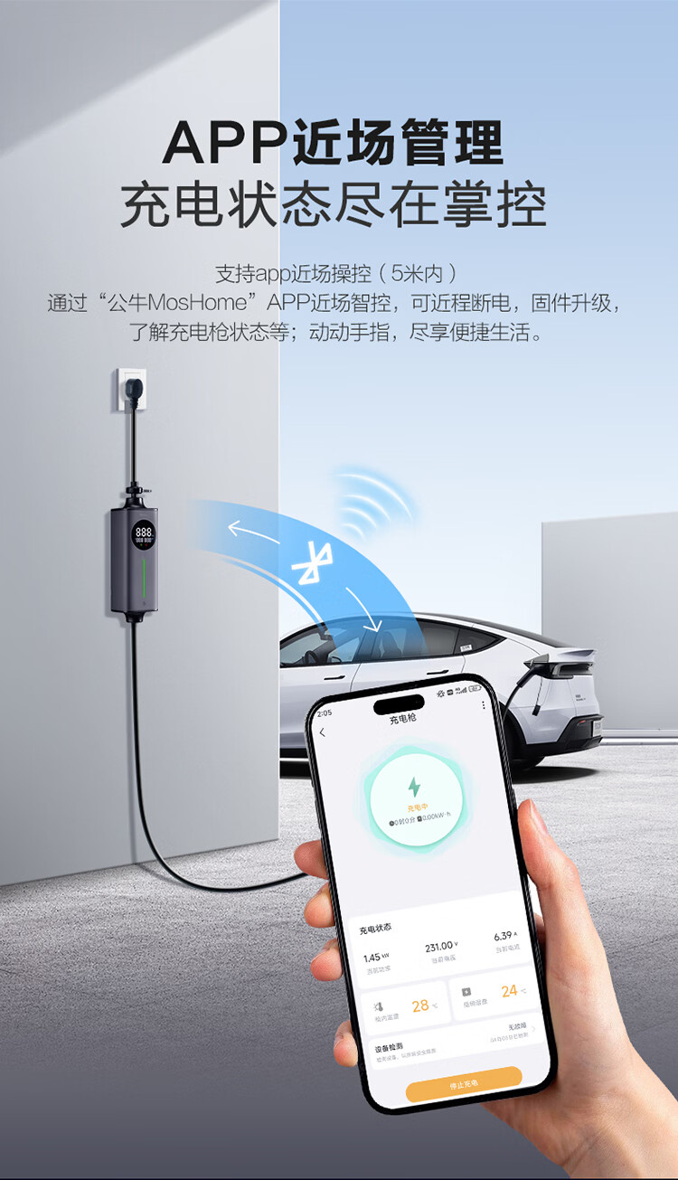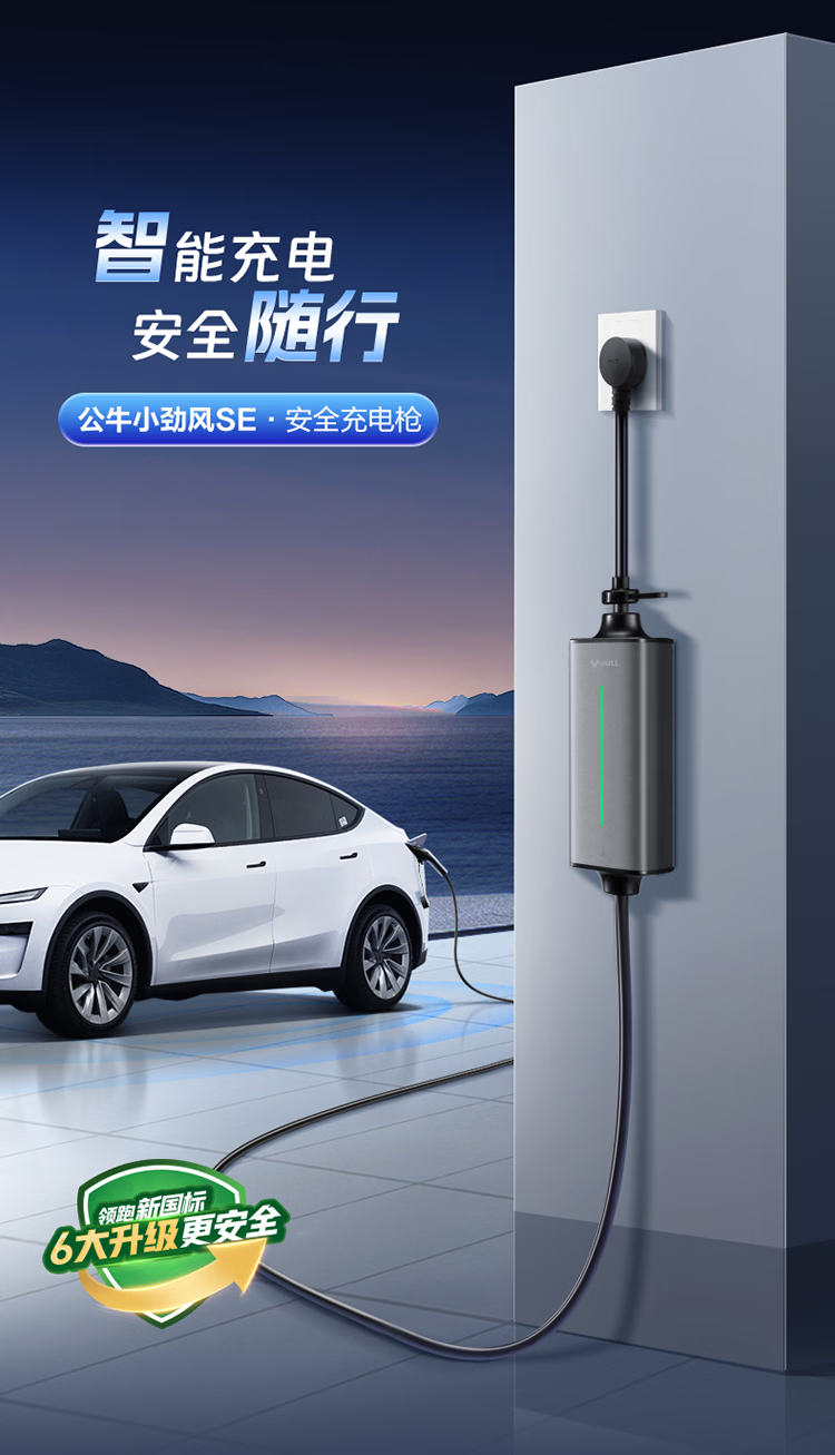 公牛(BULL)新能源电动汽车充电枪 随车充适配于特斯拉/小米su7/华为问界M7/M8鸿蒙智行 便携充家用3.5kw 【5米小劲风蓝牙款SE 3.5kw】新国标