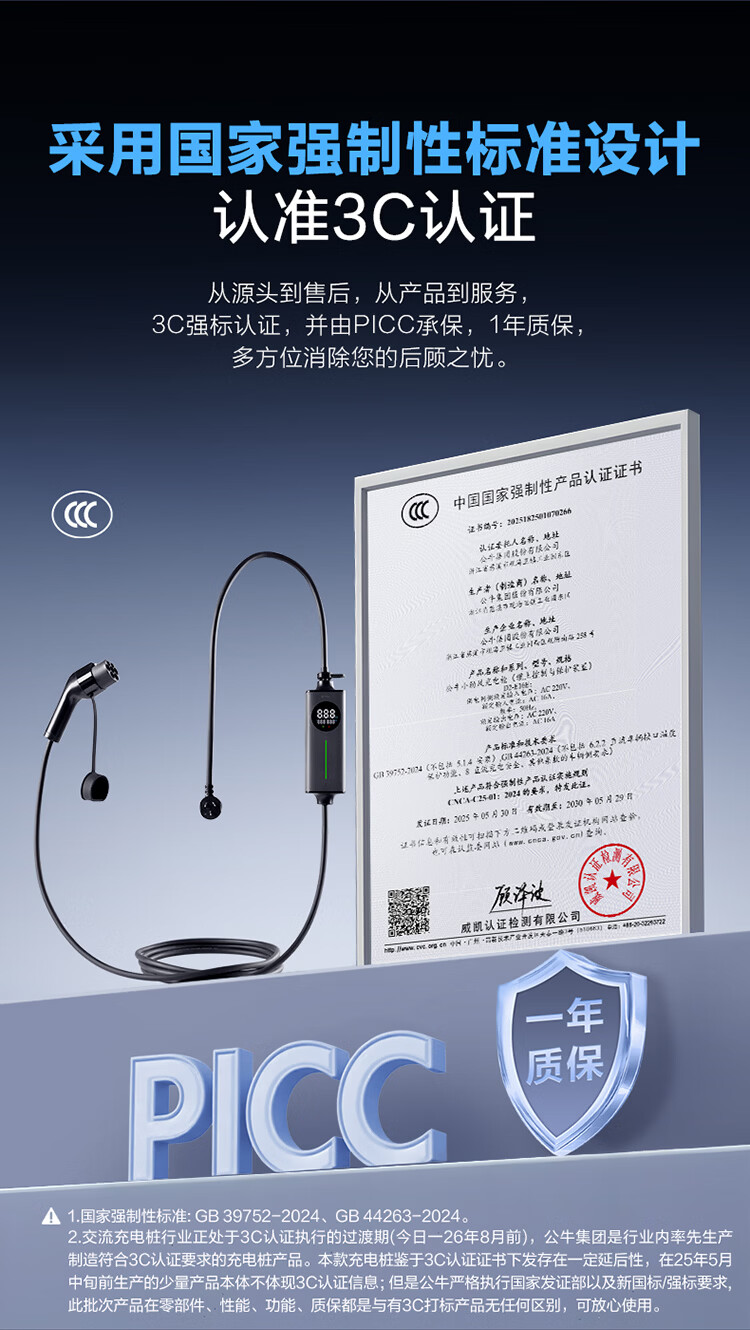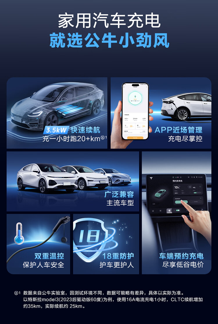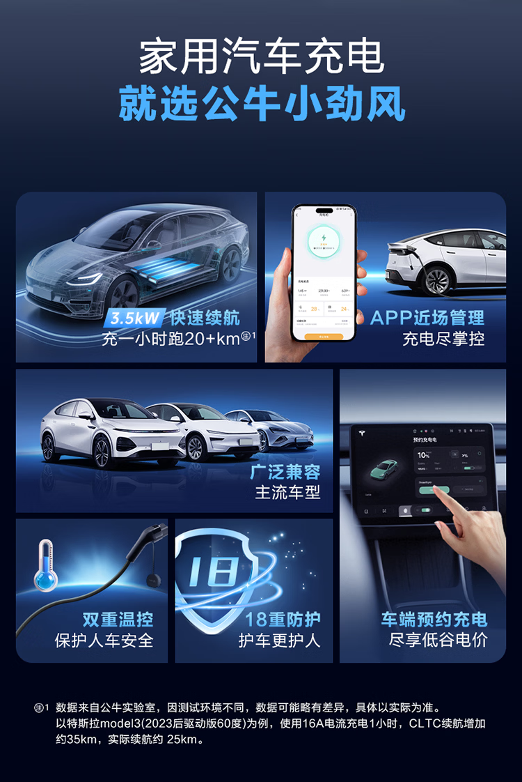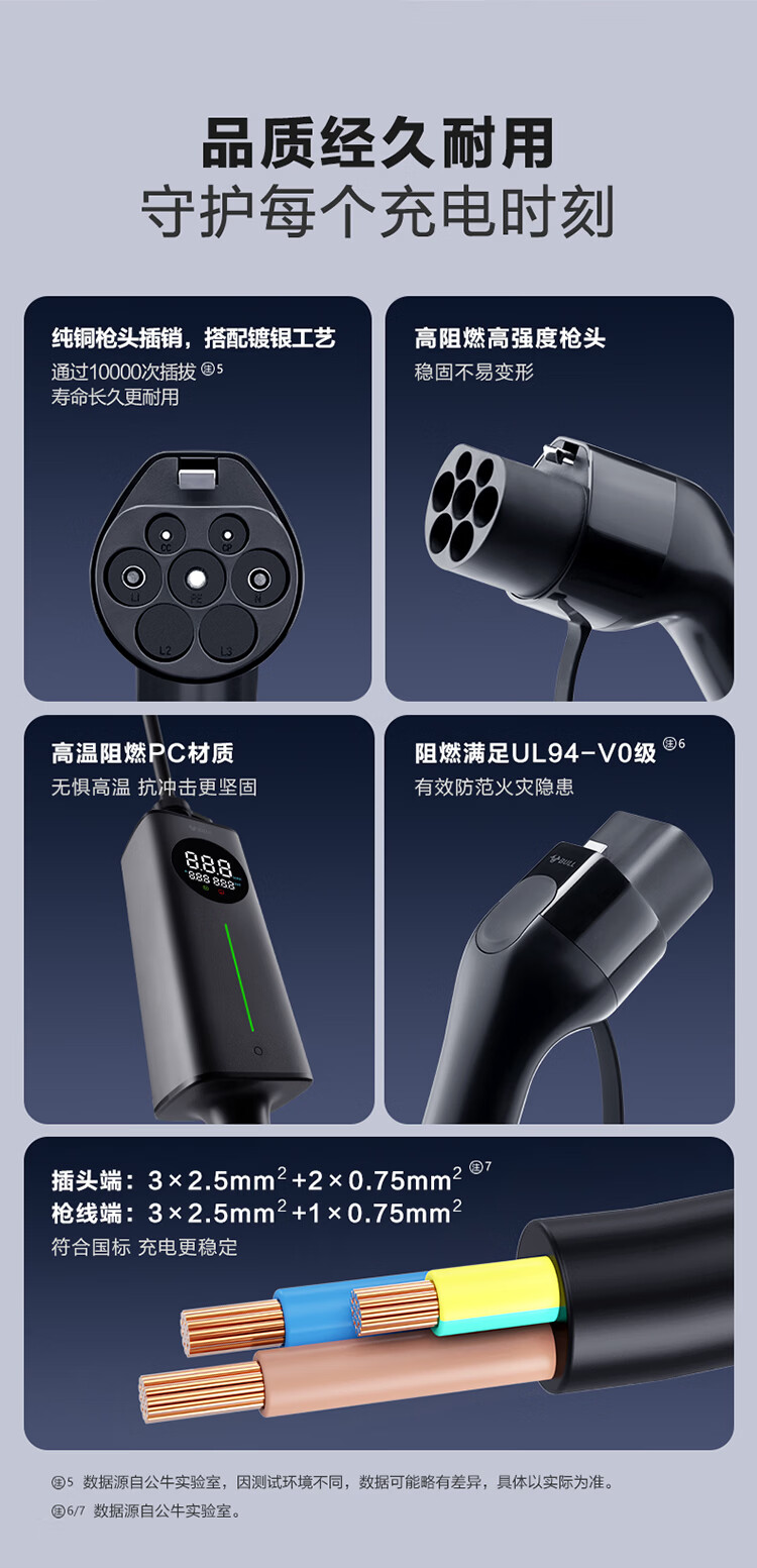 公牛(BULL)新能源电动汽车充电枪 随车充适配于特斯拉/小米su7/华为问界M7/M8鸿蒙智行 便携充家用3.5kw 【5米小劲风蓝牙款SE 3.5kw】新国标