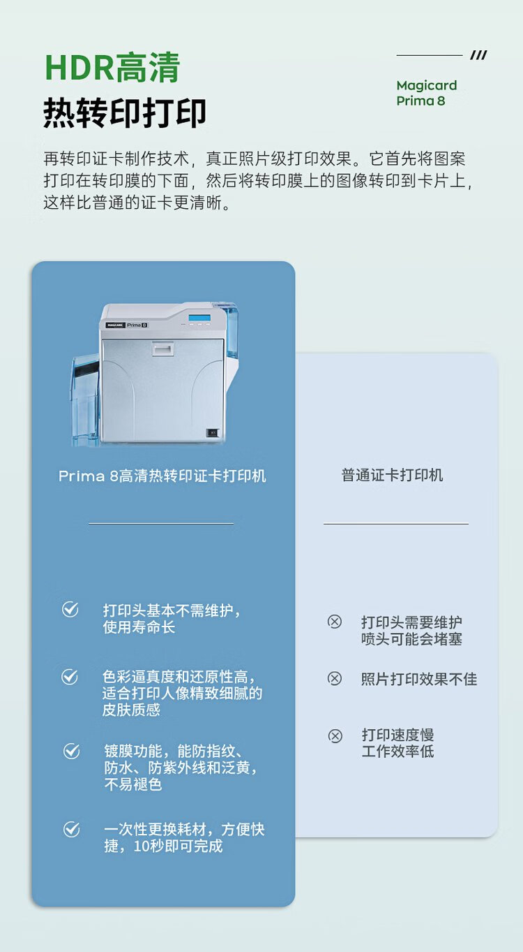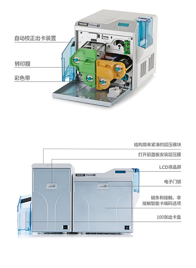 kingaotech美吉卡prima8再转印证卡打印机社保卡打印IC卡ID卡CPU卡打印出入门禁卡打印 prima8色带+膜一套