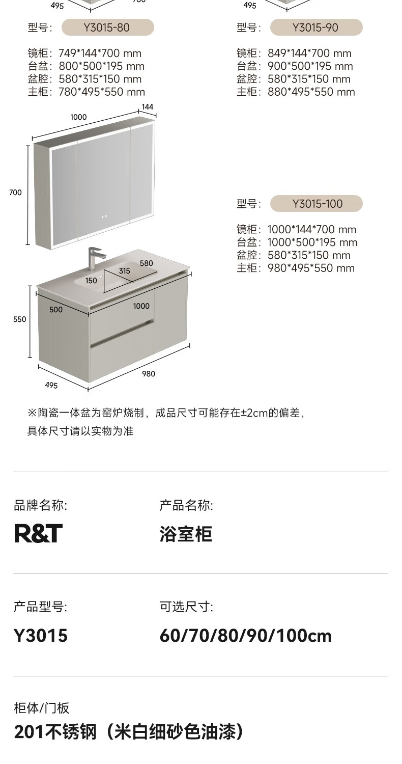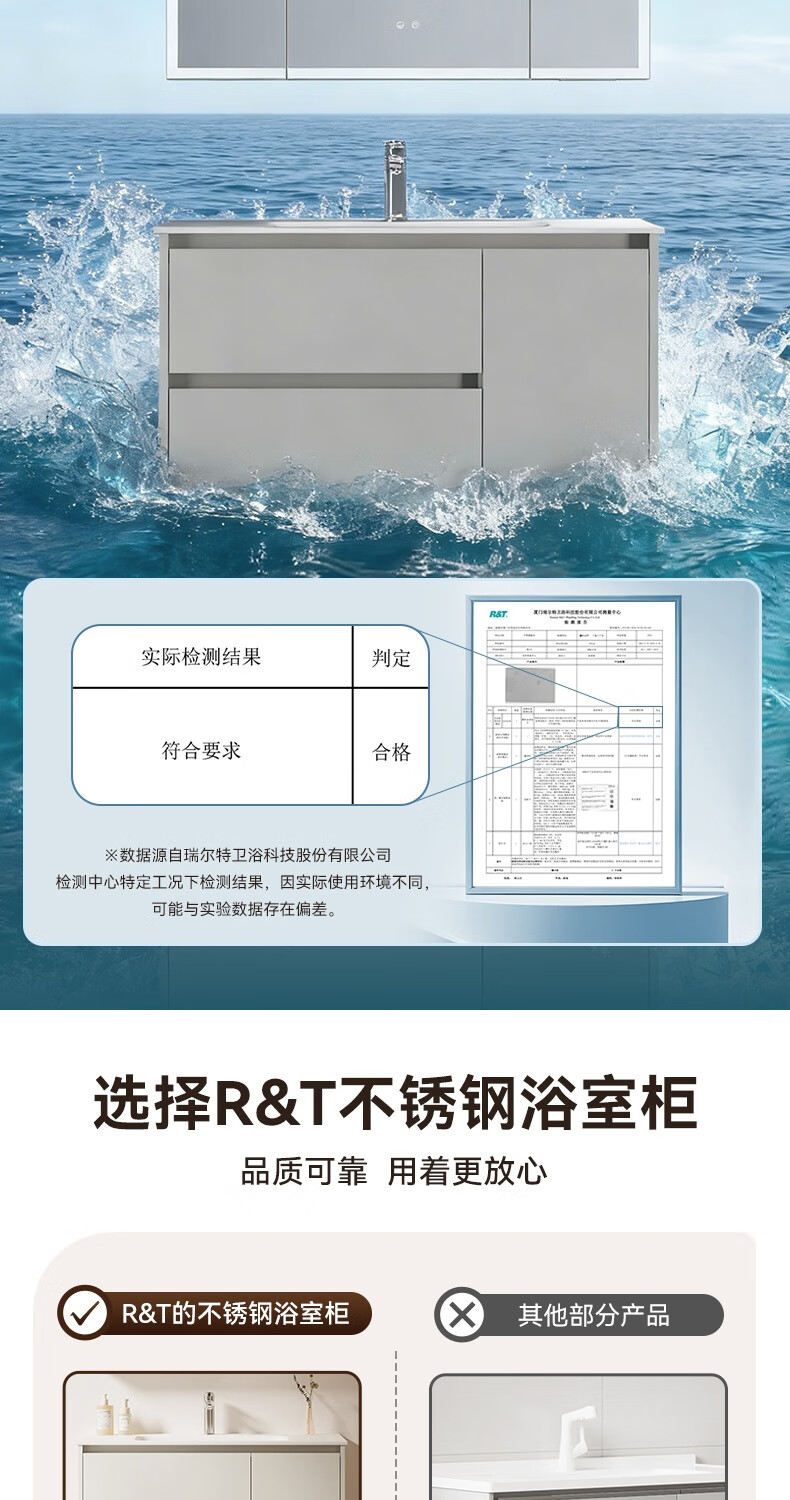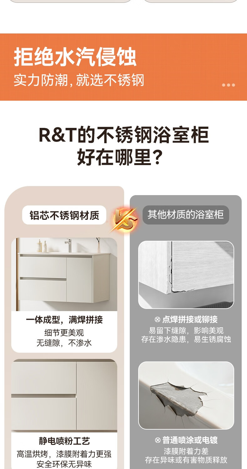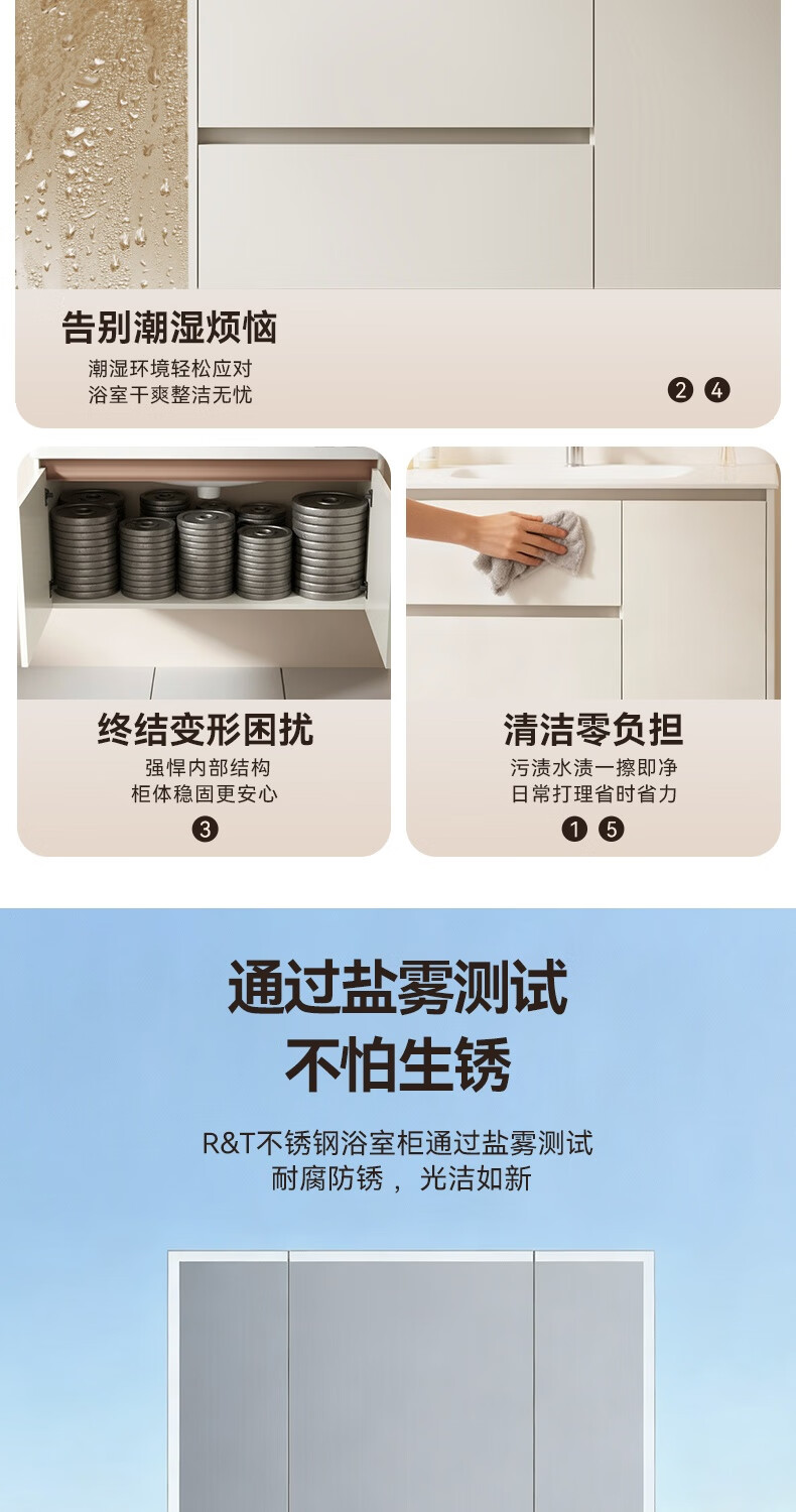 瑞尔特(R&T)2026年新款不锈钢浴室柜组合奶油风卫生间星曜一体盆洗漱台Y3015 Y3015-90cm【不锈钢+星曜一体盆+多元分区储物】