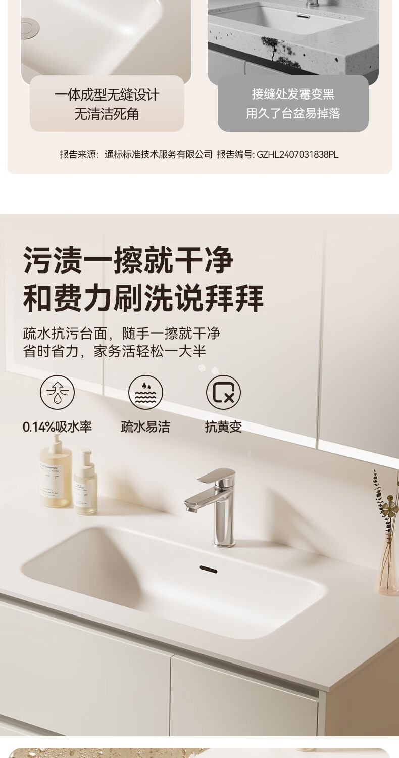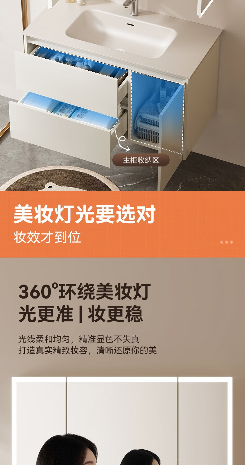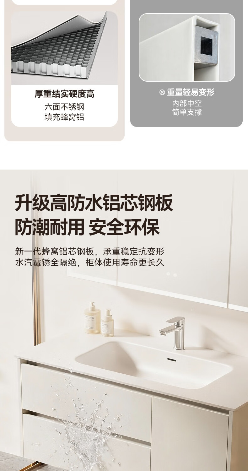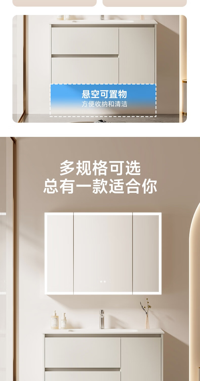 瑞尔特(R&T)2026年新款不锈钢浴室柜组合奶油风卫生间星曜一体盆洗漱台Y3015 Y3015-90cm【不锈钢+星曜一体盆+多元分区储物】