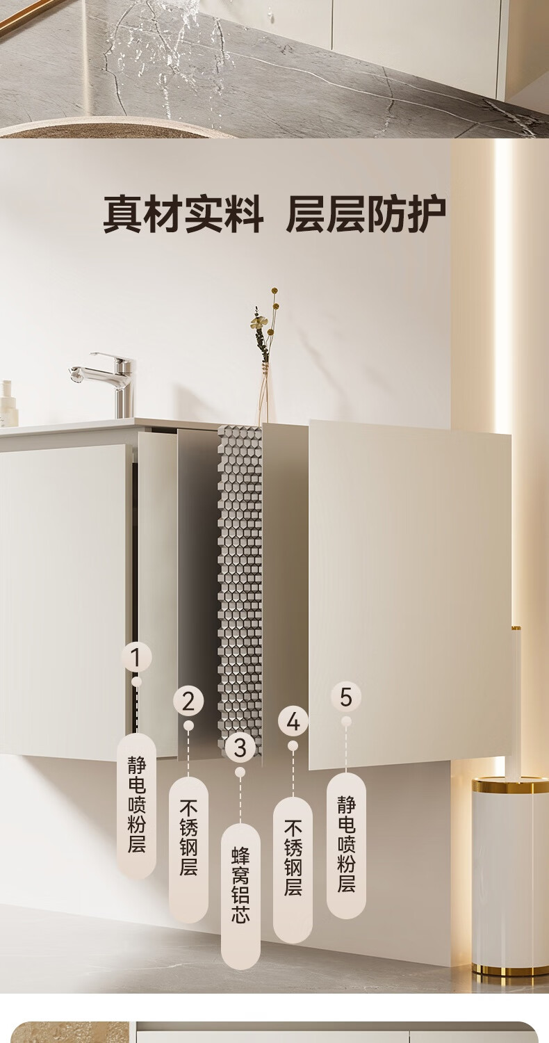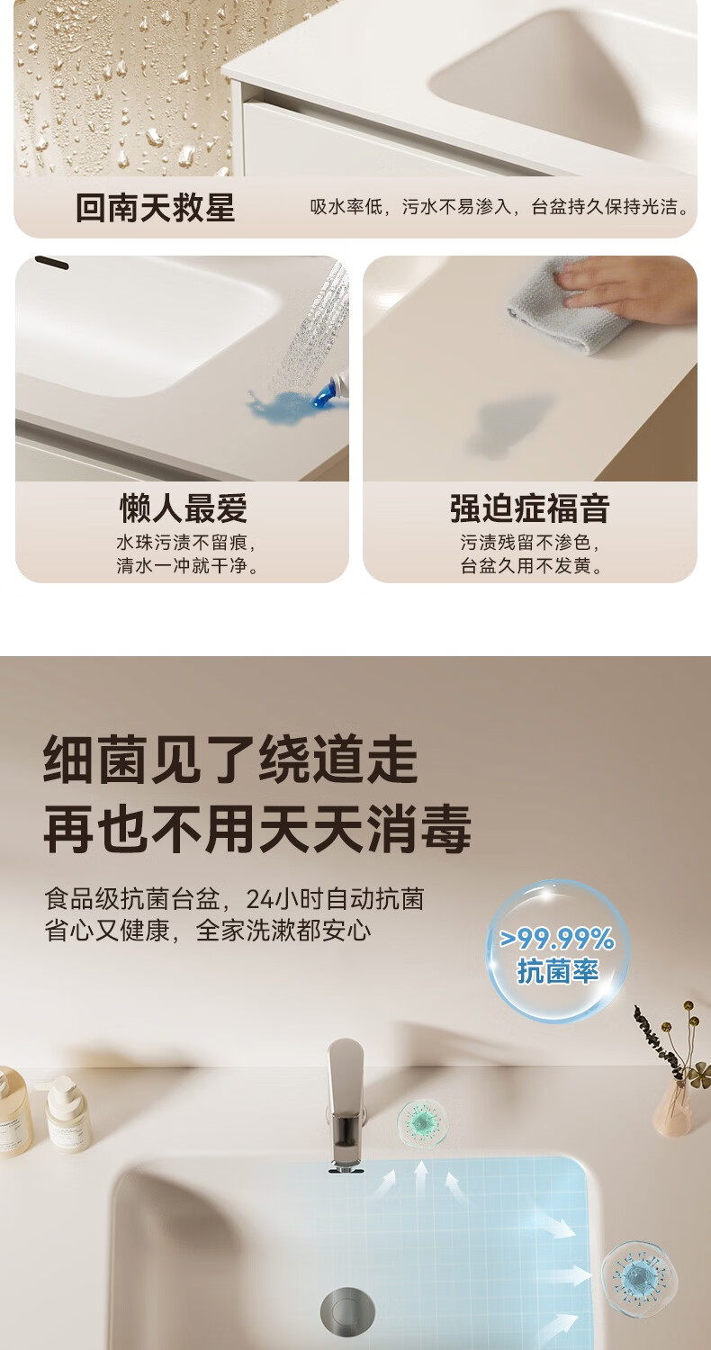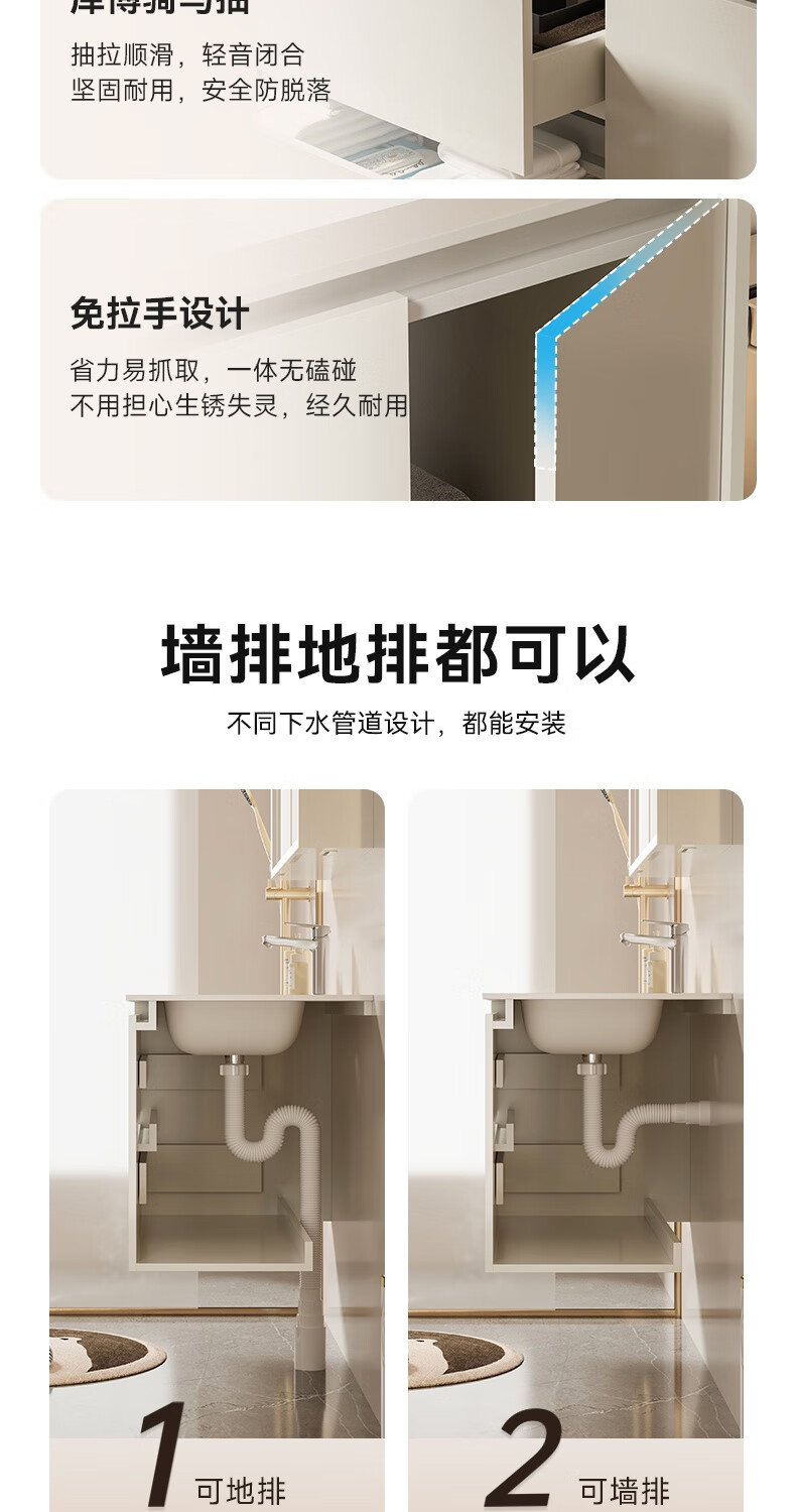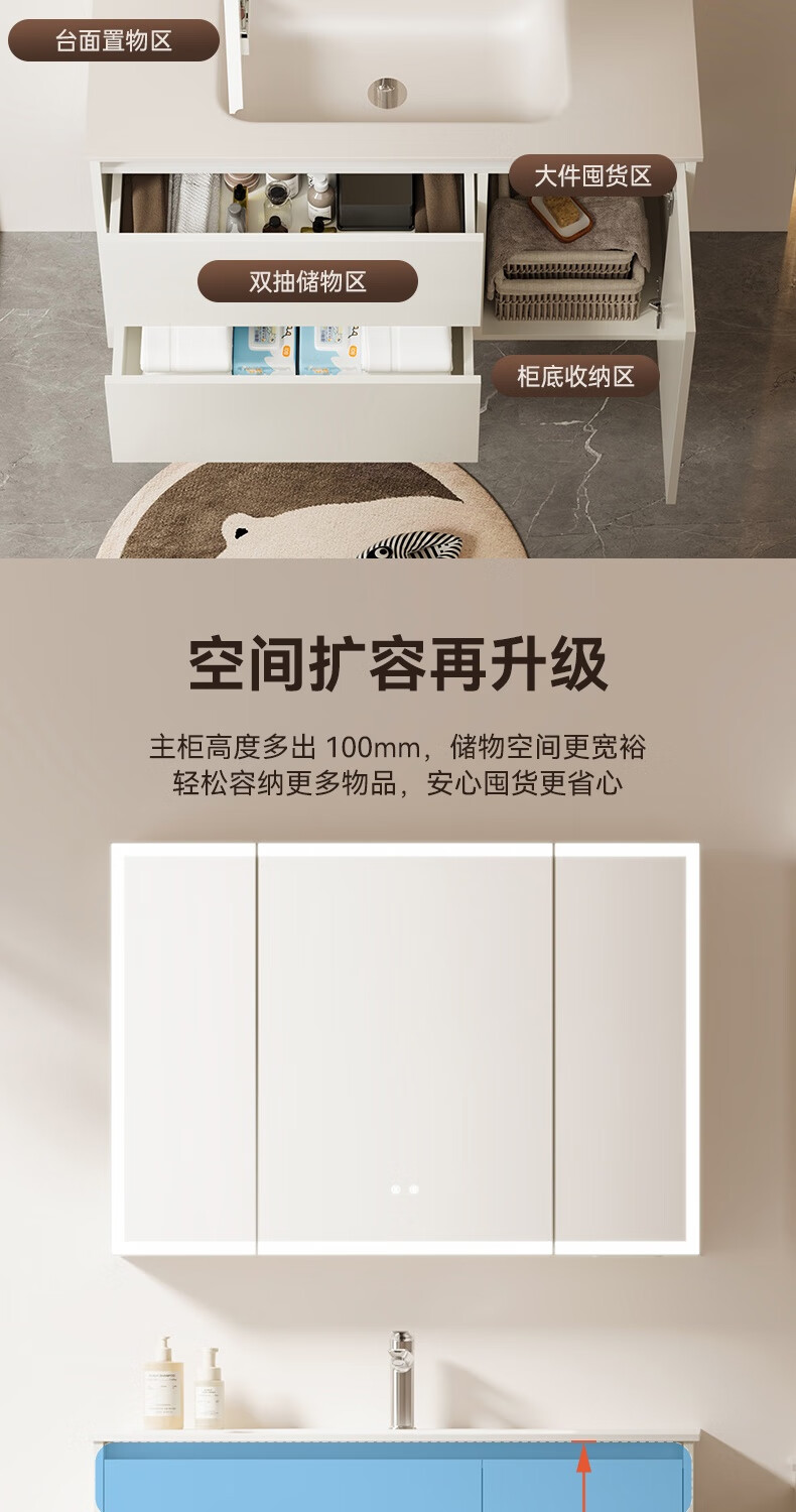 瑞尔特(R&T)2026年新款不锈钢浴室柜组合奶油风卫生间星曜一体盆洗漱台Y3015 Y3015-90cm【不锈钢+星曜一体盆+多元分区储物】