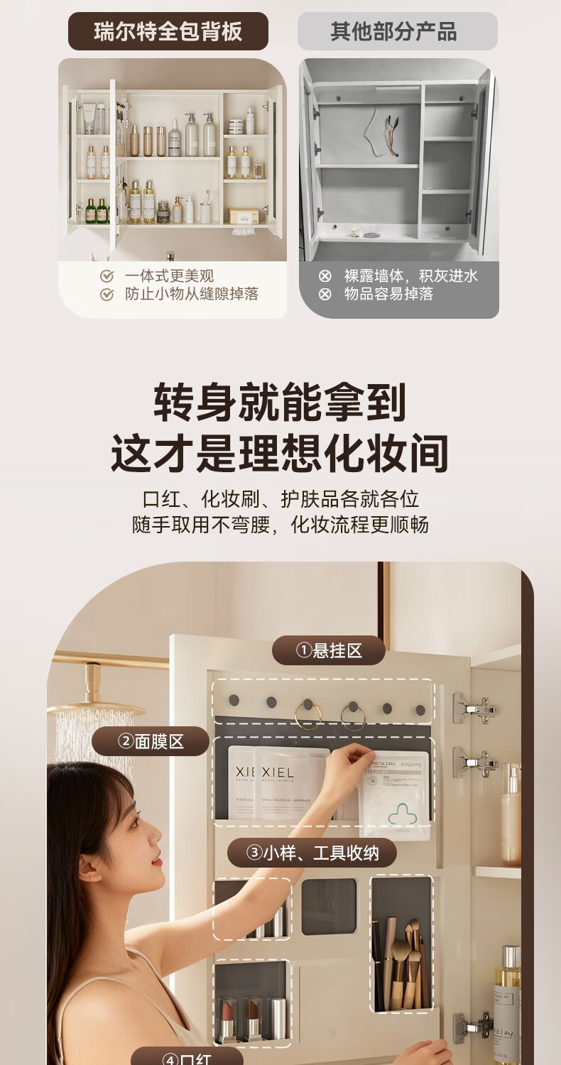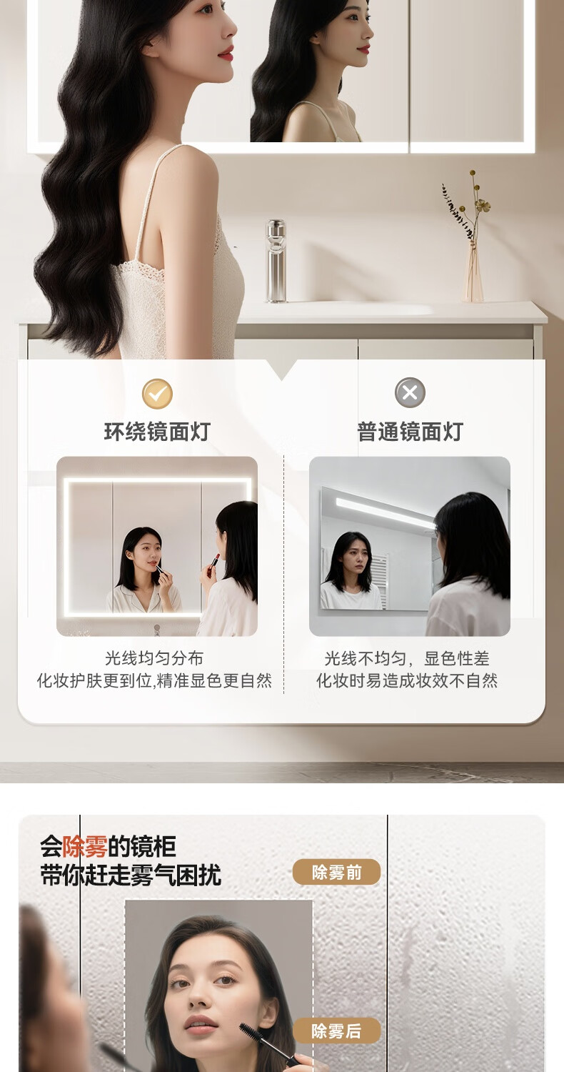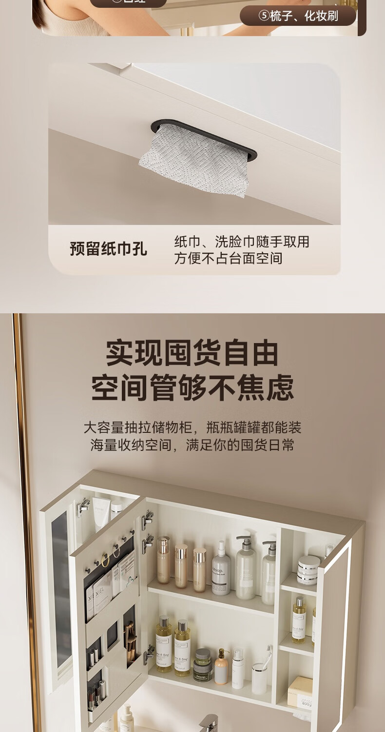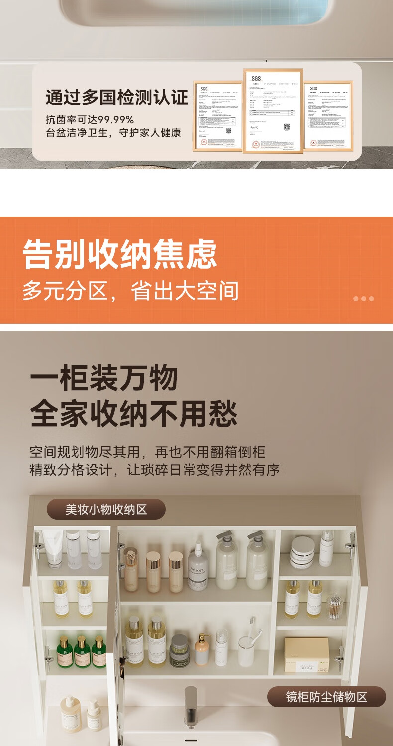 瑞尔特(R&T)2026年新款不锈钢浴室柜组合奶油风卫生间星曜一体盆洗漱台Y3015 Y3015-90cm【不锈钢+星曜一体盆+多元分区储物】