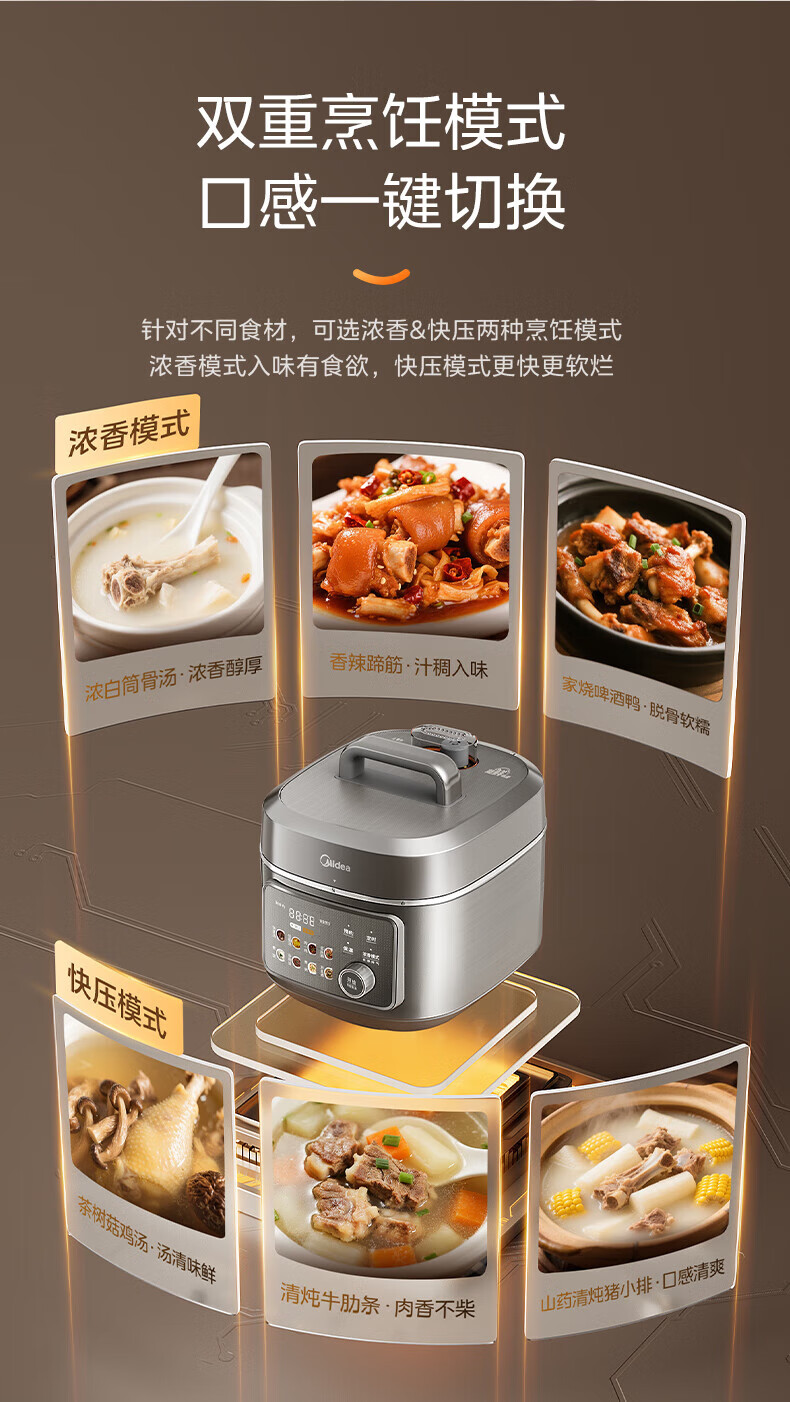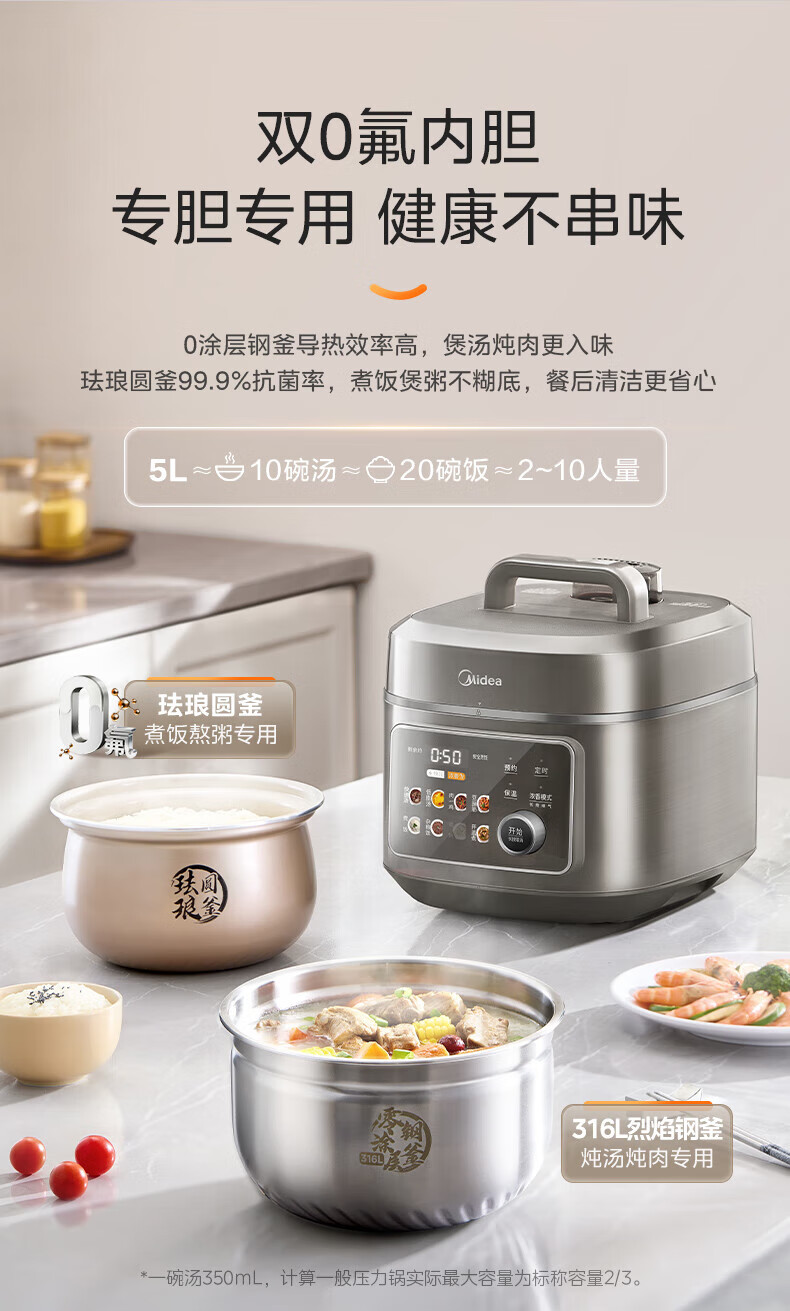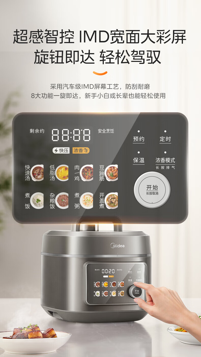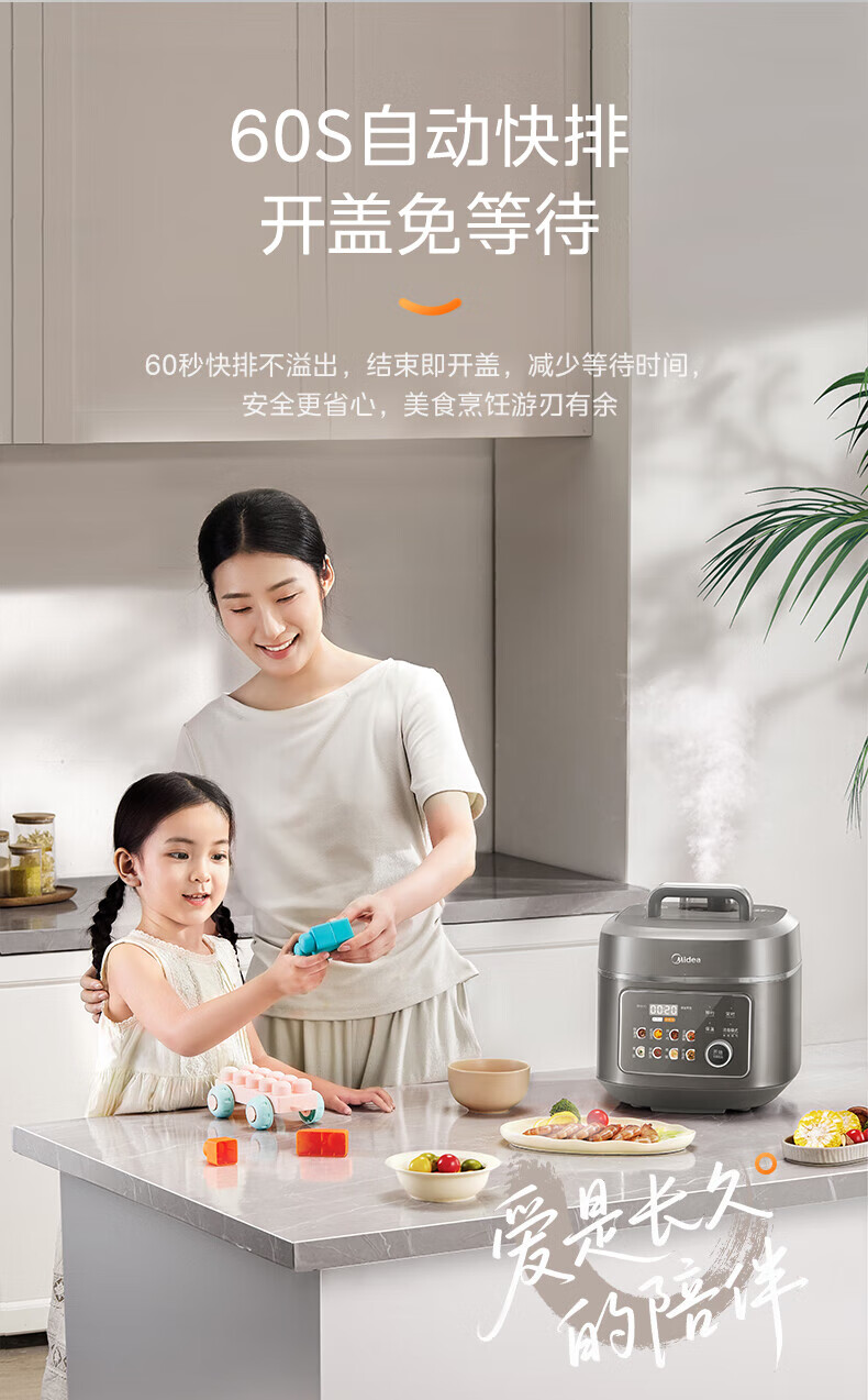 美的(Midea)低脂浓香60S快排电压力锅5L家用全自动多功能电饭煲高压锅4-6人母婴316L精钢0涂层球胆远红外炖煮 C5650F【快排系列】 5L