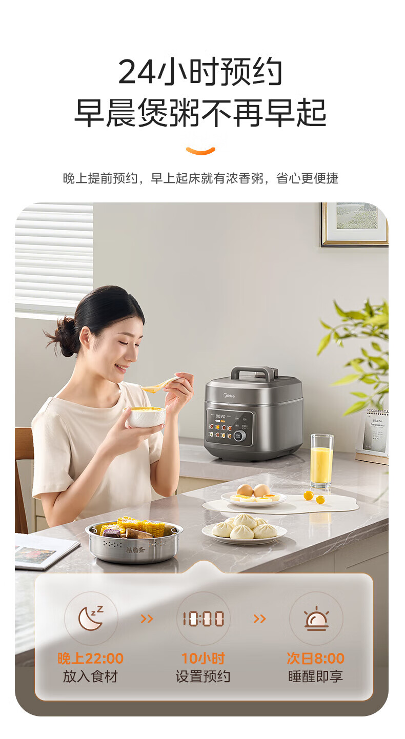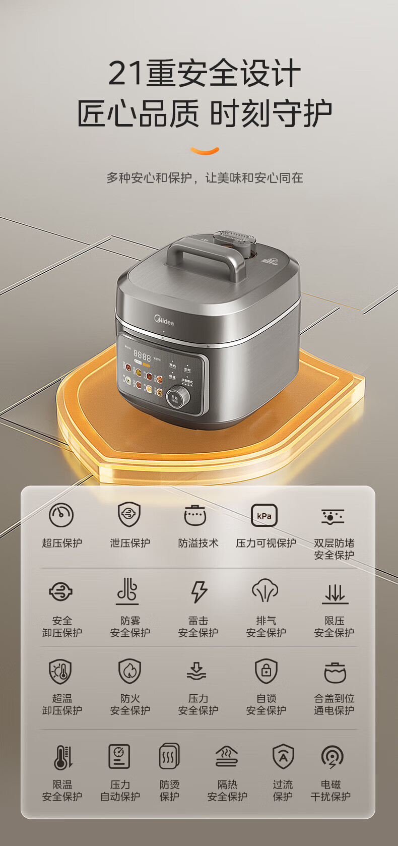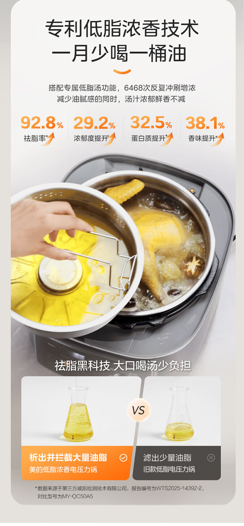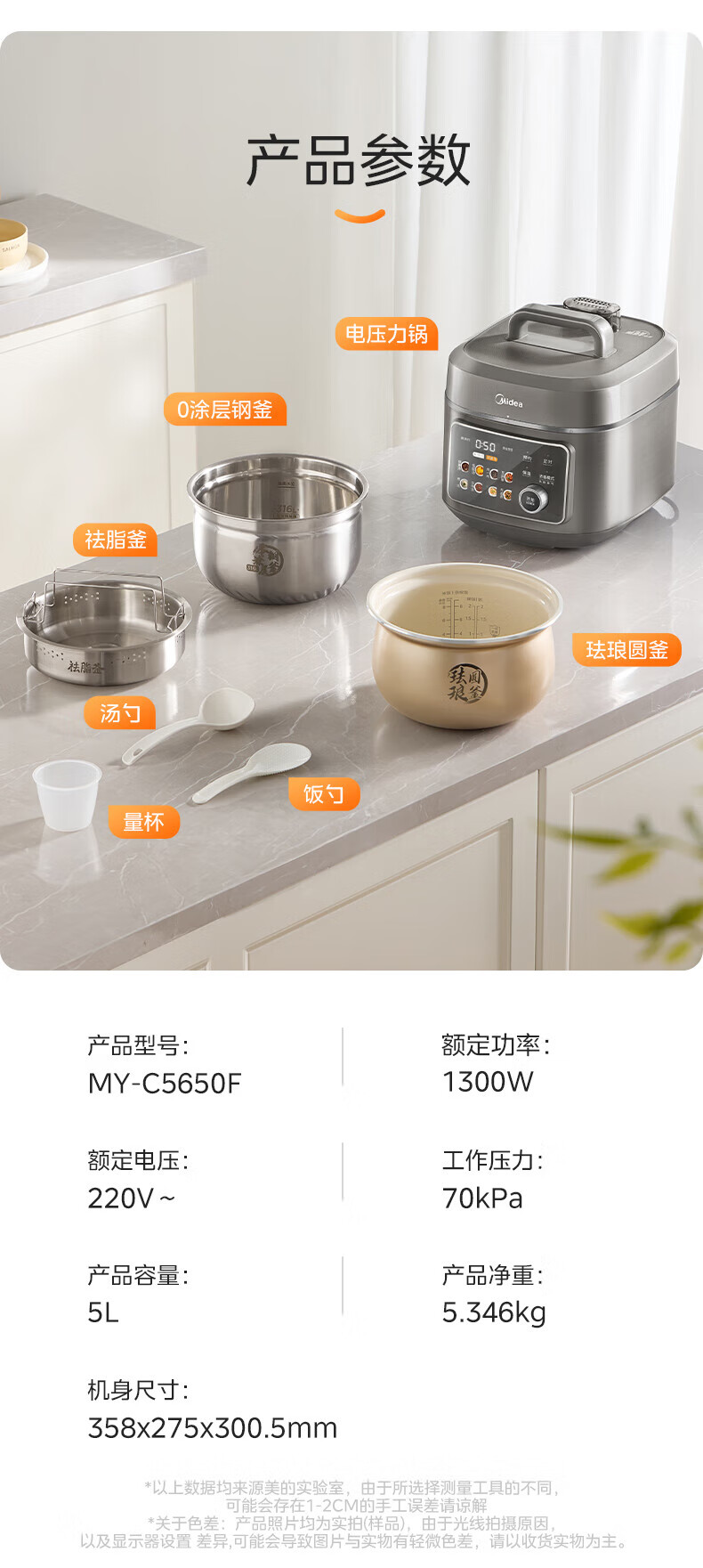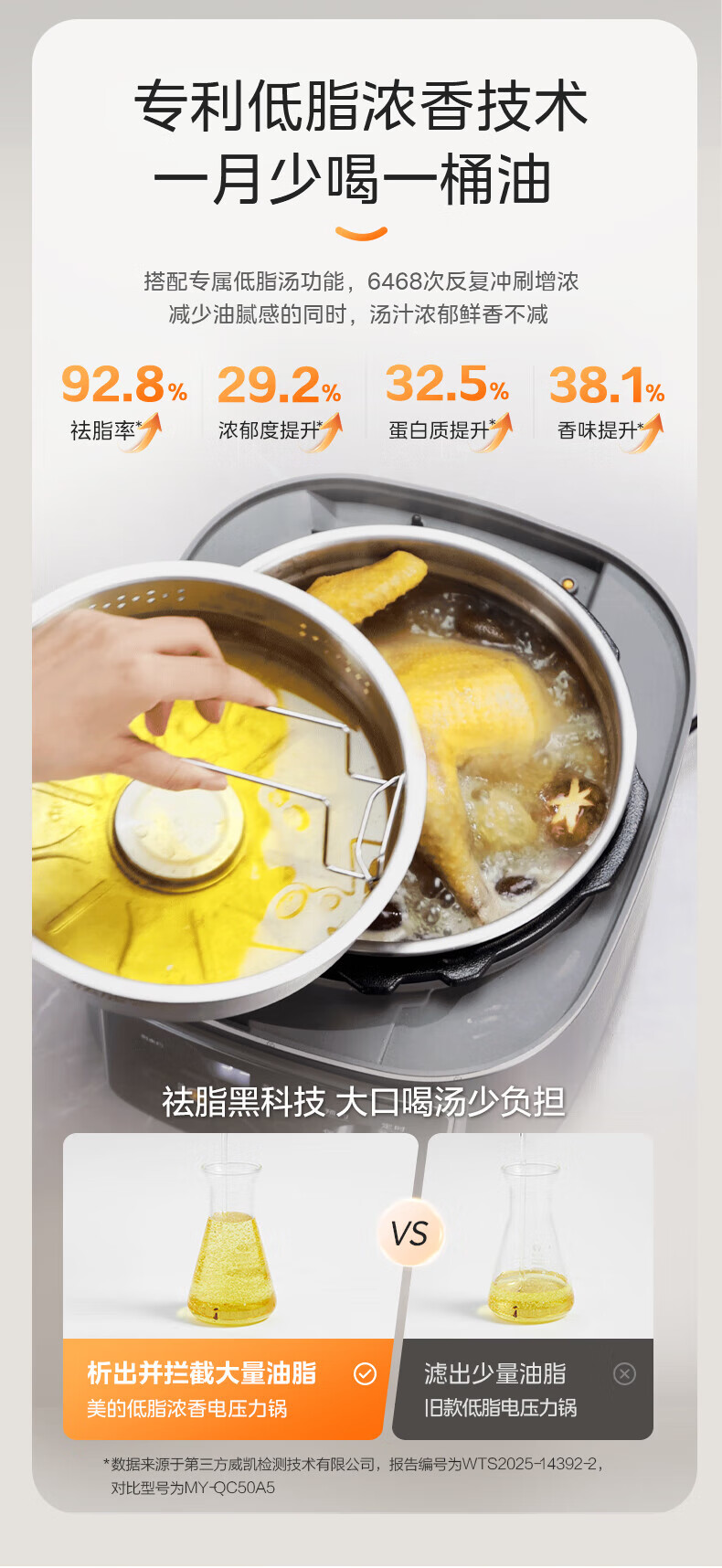 美的(Midea)低脂浓香60S快排电压力锅5L家用全自动多功能电饭煲高压锅4-6人母婴316L精钢0涂层球胆远红外炖煮 C5650F【快排系列】 5L