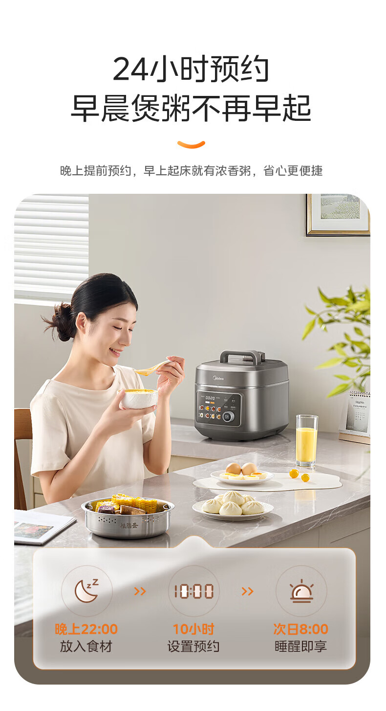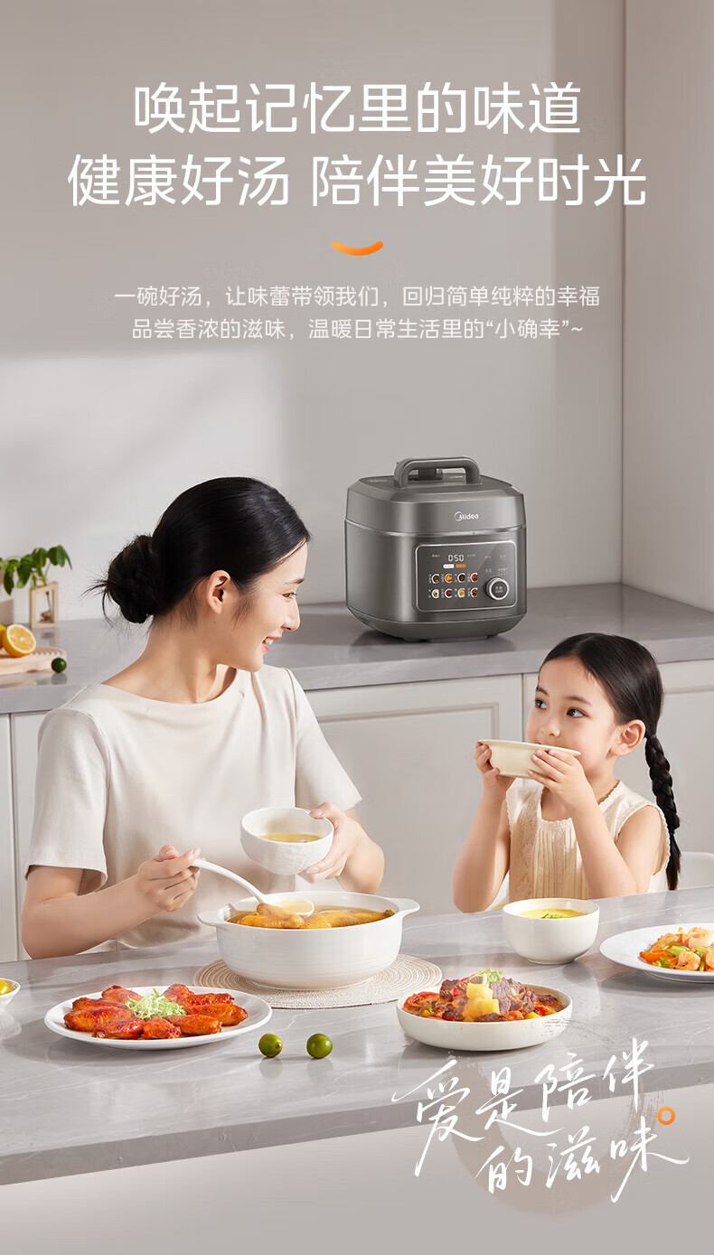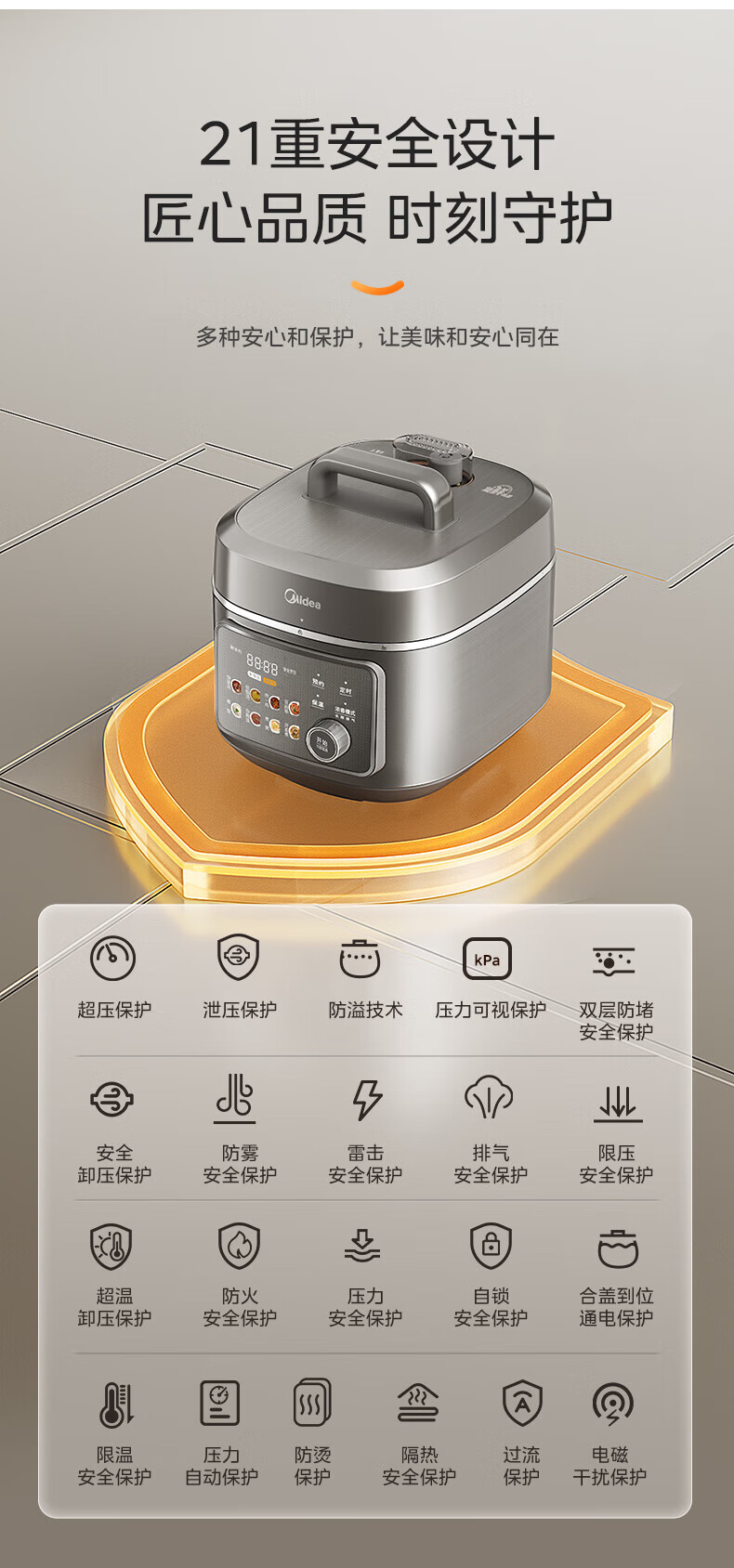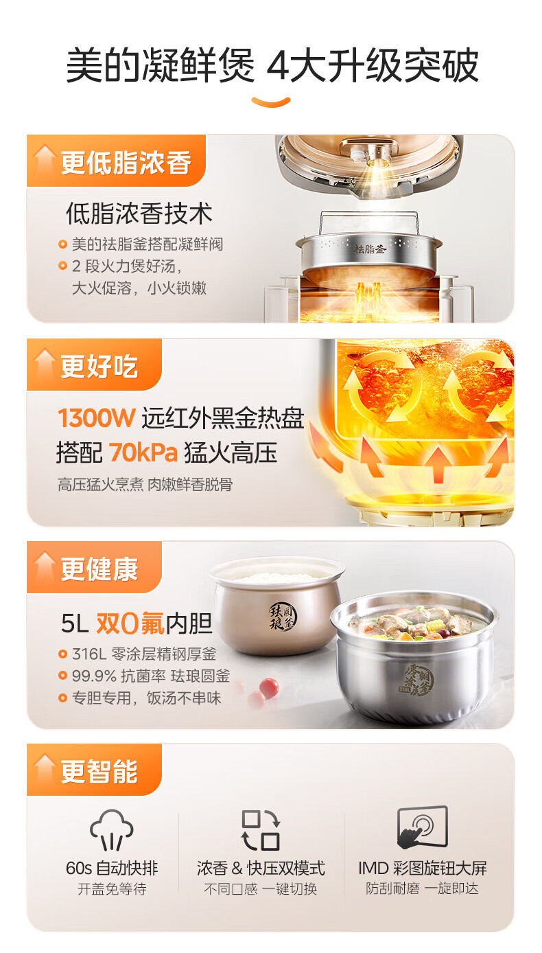 美的(Midea)低脂浓香60S快排电压力锅5L家用全自动多功能电饭煲高压锅4-6人母婴316L精钢0涂层球胆远红外炖煮 C5650F【快排系列】 5L
