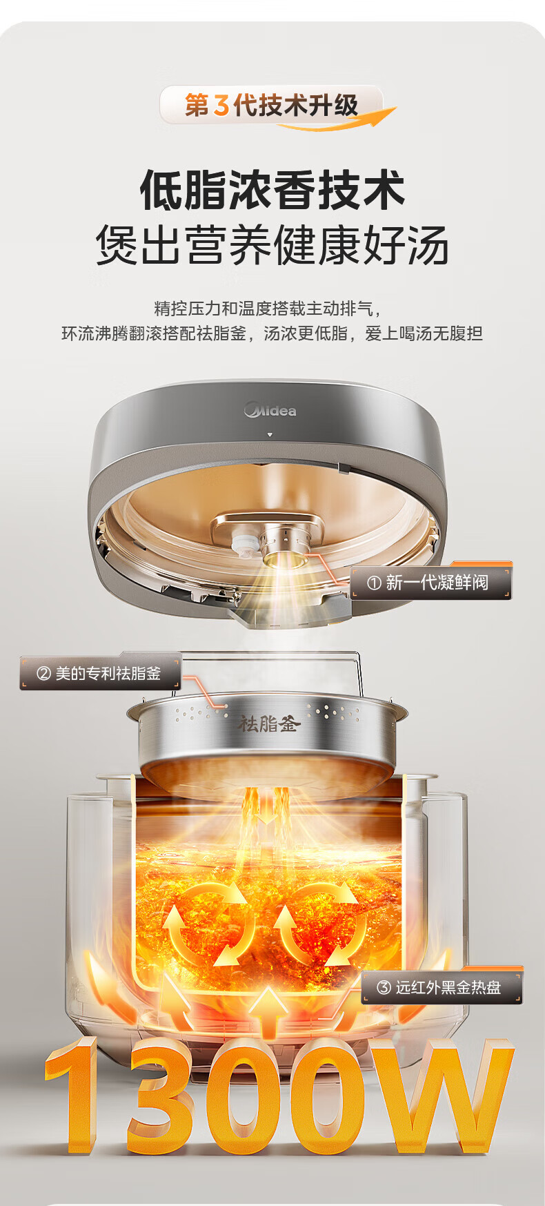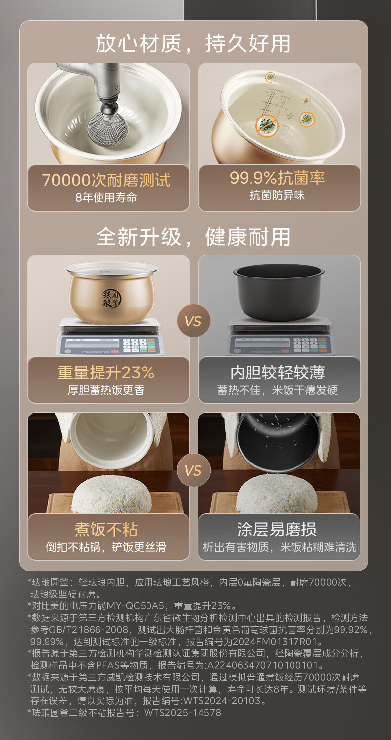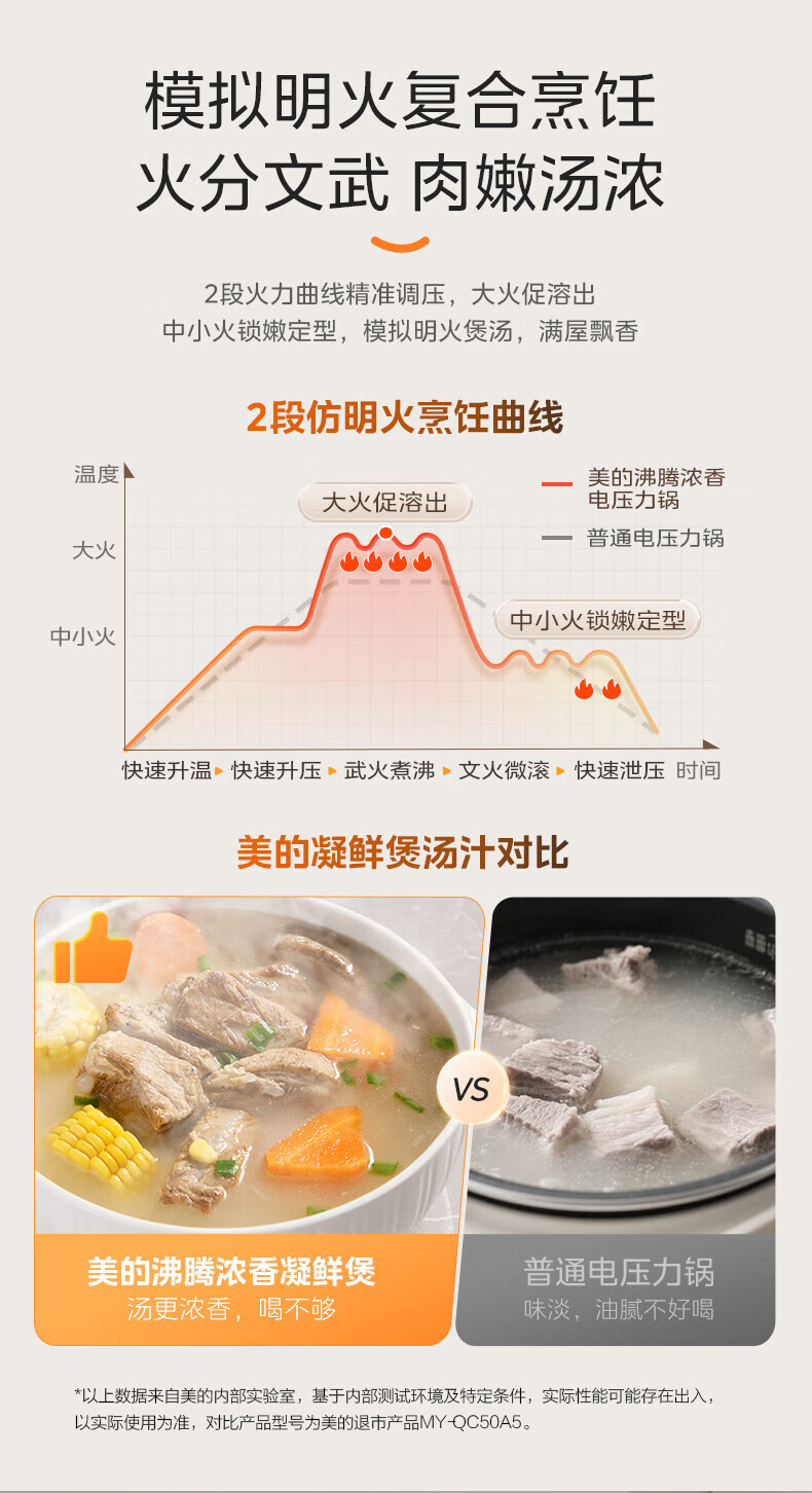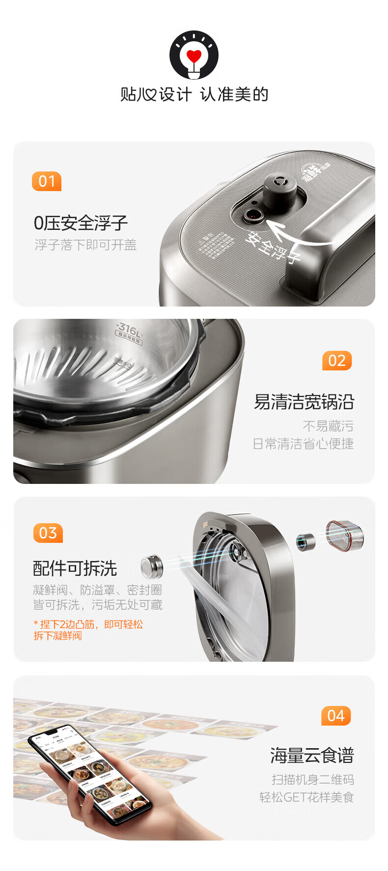 美的(Midea)低脂浓香60S快排电压力锅5L家用全自动多功能电饭煲高压锅4-6人母婴316L精钢0涂层球胆远红外炖煮 C5650F【快排系列】 5L