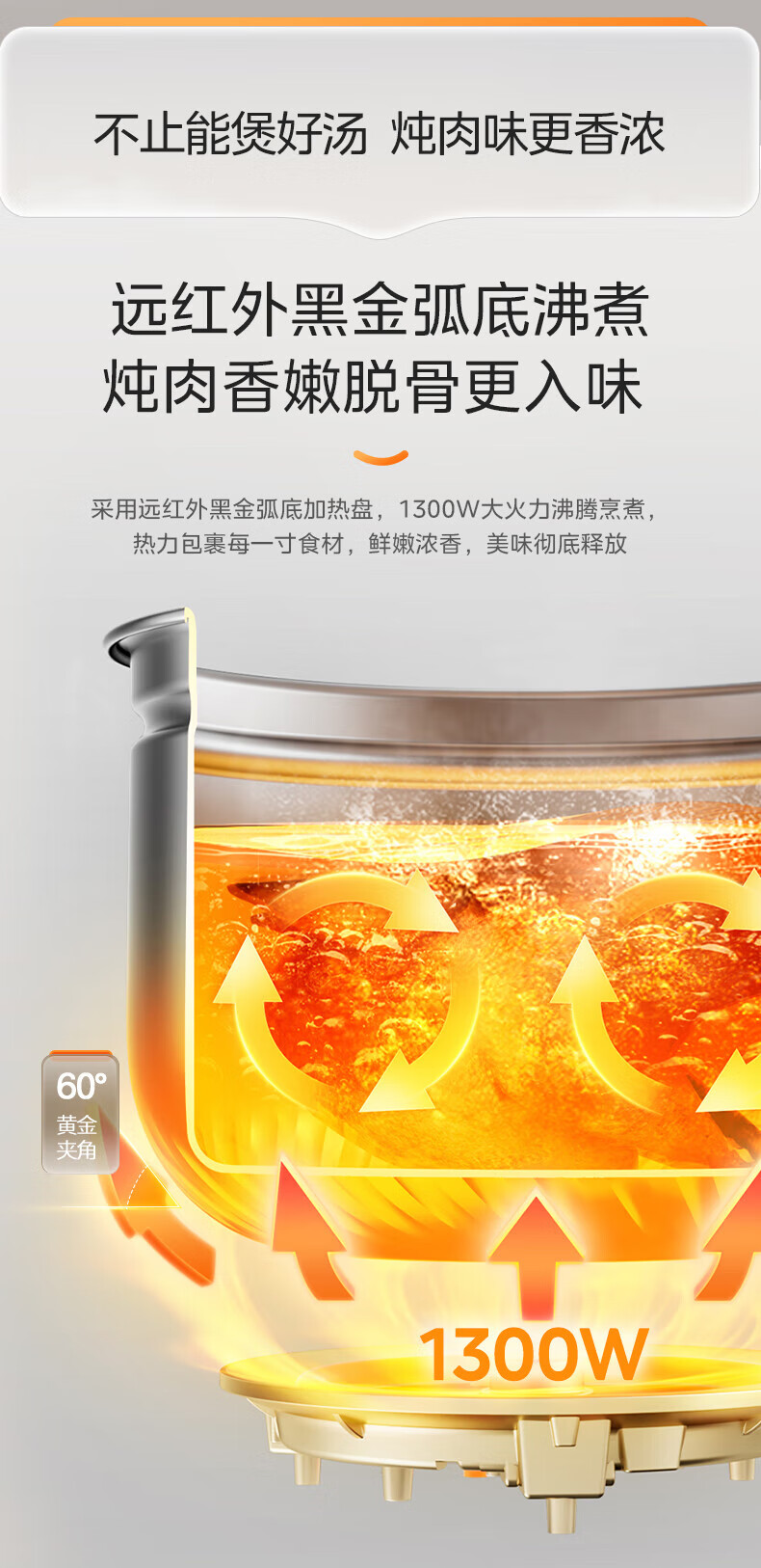 小熊(Bear)全玻璃壶体养生壶恒温壶 办公室多功能煮茶壶花茶壶 0金属养生杯 24h预约24h保温 1L YSH-P10Q7