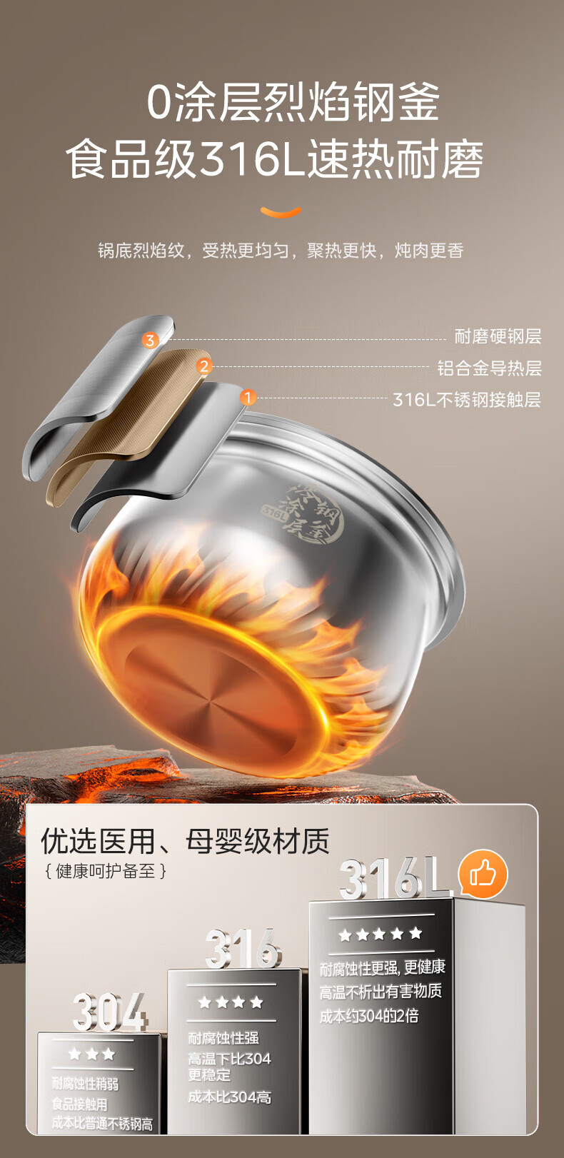 苏泊尔(SUPOR)电饭煲3-4人大容量4升蓝钻小快球釜柴火饭家用不粘锅蒸米饭煮粥锅多功能微压智能电饭锅SF40FC661