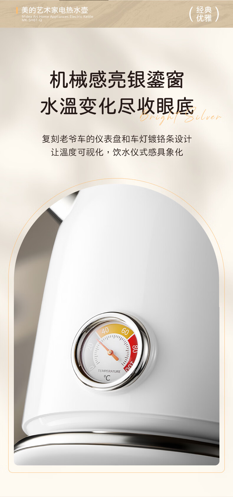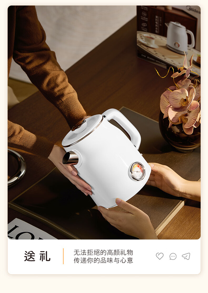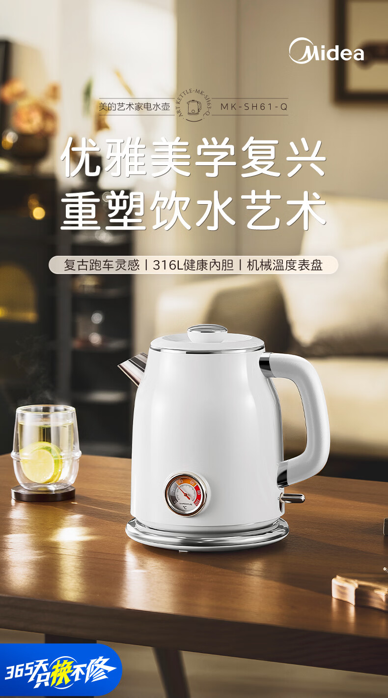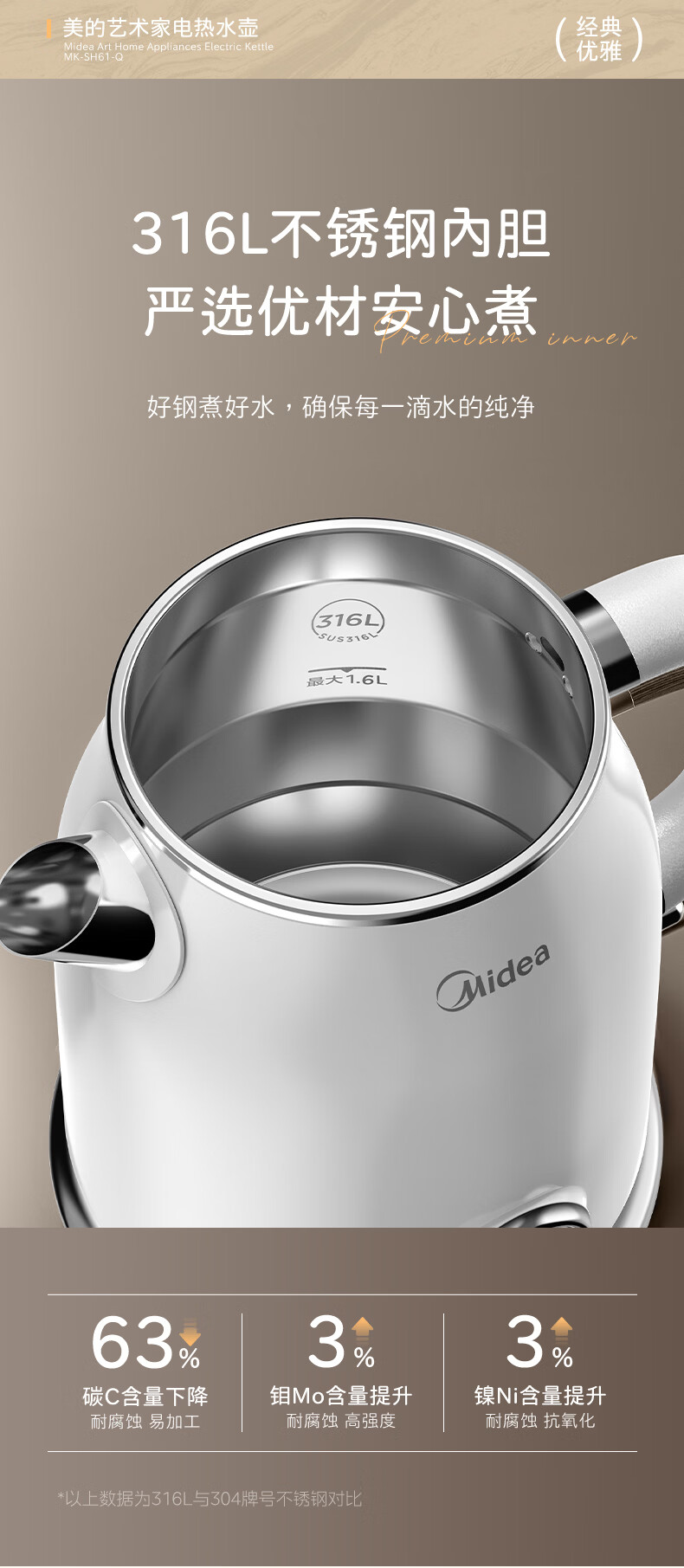 美的(Midea)电热水壶烧水壶家用自动断电1.7L大容量316L母婴级不锈钢电水壶进口精准控温器MK-SH61-Q年货