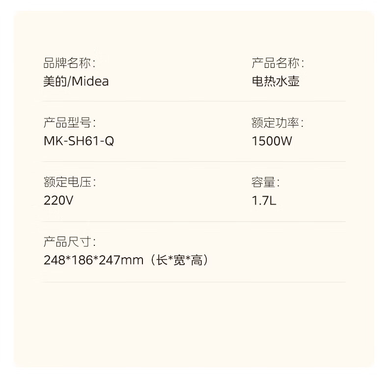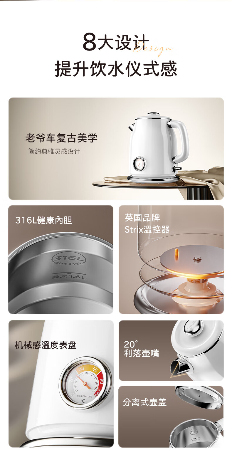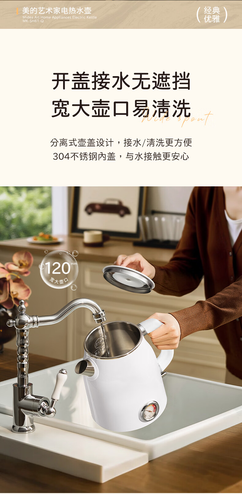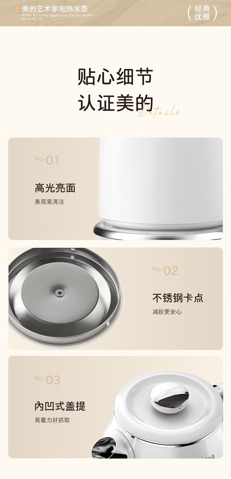 美的(Midea)电热水壶烧水壶家用自动断电1.7L大容量316L母婴级不锈钢电水壶进口精准控温器MK-SH61-Q年货