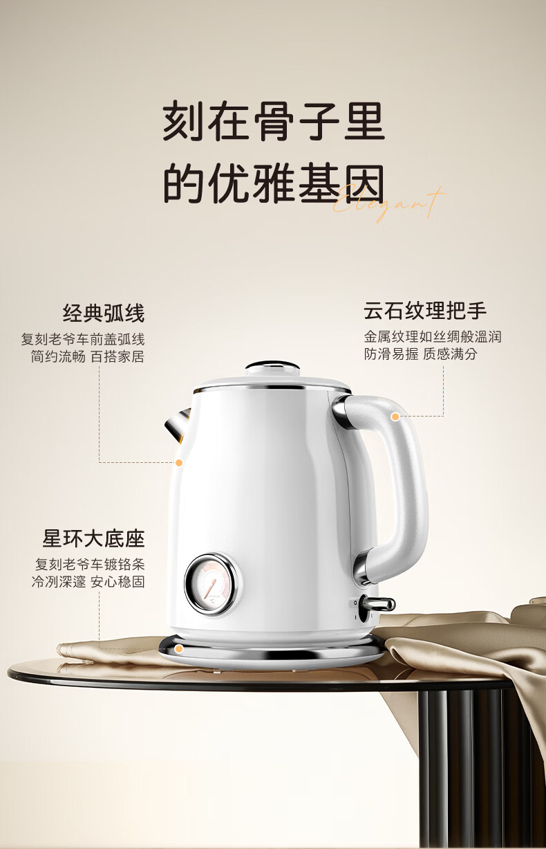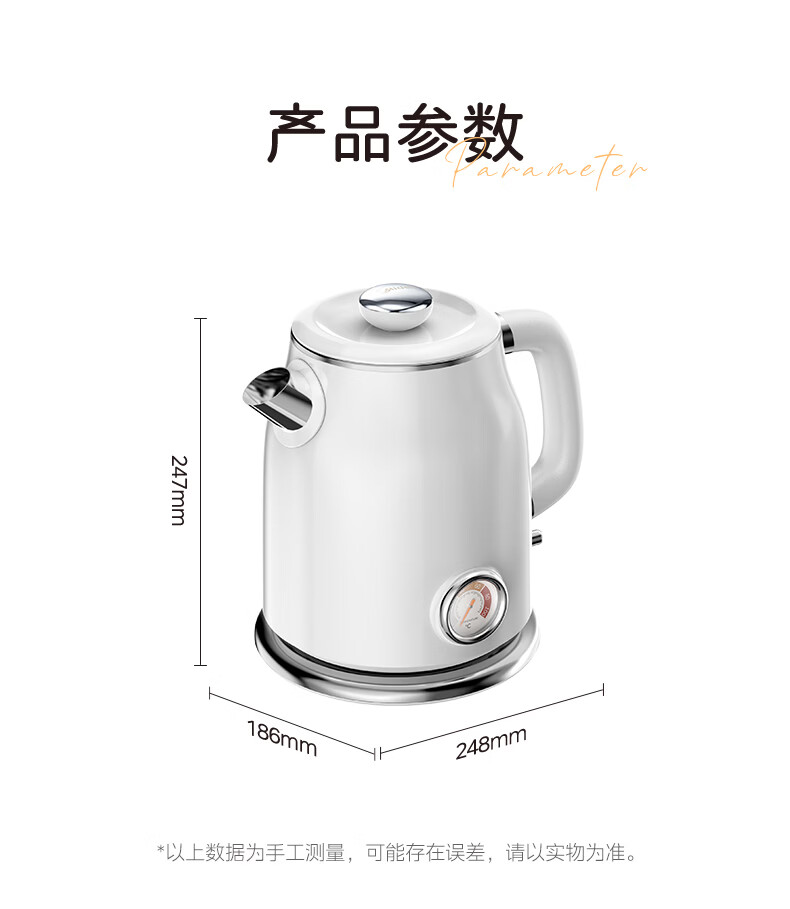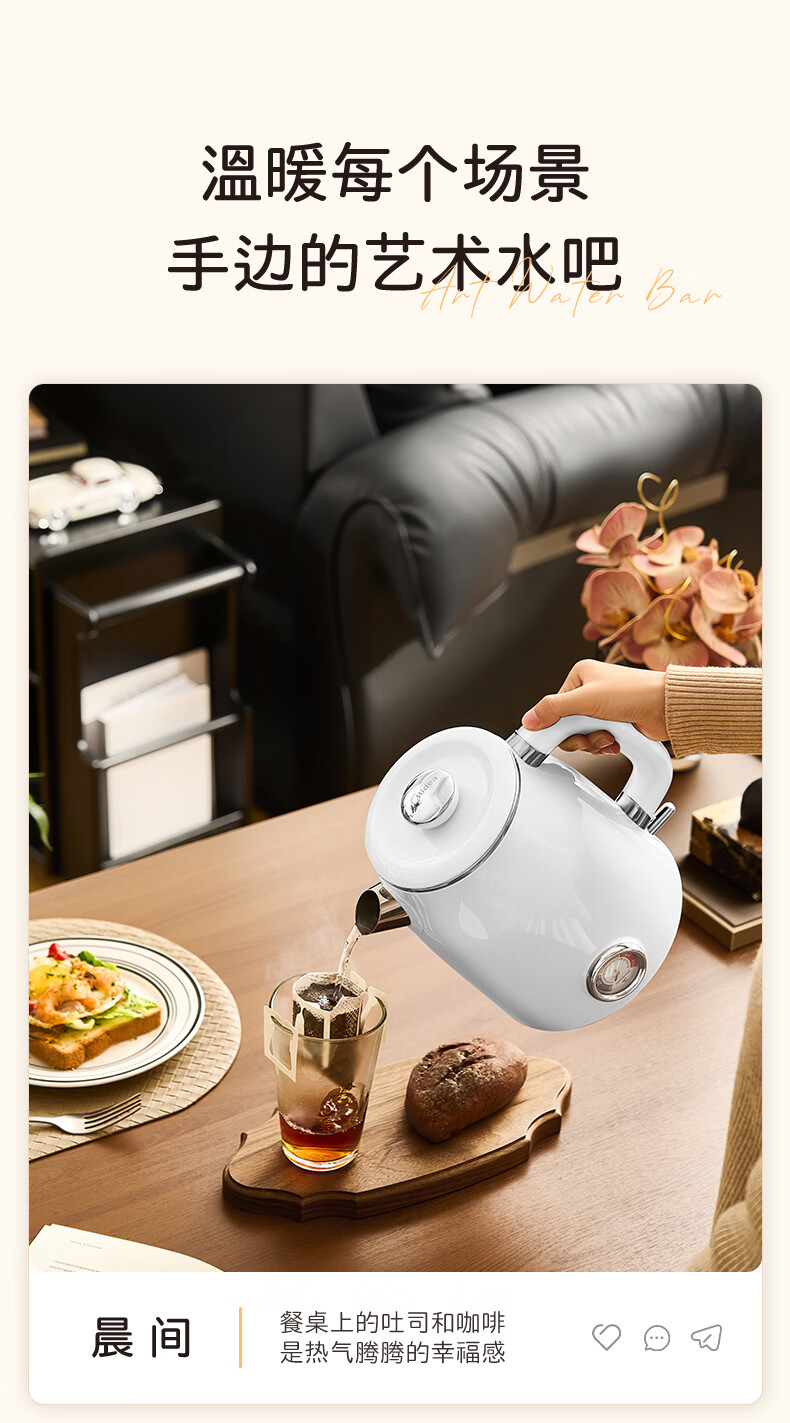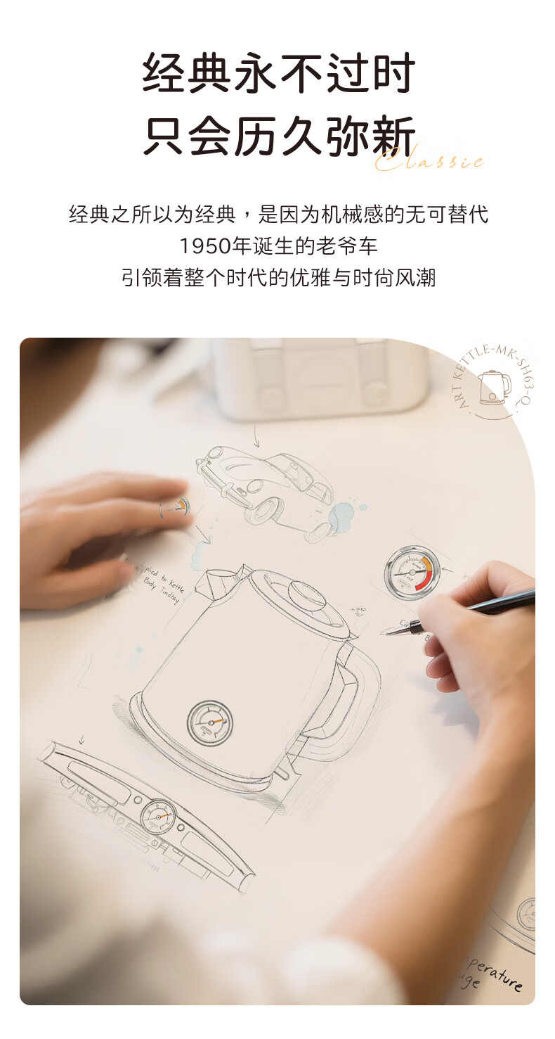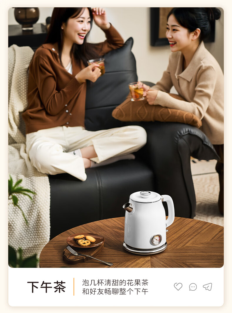 美的(Midea)电热水壶烧水壶家用自动断电1.7L大容量316L母婴级不锈钢电水壶进口精准控温器MK-SH61-Q年货