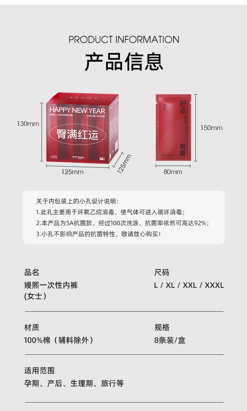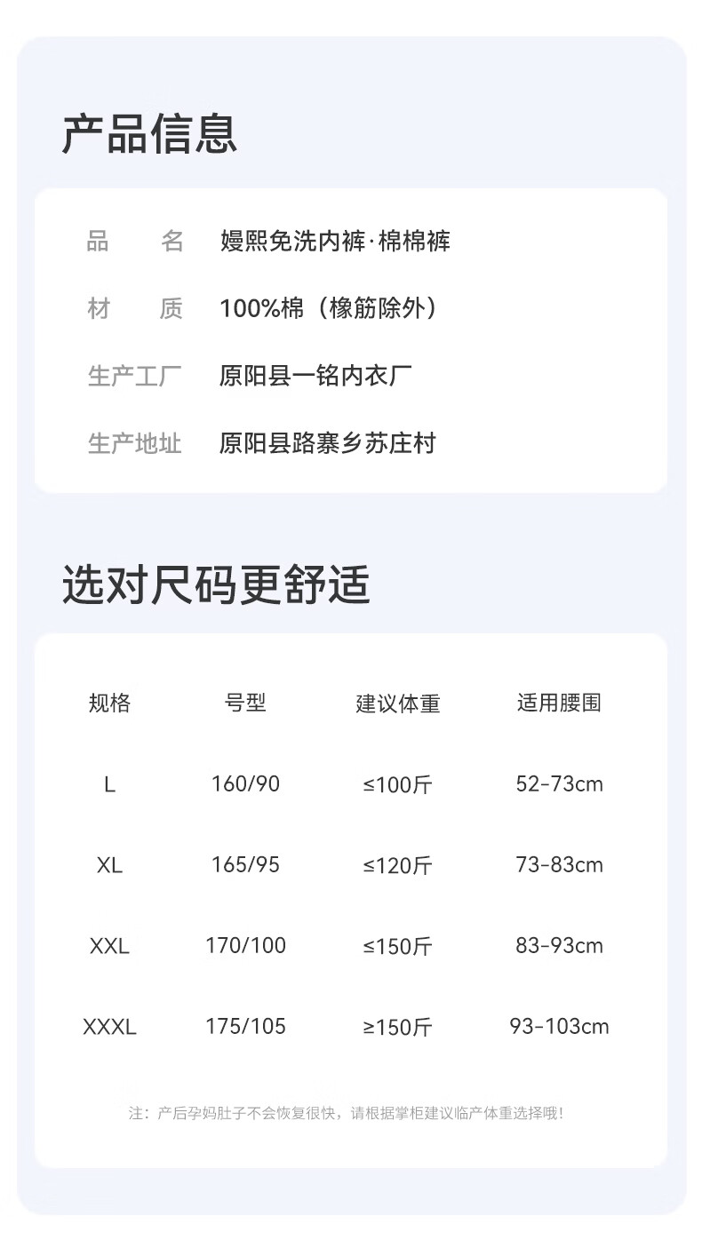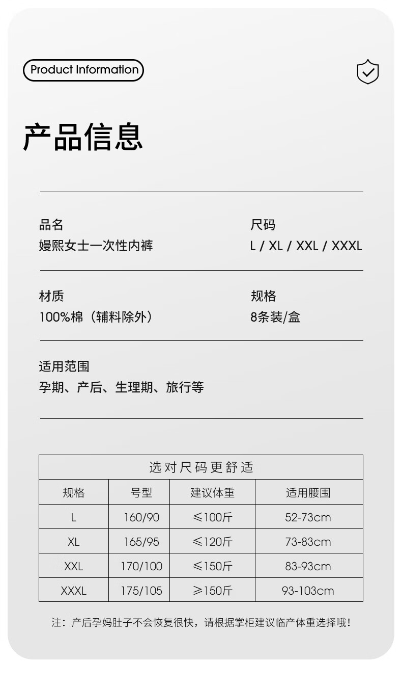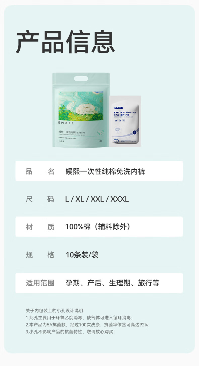 嫚熙(EMXEE)孕妇内裤产妇一次性内裤男士内裤旅游出差月子便携装免洗纯棉内裤 20条袋装女士内裤 XXXL 女(150斤以上)男(170-190斤)