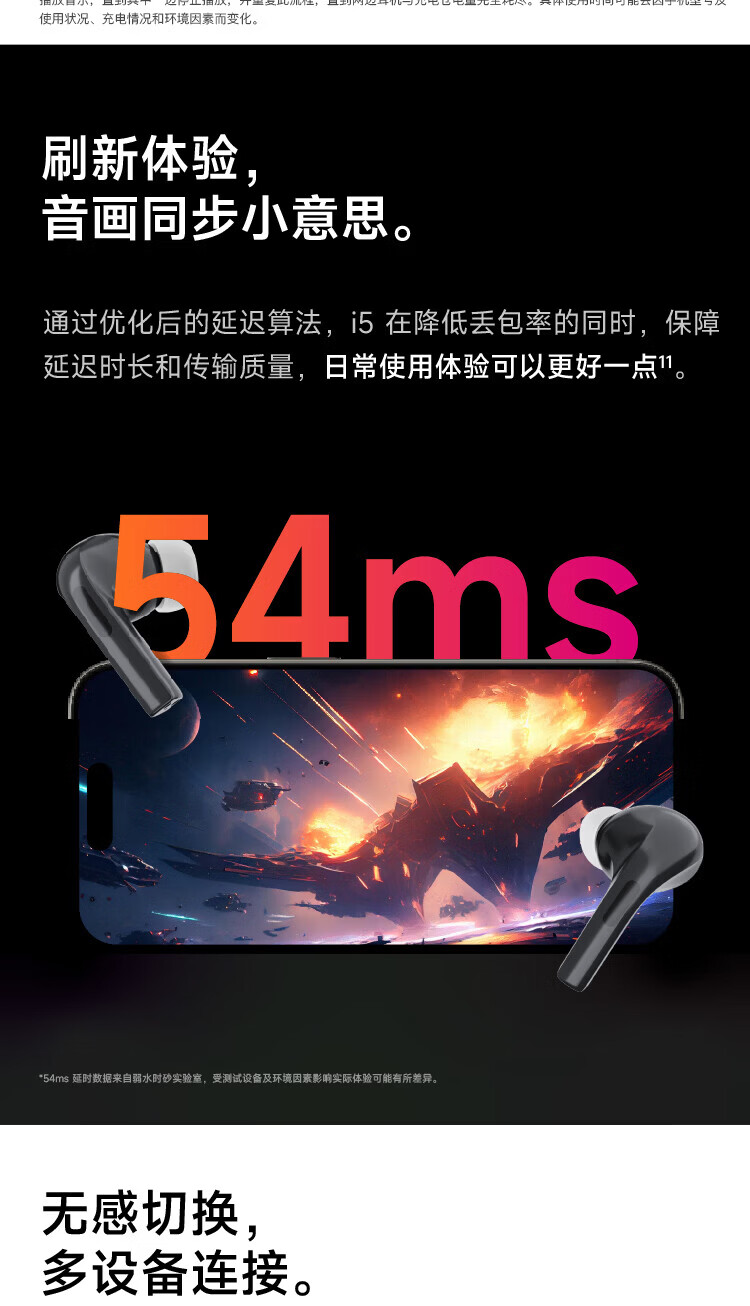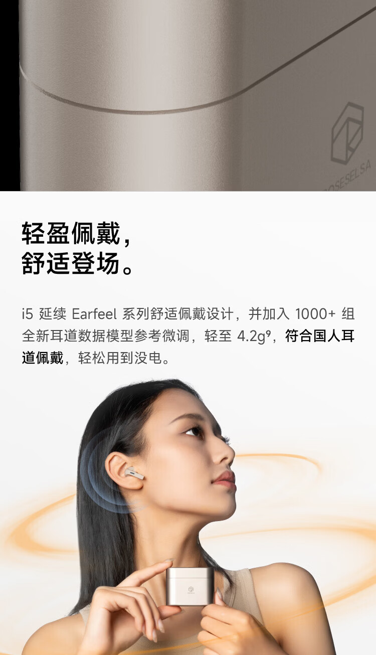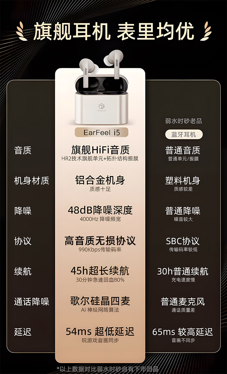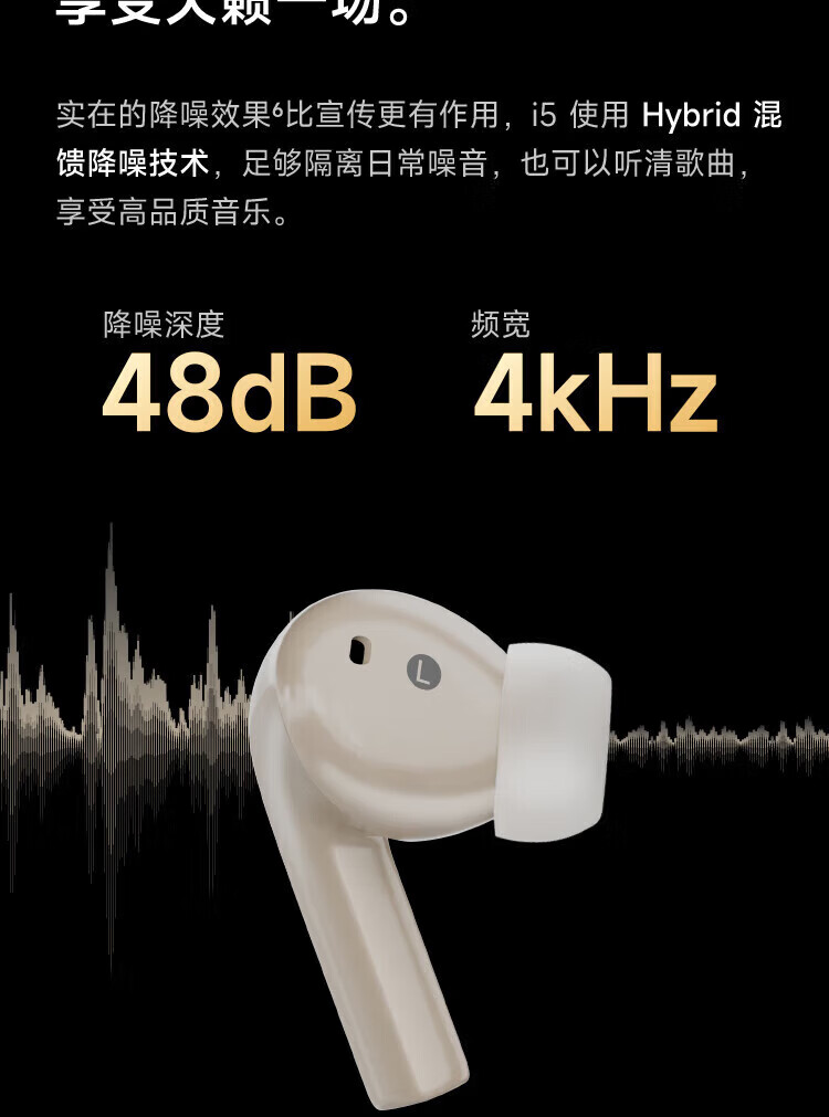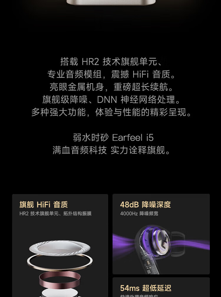 弱水时砂【周传雄推荐】earfeel i5无线蓝牙耳机入耳HiFi音质游戏运动耳机主动降噪长续航学生 武士黑|HiFi音质+强降噪+不压耳